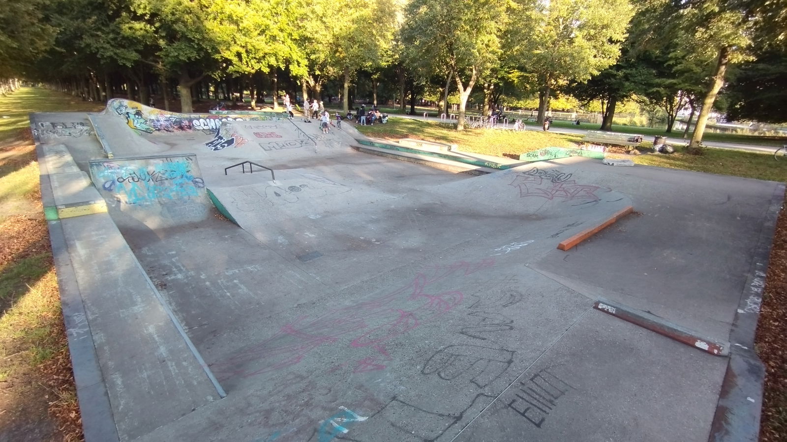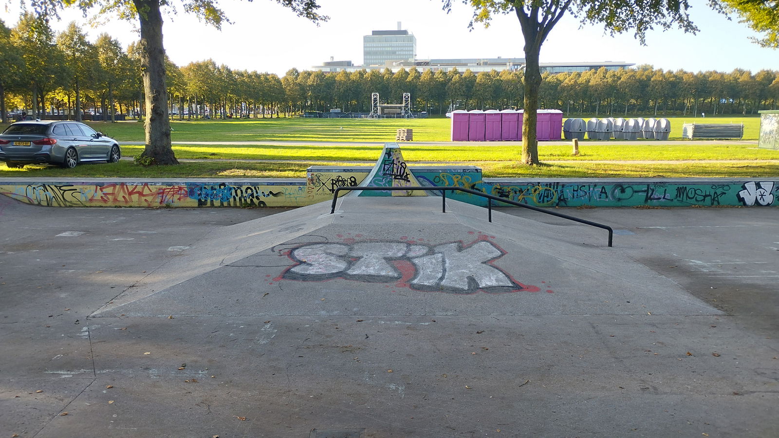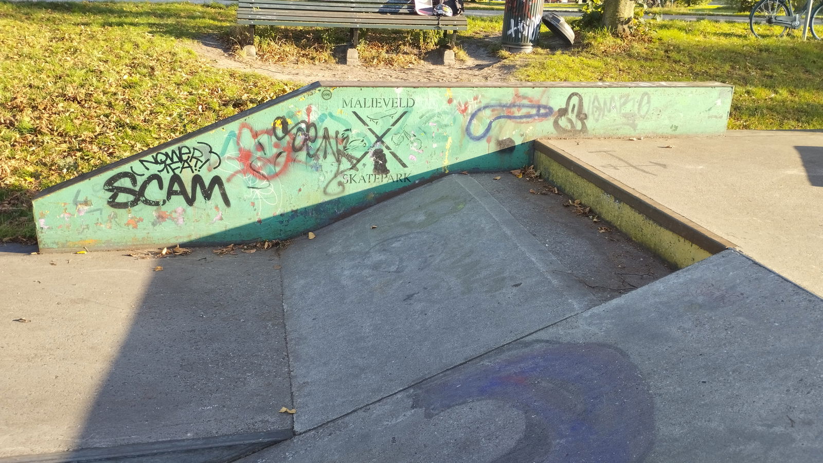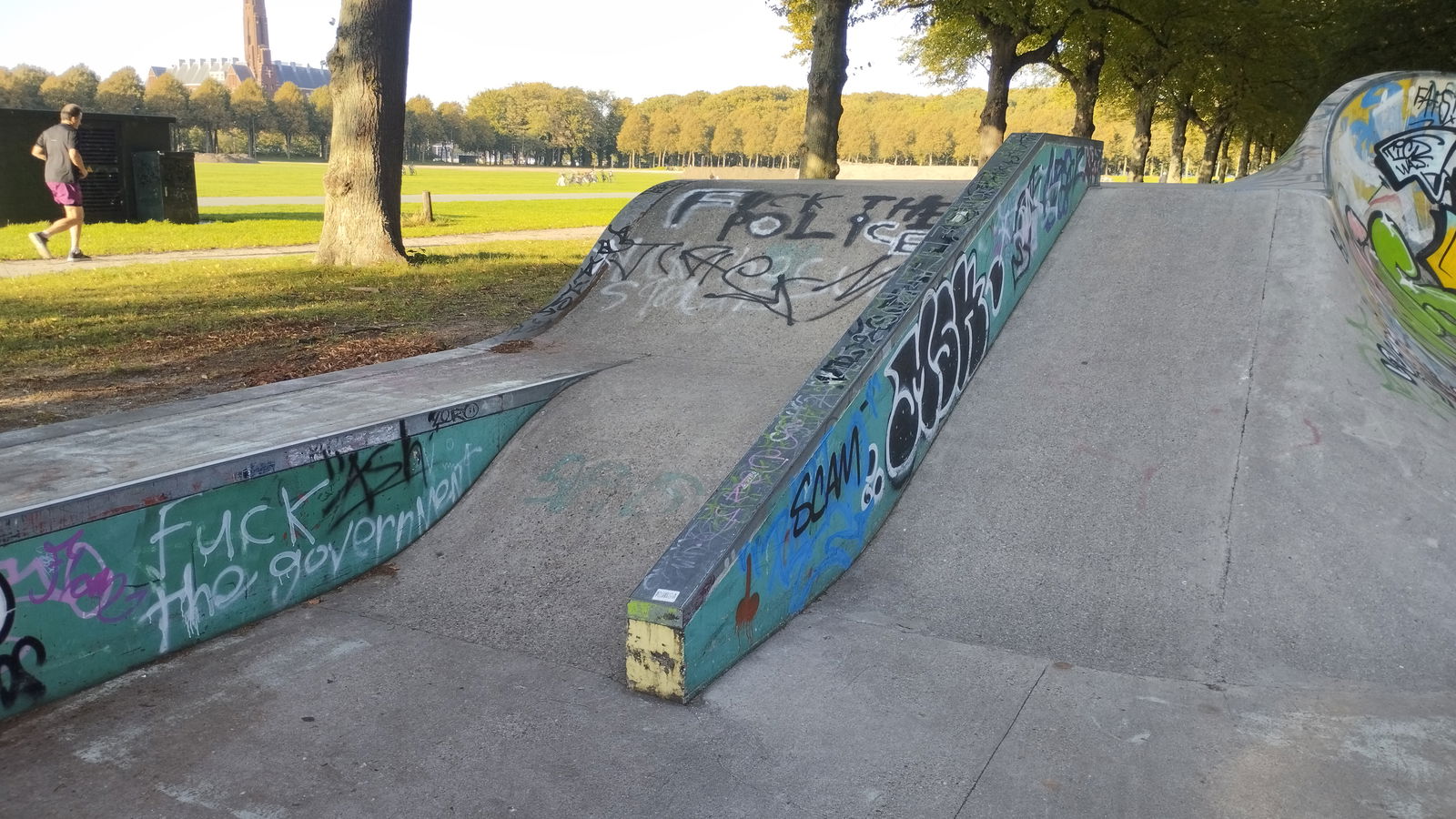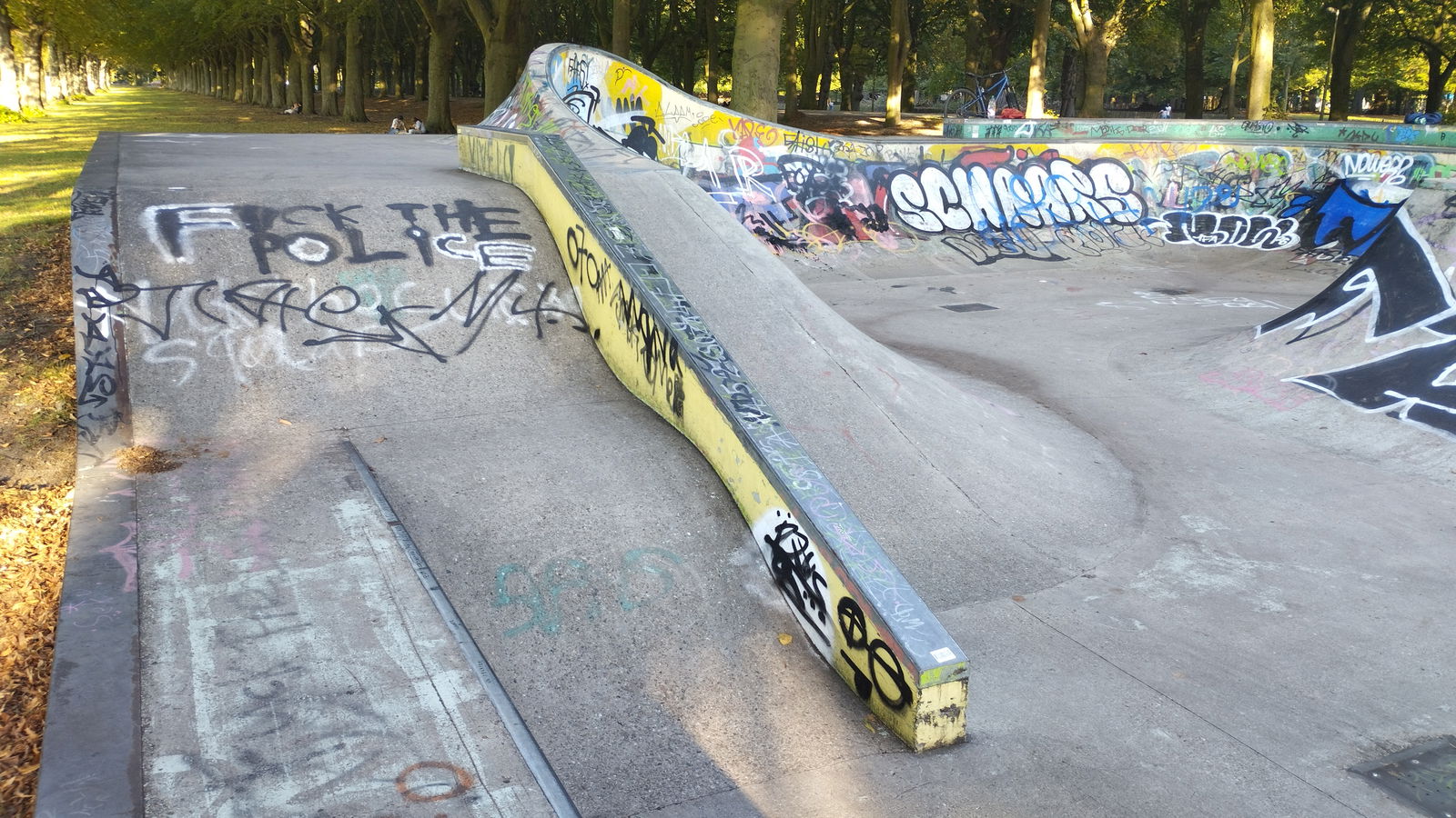 Malieveld skatepark is a concrete skatepark featuring a bowl and street area.