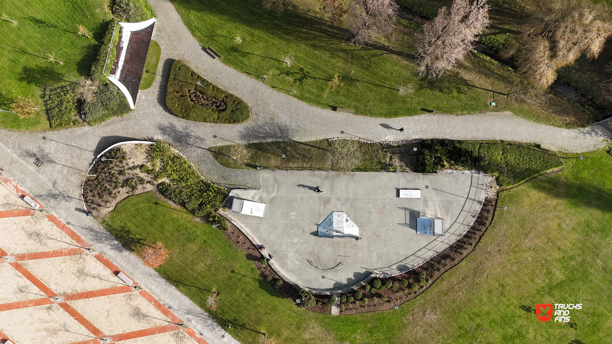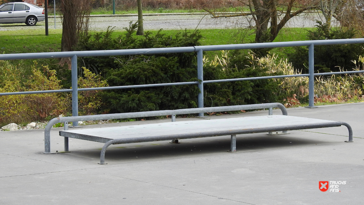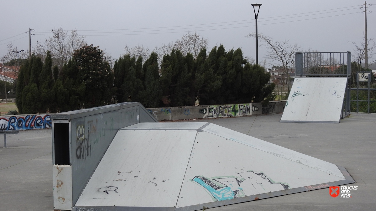 Terrible skatepark, the prefab ramps are old and have holes, the pyramid and the bank are too steep for most and the flat rail being connected to the manual pad is just stupid because there was room to place it somewhere else