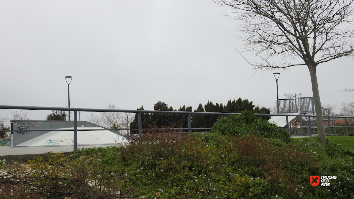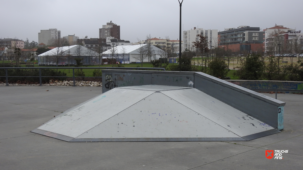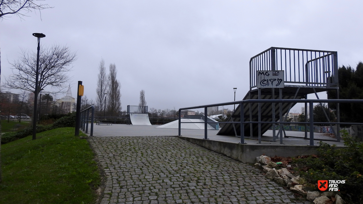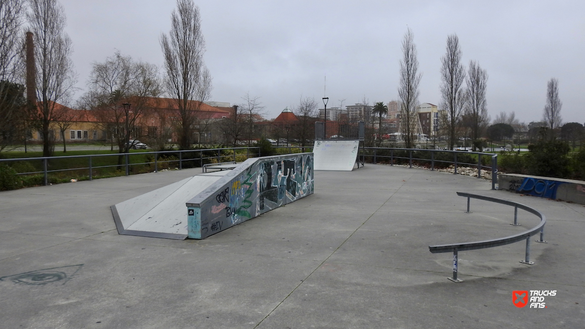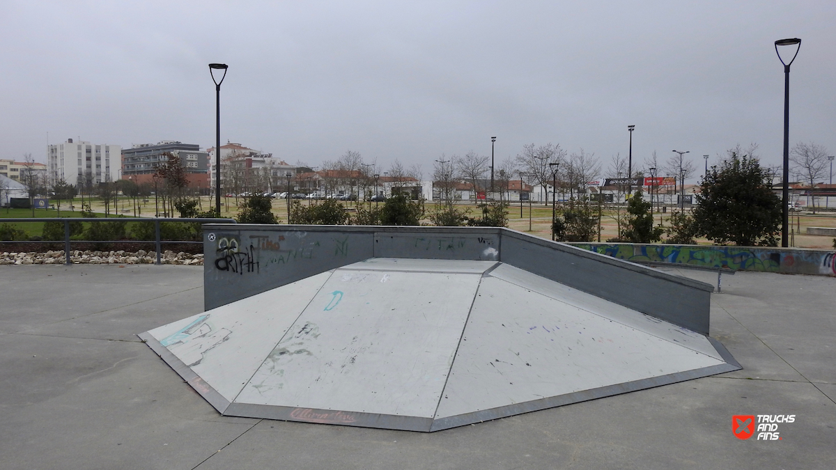 Marinha Grande is a Portugese municipality in the district of Leiria. The skatepark in Marinha Grande features a crappy metal park and is located in Parque da Cerca. The skatepark is a small park with several basic skateboarding obstacles in a back and forth setup.