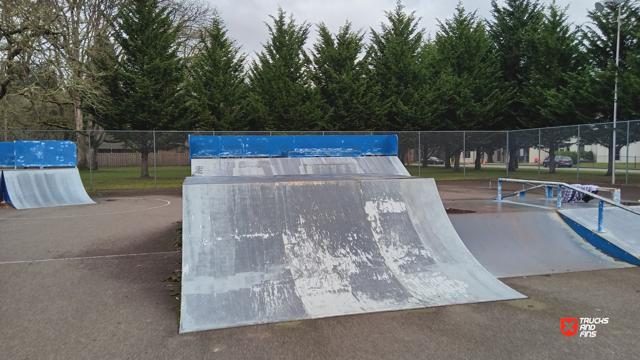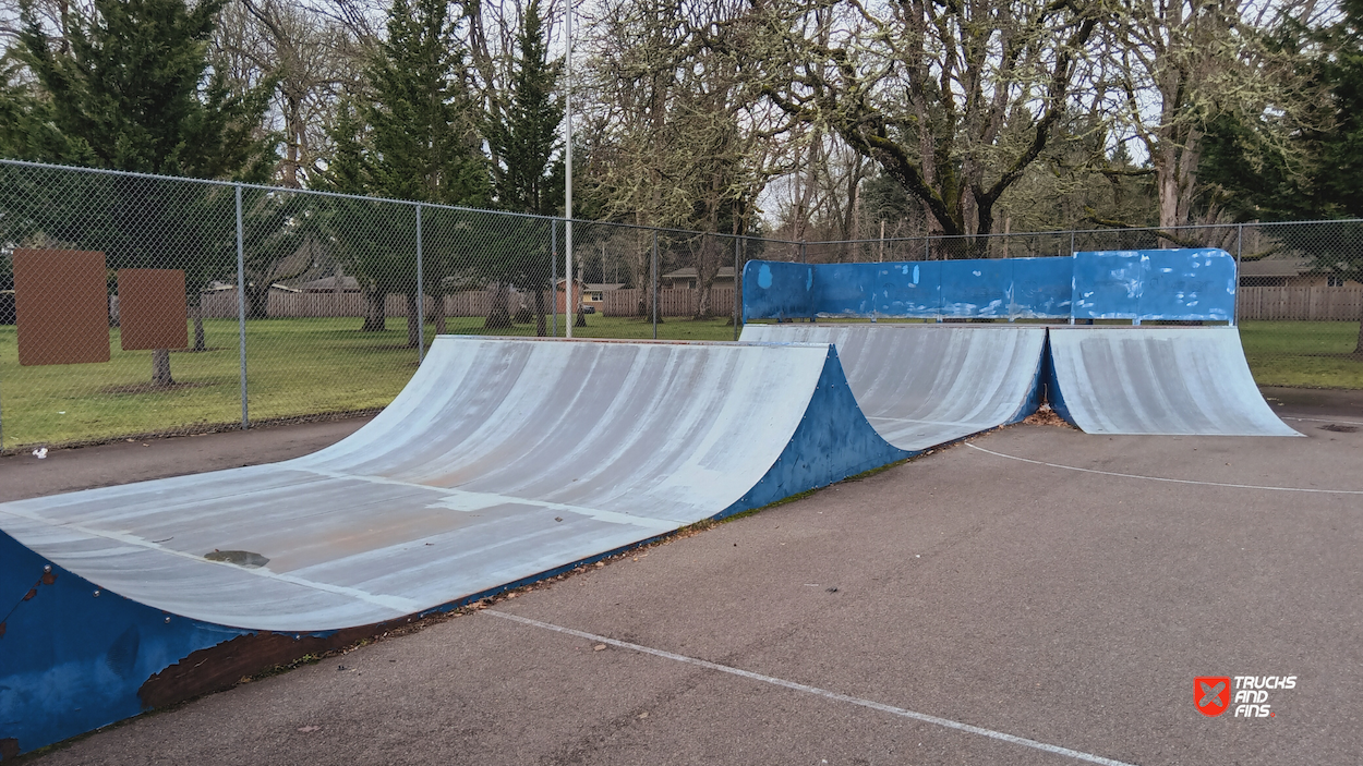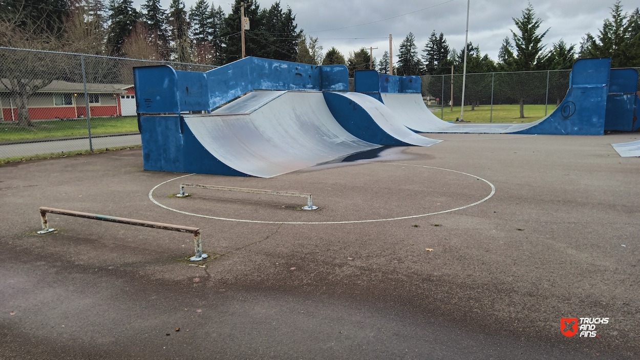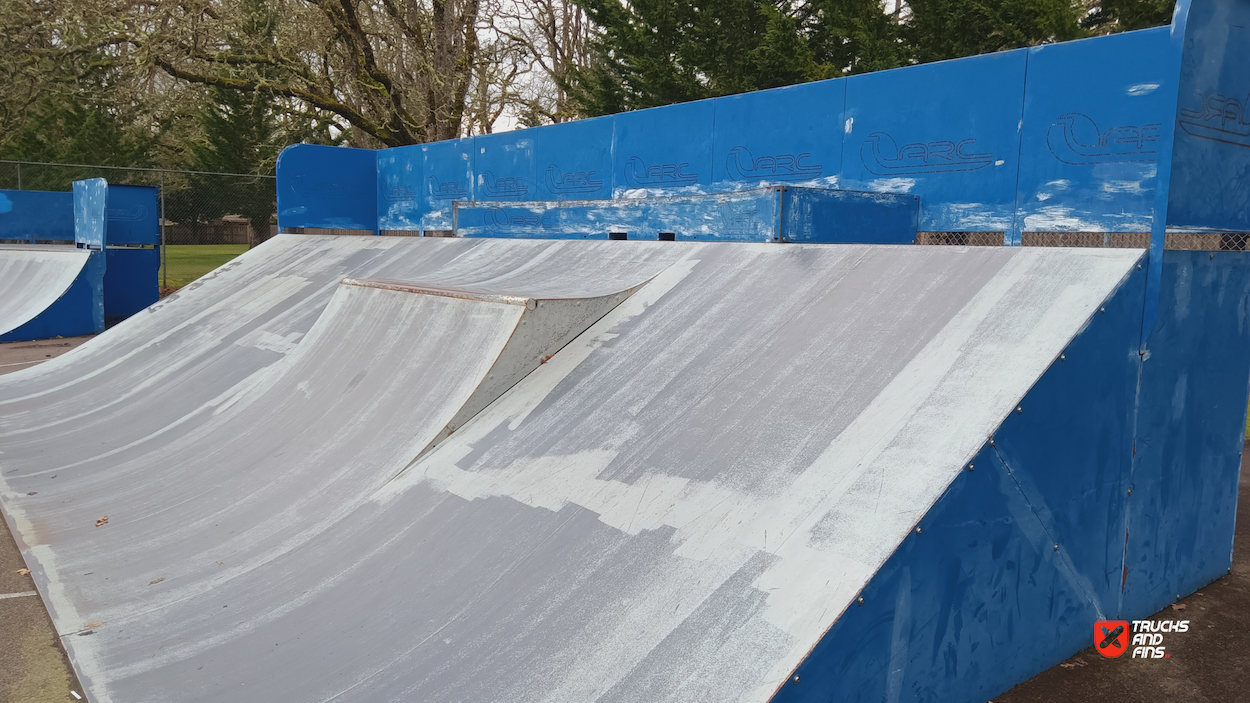McChord skatepark is made up of a back and forth run with quarter pipes and banks on the sides of a funbox and jumpbox. The skatepark also features two miniramps. The skatepark is for military personal only.