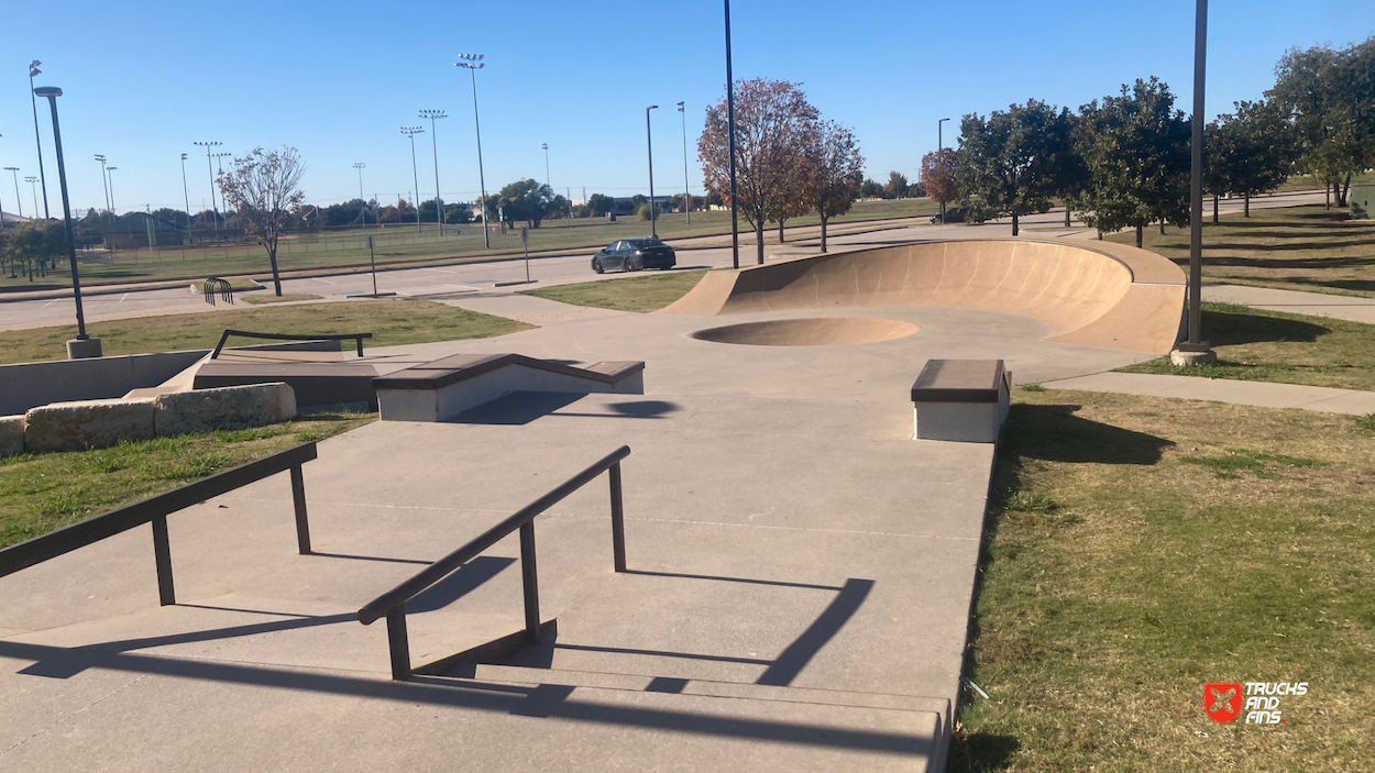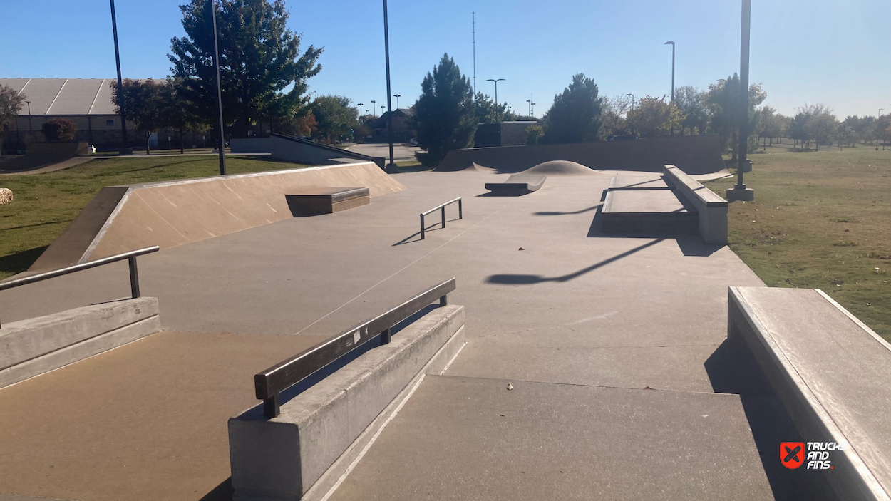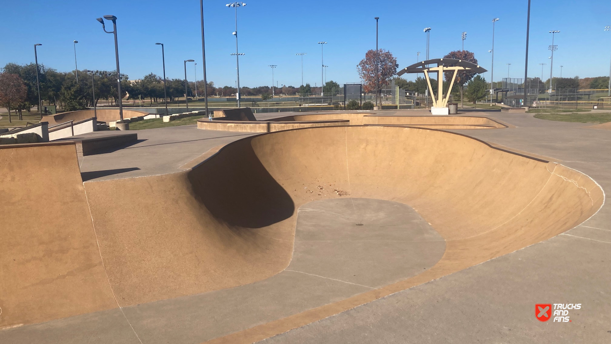 The park offers a diverse range of features catering to all ages and skill levels, including: Three Bowls: Providing various depths and configurations for different styles of bowl riding. Street Elements: Incorporating ledges, rails, stairs, and other obstacles that mimic urban street skating environments. Unique Features: A skateable art structure resembling a tree trunk at the entrance, reflecting McKinney's motto "Unique by Nature," and a replica swimming pool complete with pool coping and tile.