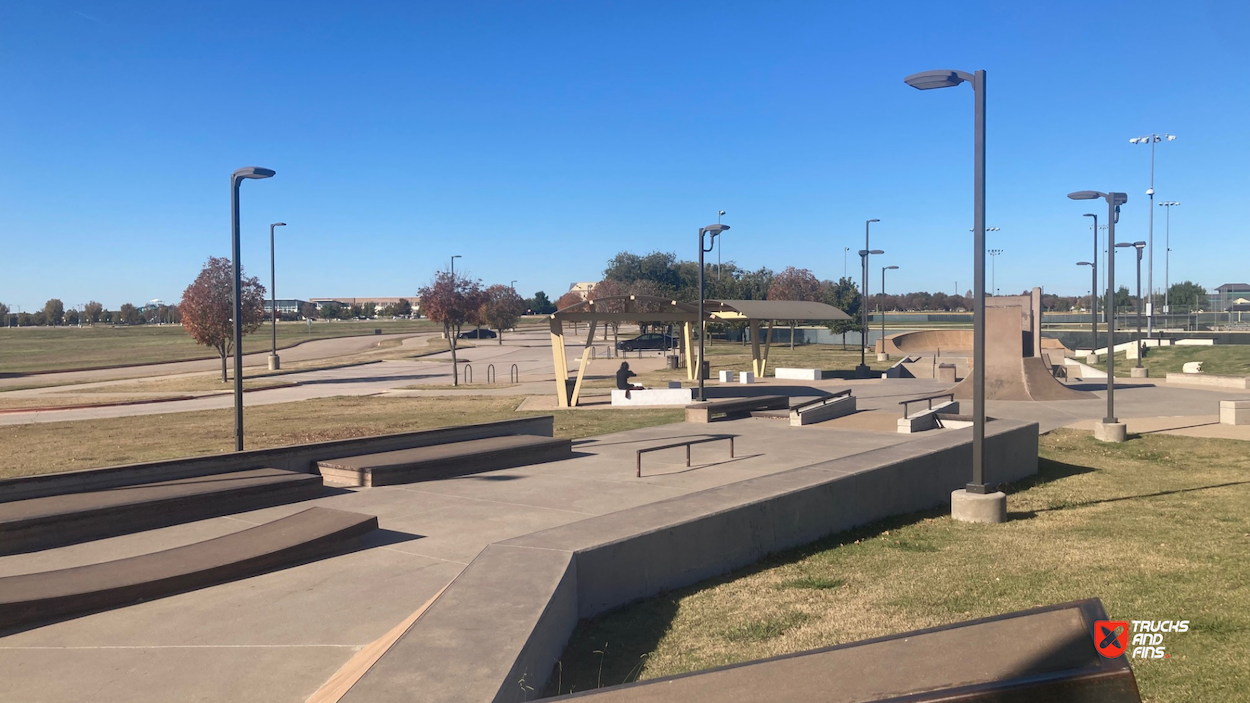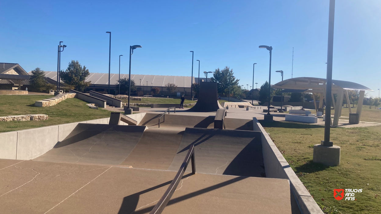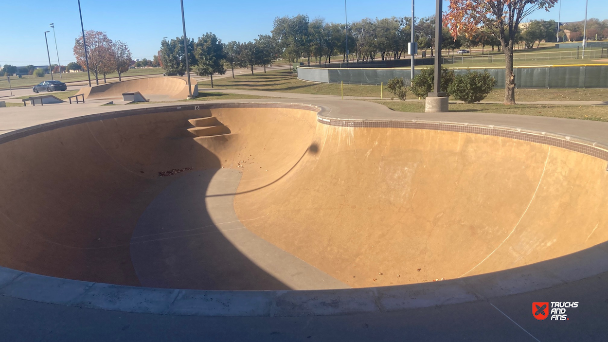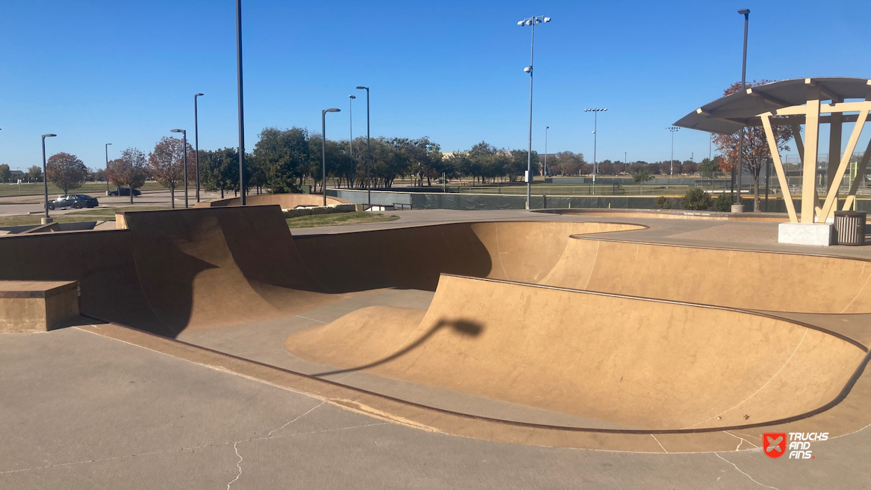 The park offers a diverse range of features catering to all ages and skill levels, including: Three Bowls: Providing various depths and configurations for different styles of bowl riding. Street Elements: Incorporating ledges, rails, stairs, and other obstacles that mimic urban street skating environments. Unique Features: A skateable art structure resembling a tree trunk at the entrance, reflecting McKinney's motto "Unique by Nature," and a replica swimming pool complete with pool coping and tile.