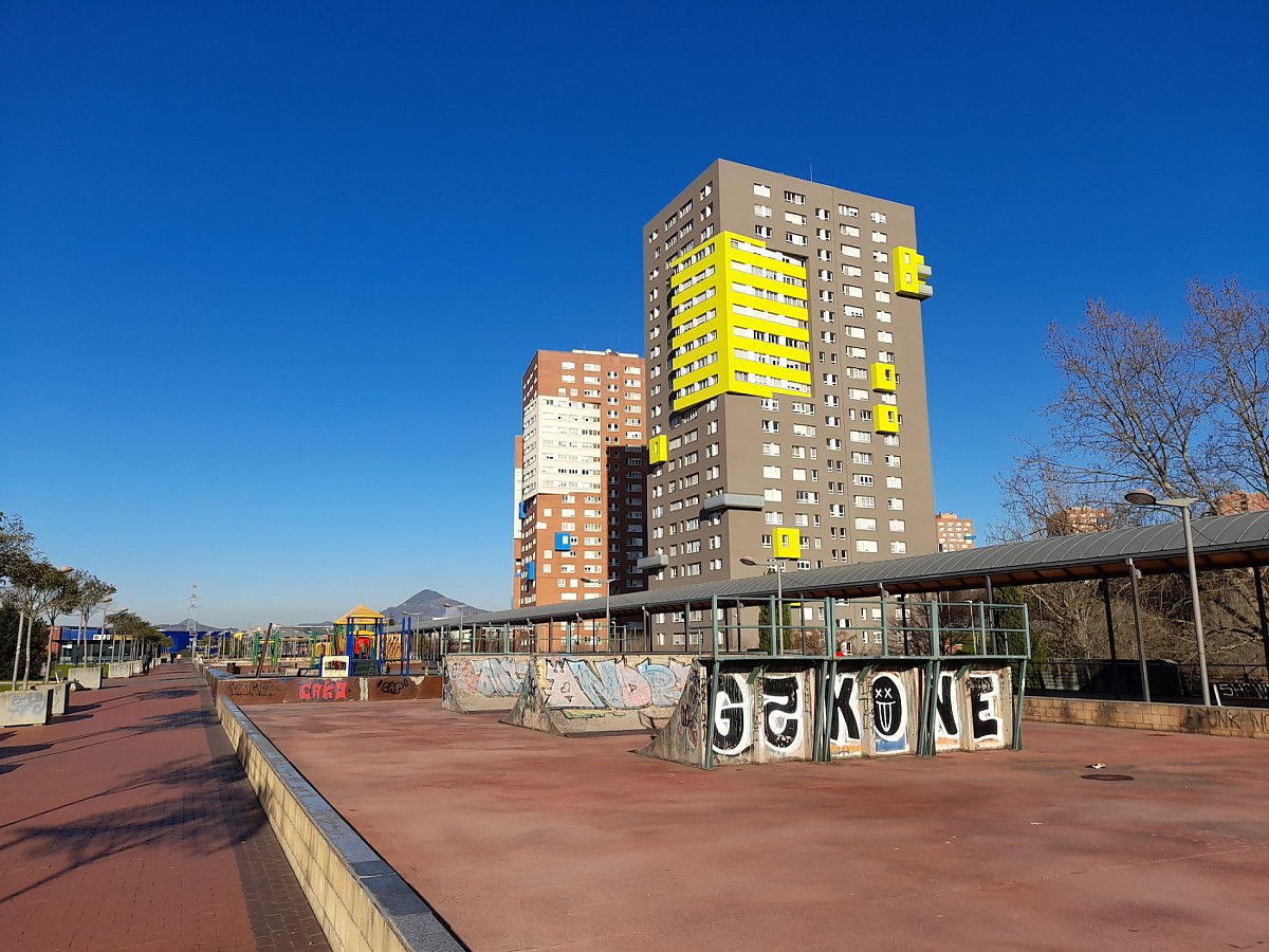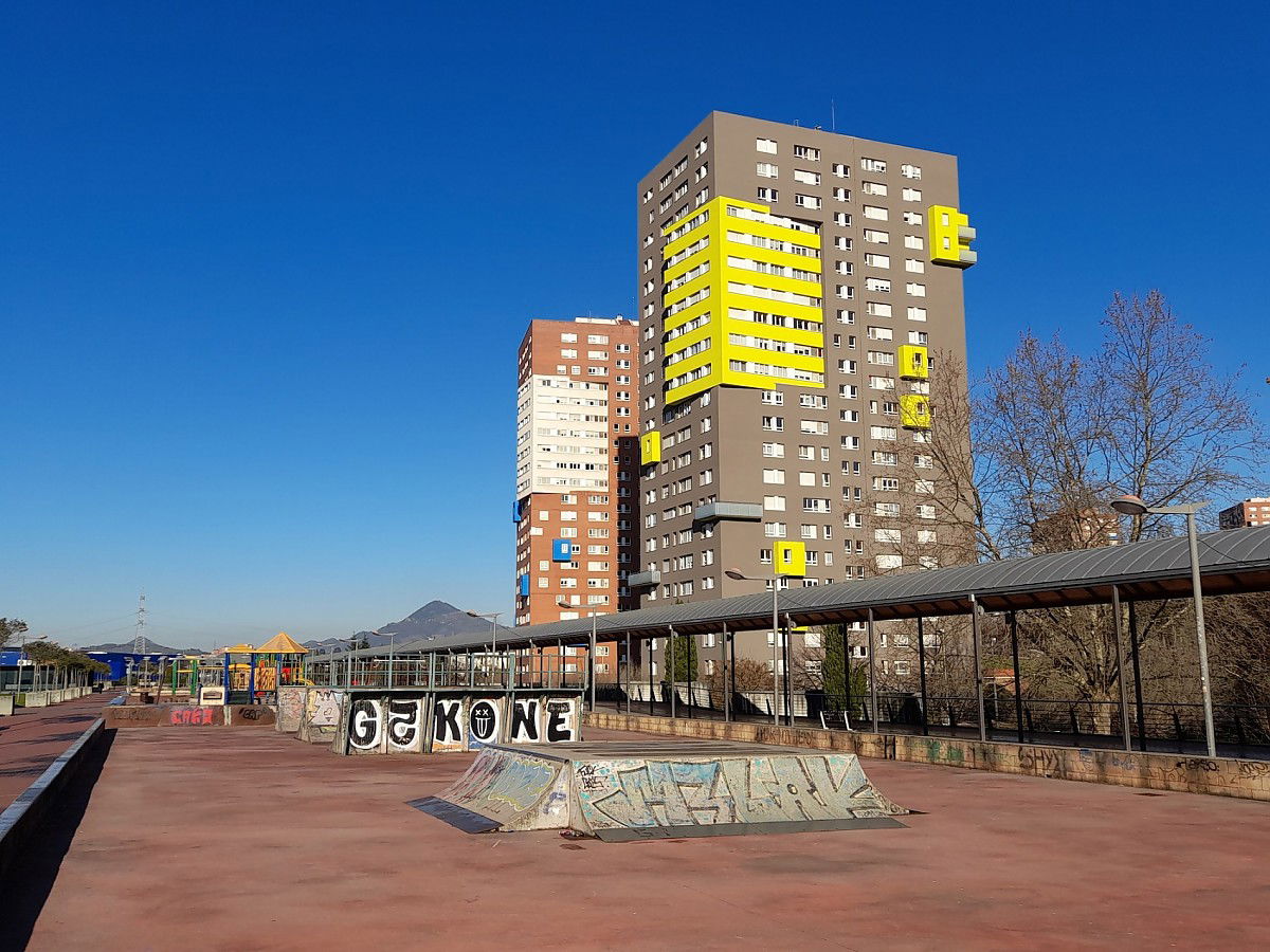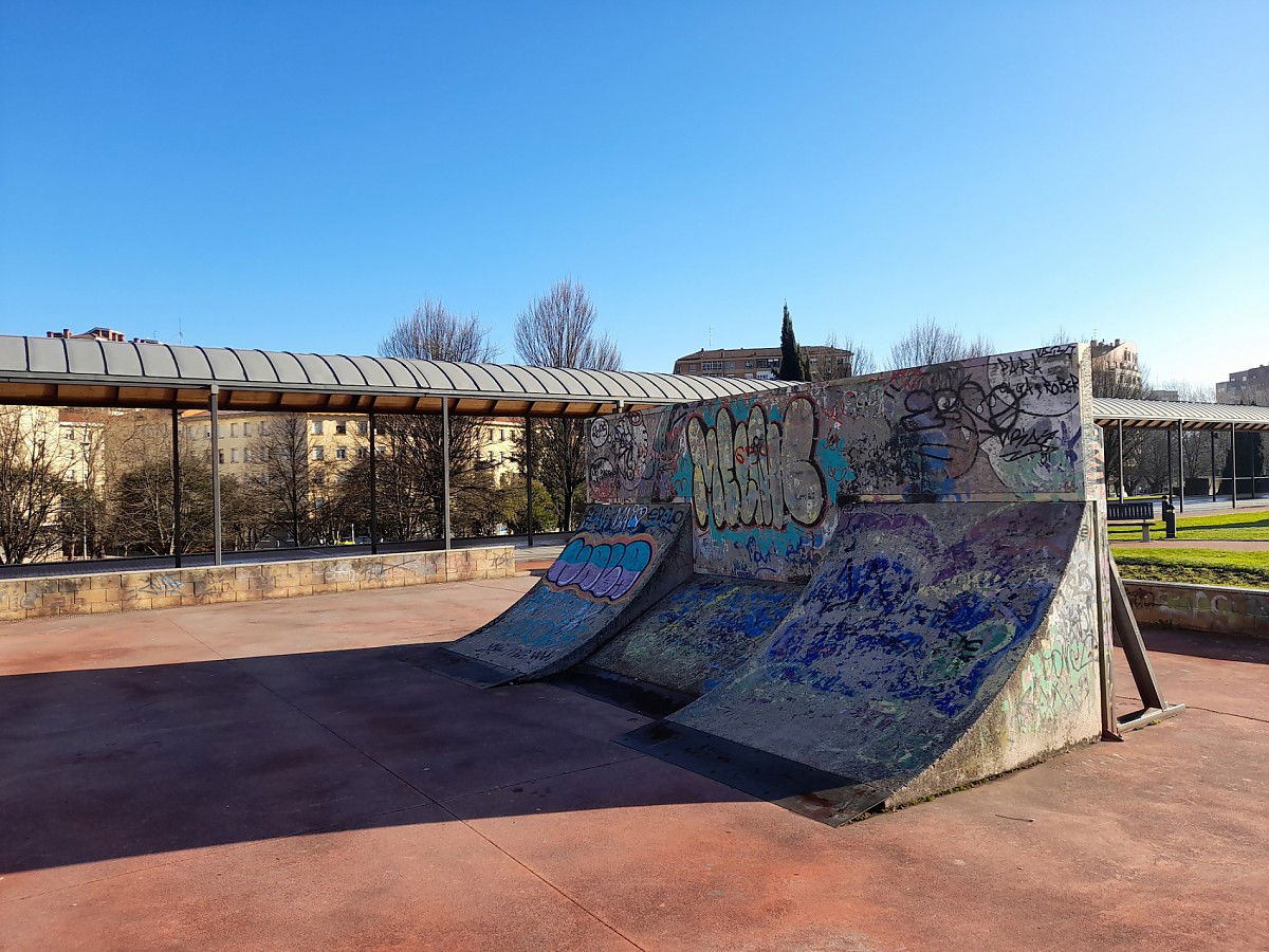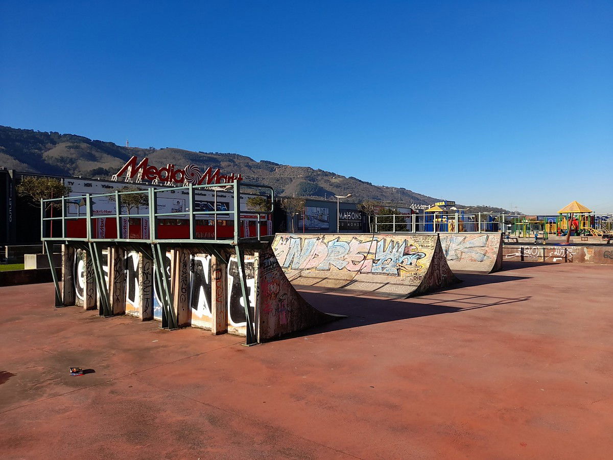 Megapark skatepark is made up of a miniramp and several basic skateboarding obstacles.