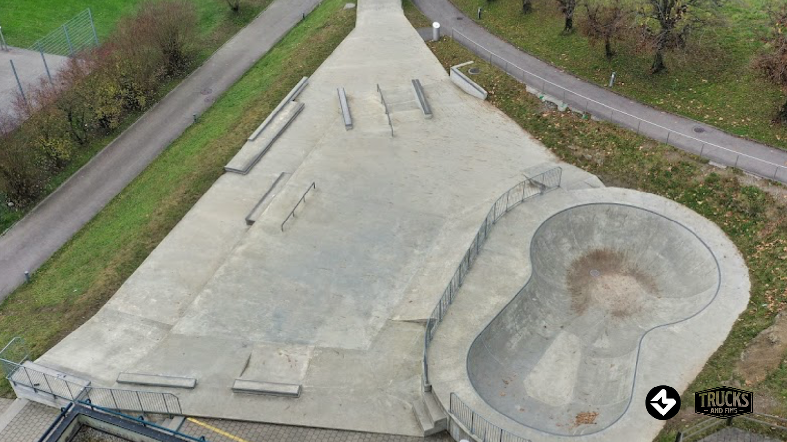 Hallenbad Meilen and the Allmend sports center. The skatepark offers a bowl, curbs and rails among other things.