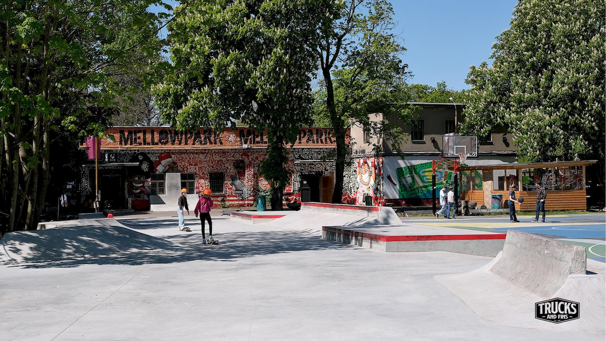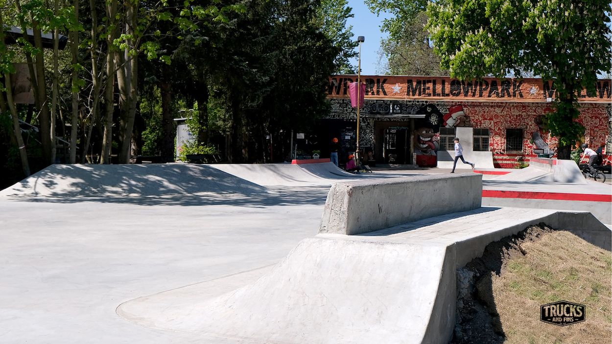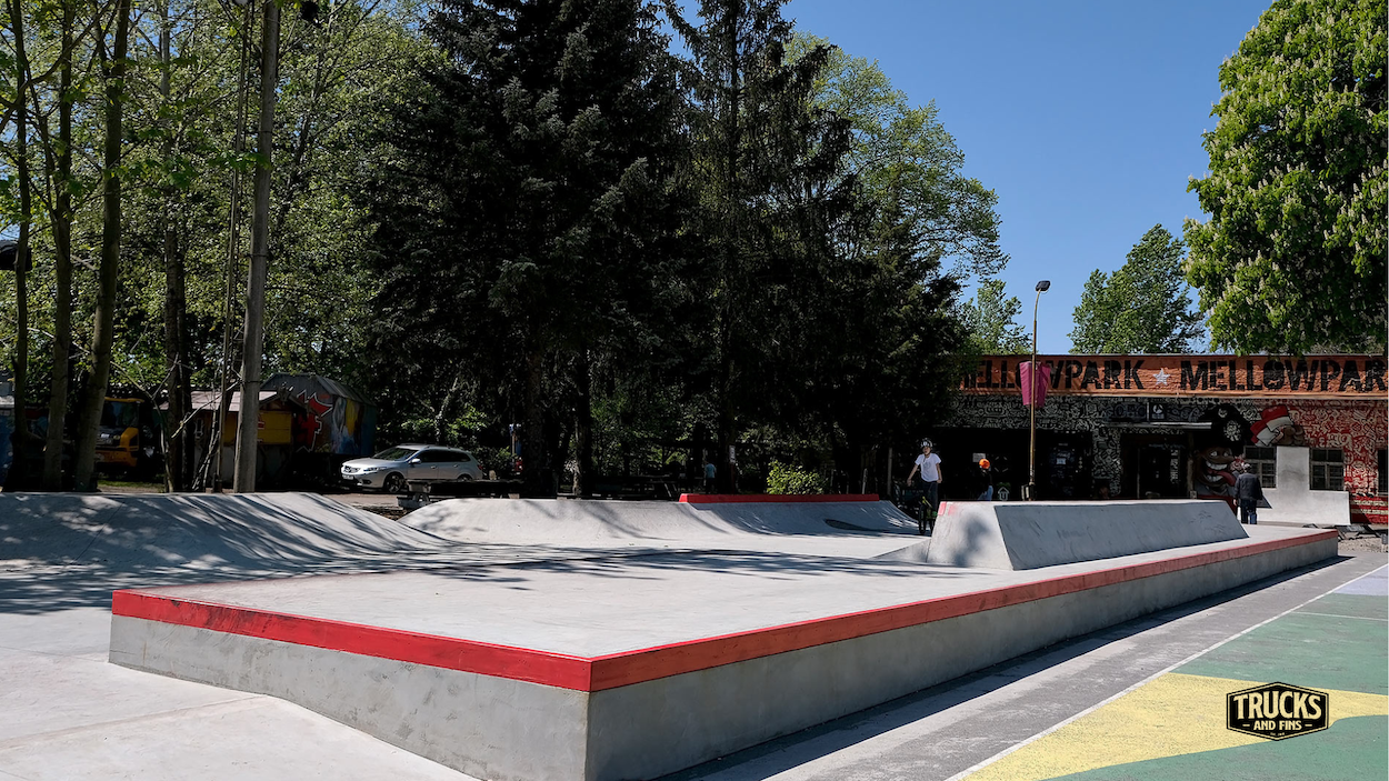 A 750m2 street-addition that puts Mellowpark among the best places to skate in all of Berlin. Funding for the project as the result of a colaboration of Mellowpark x FC Union Berlin x Irie Daily x adidas. Smooth obstacles and plenty of space. The perfect day-trip location. Long ledges, tranny-to-slappy, bank-to-ledge, Jersey-obstacle... this is it! The skatepark was built by Yamato Living Ramps and designed by endboss GmbH.