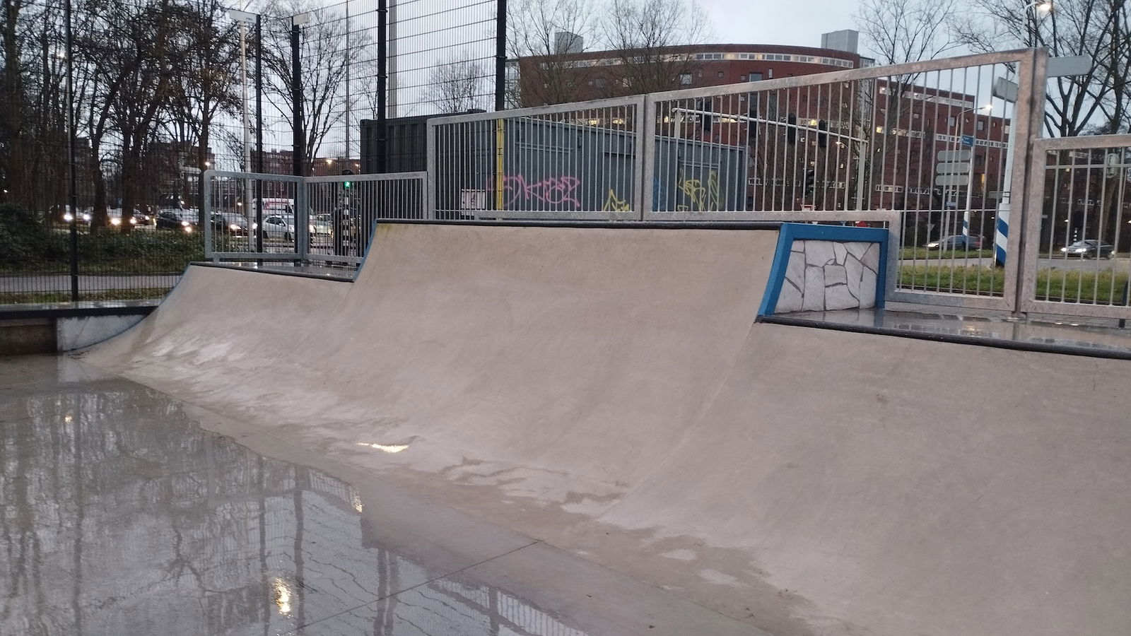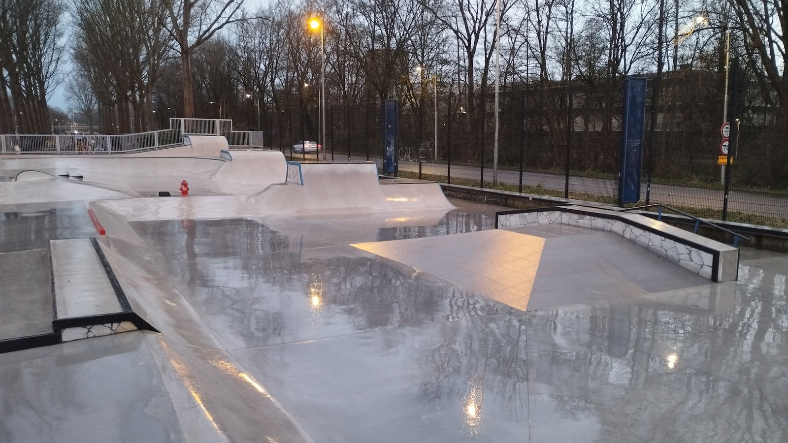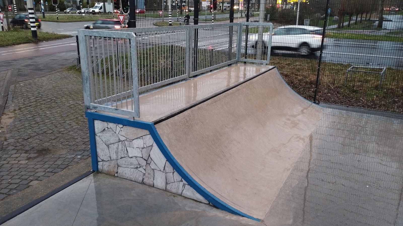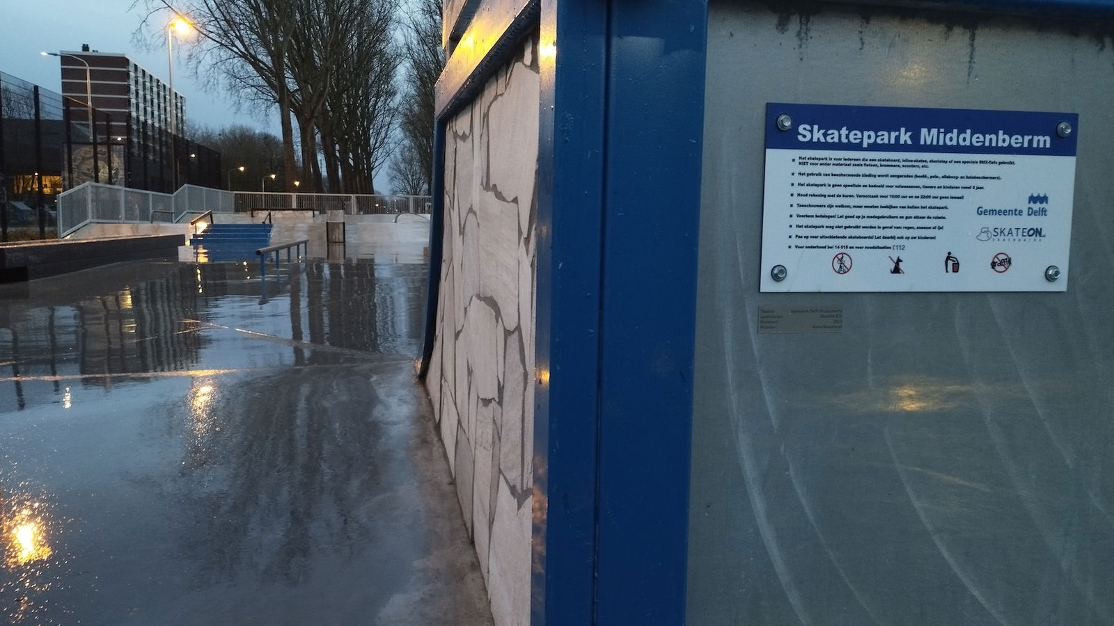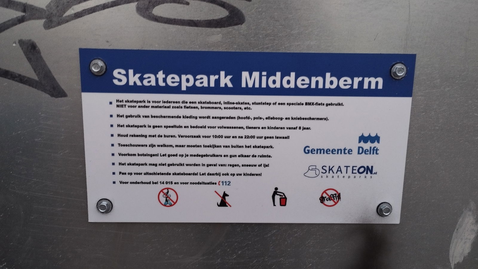 Middenberm skatepark is a metal skatepark, made up of a large back and forth run with a quarter pipe and flat bank on the sides of a funbox. The skatepark also features a miniramp.