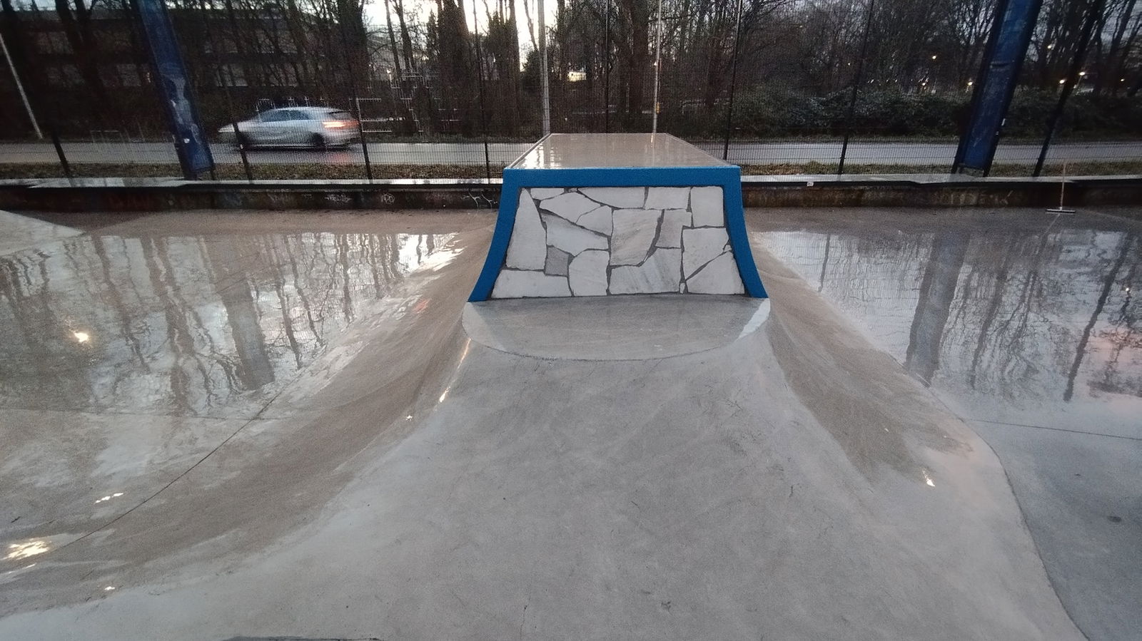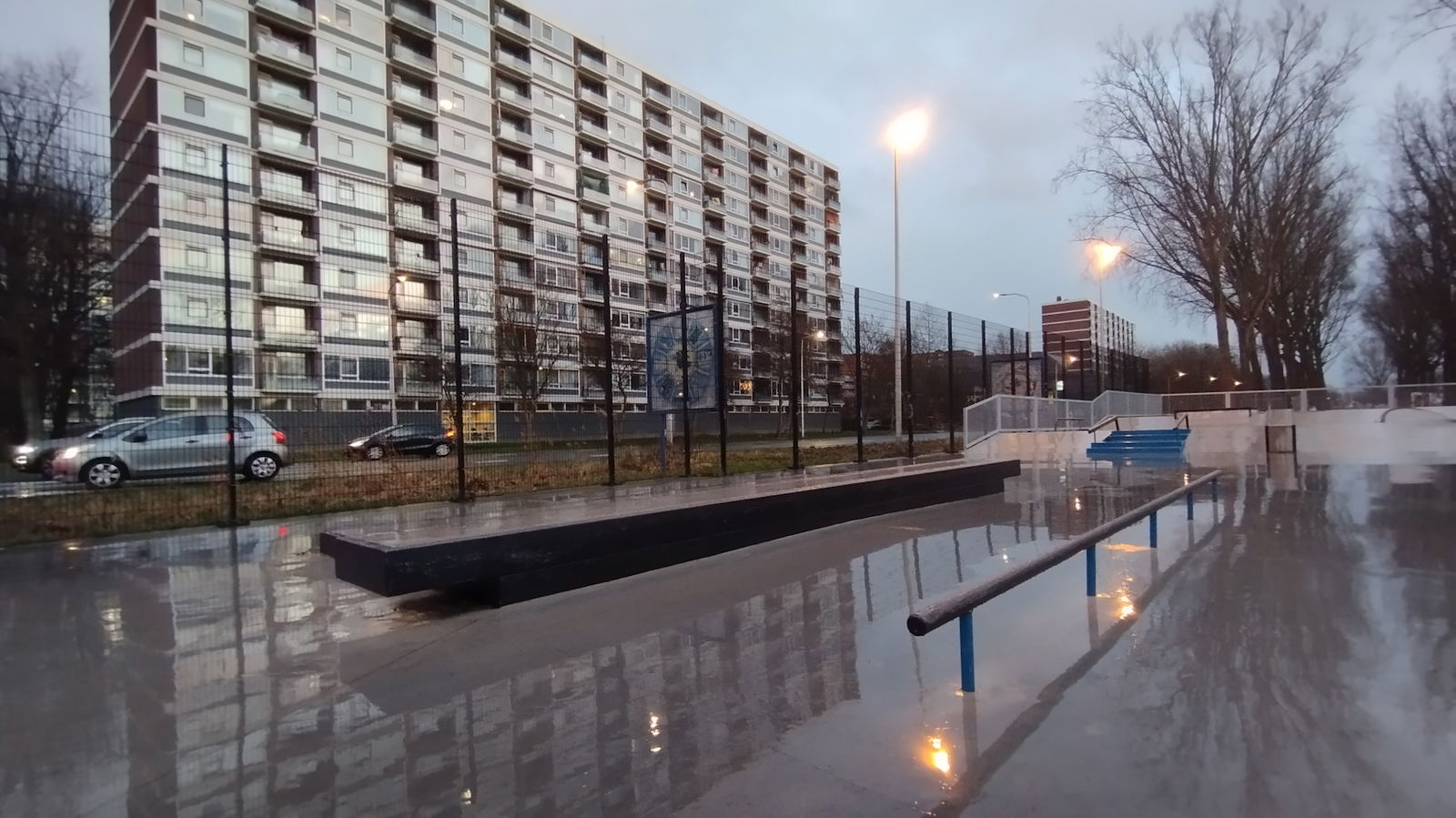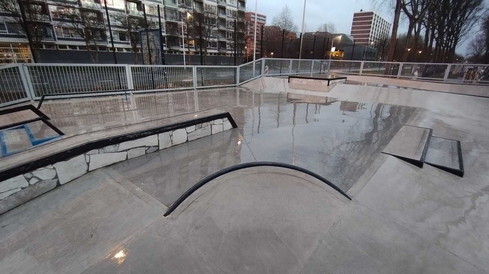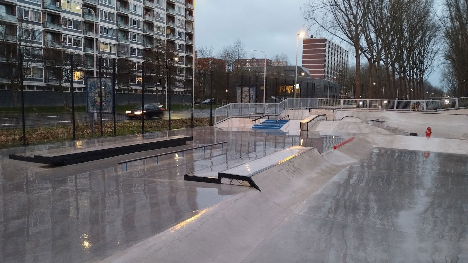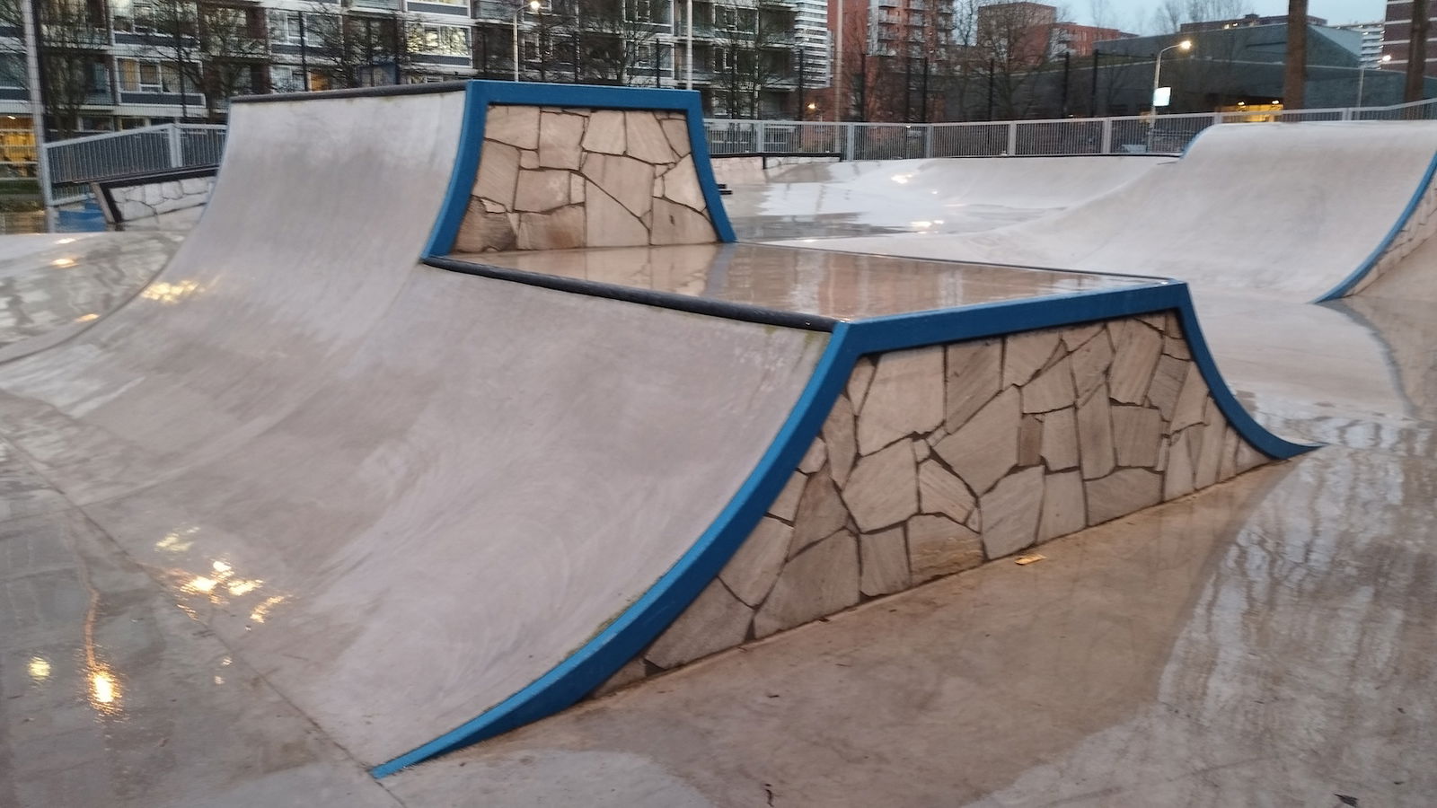 Middenberm skatepark is a metal skatepark, made up of a large back and forth run with a quarter pipe and flat bank on the sides of a funbox. The skatepark also features a miniramp.