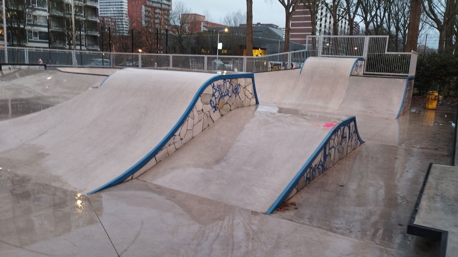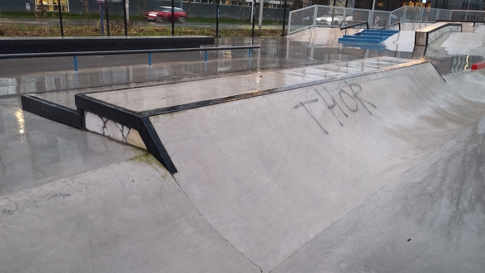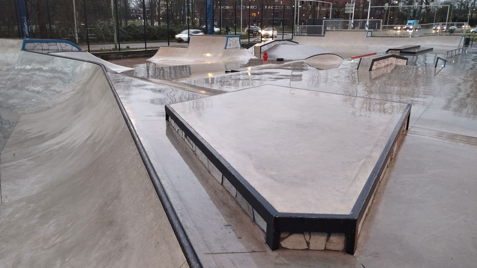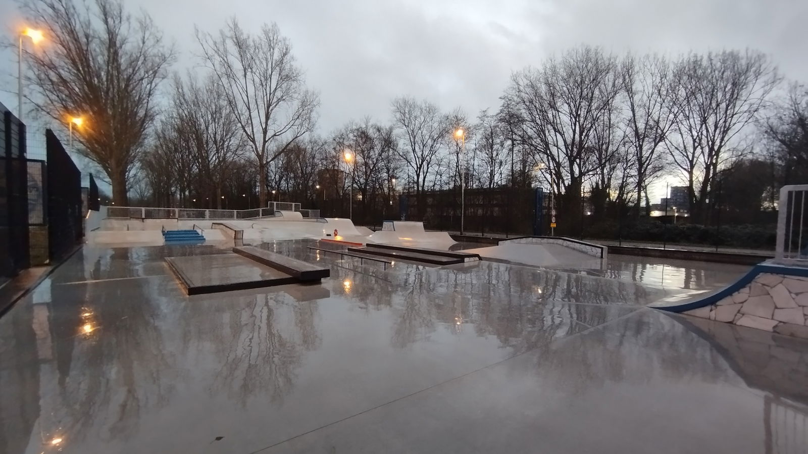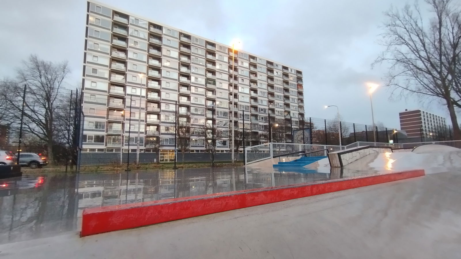 Middenberm skatepark is a metal skatepark, made up of a large back and forth run with a quarter pipe and flat bank on the sides of a funbox. The skatepark also features a miniramp.