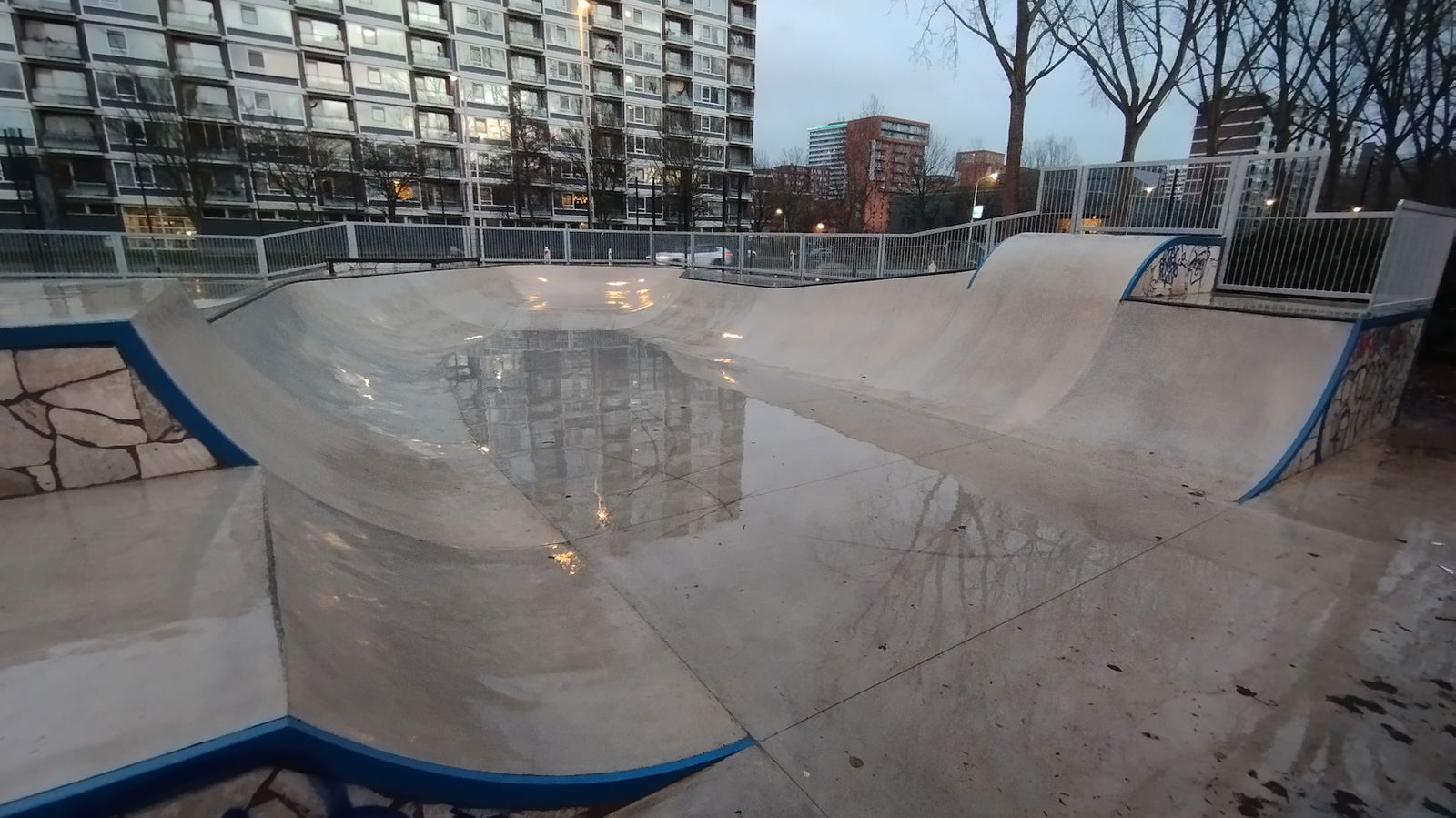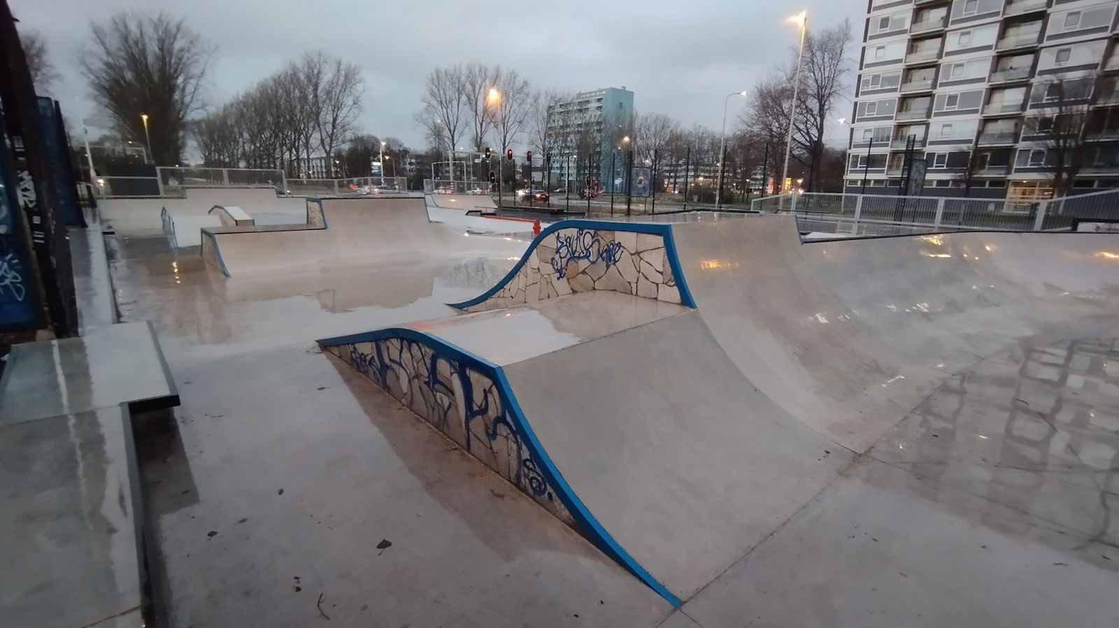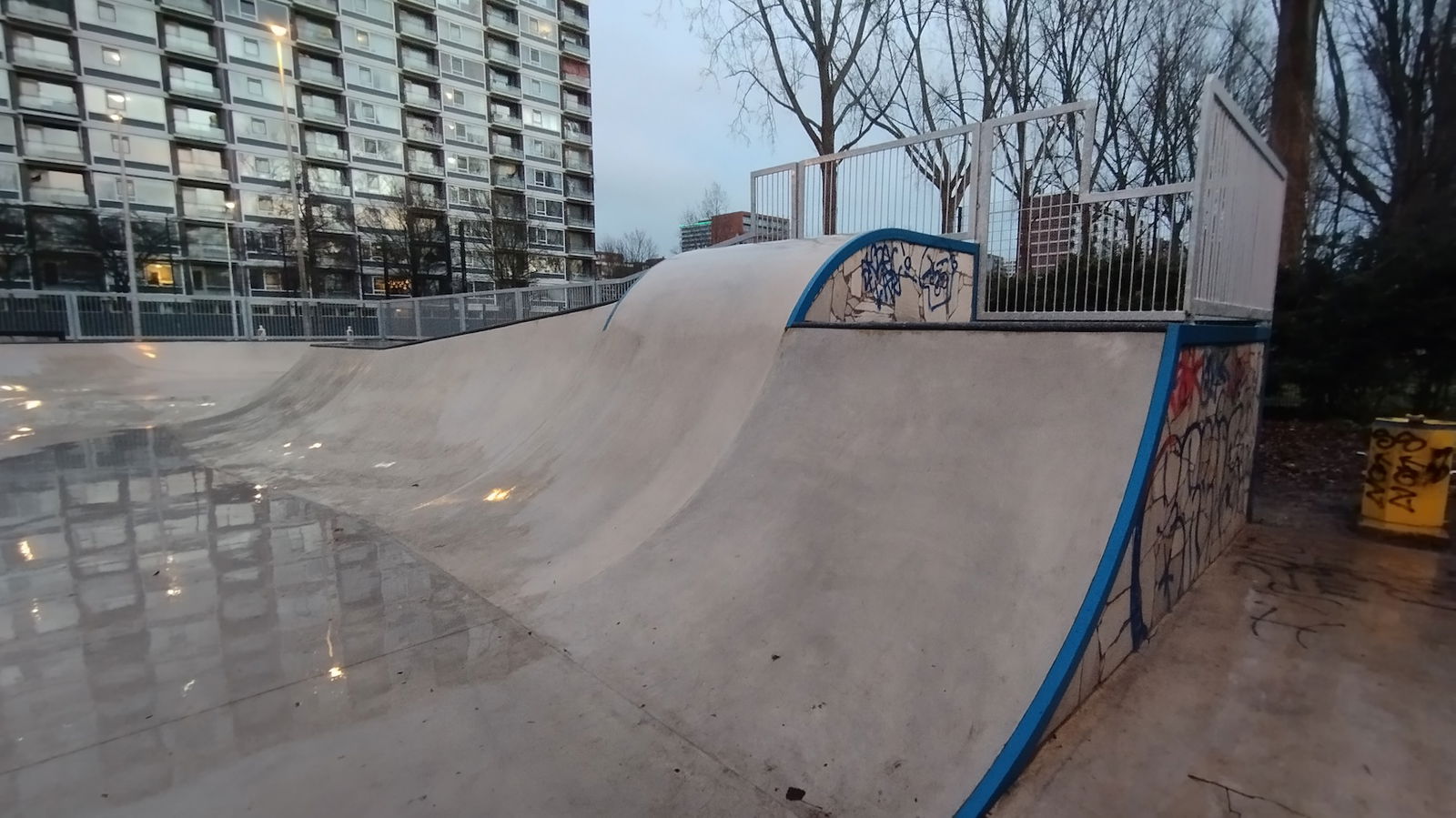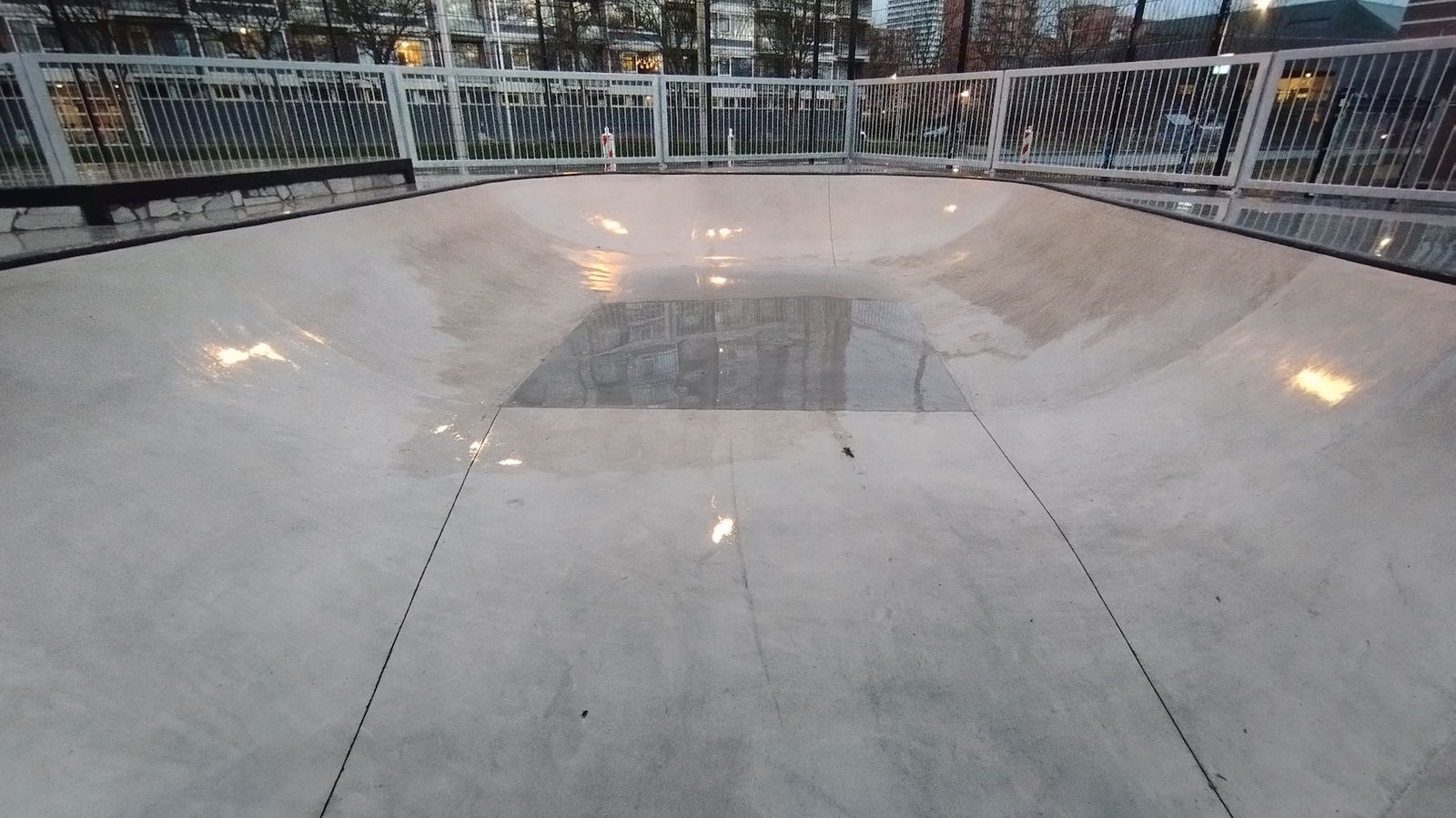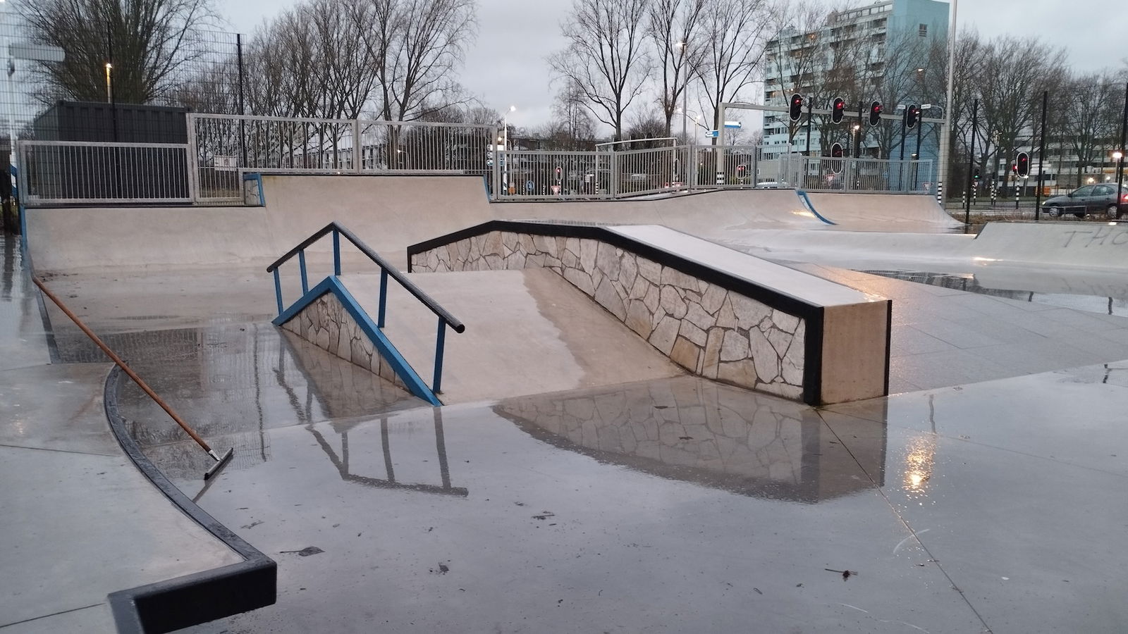 Middenberm skatepark is a metal skatepark, made up of a large back and forth run with a quarter pipe and flat bank on the sides of a funbox. The skatepark also features a miniramp.