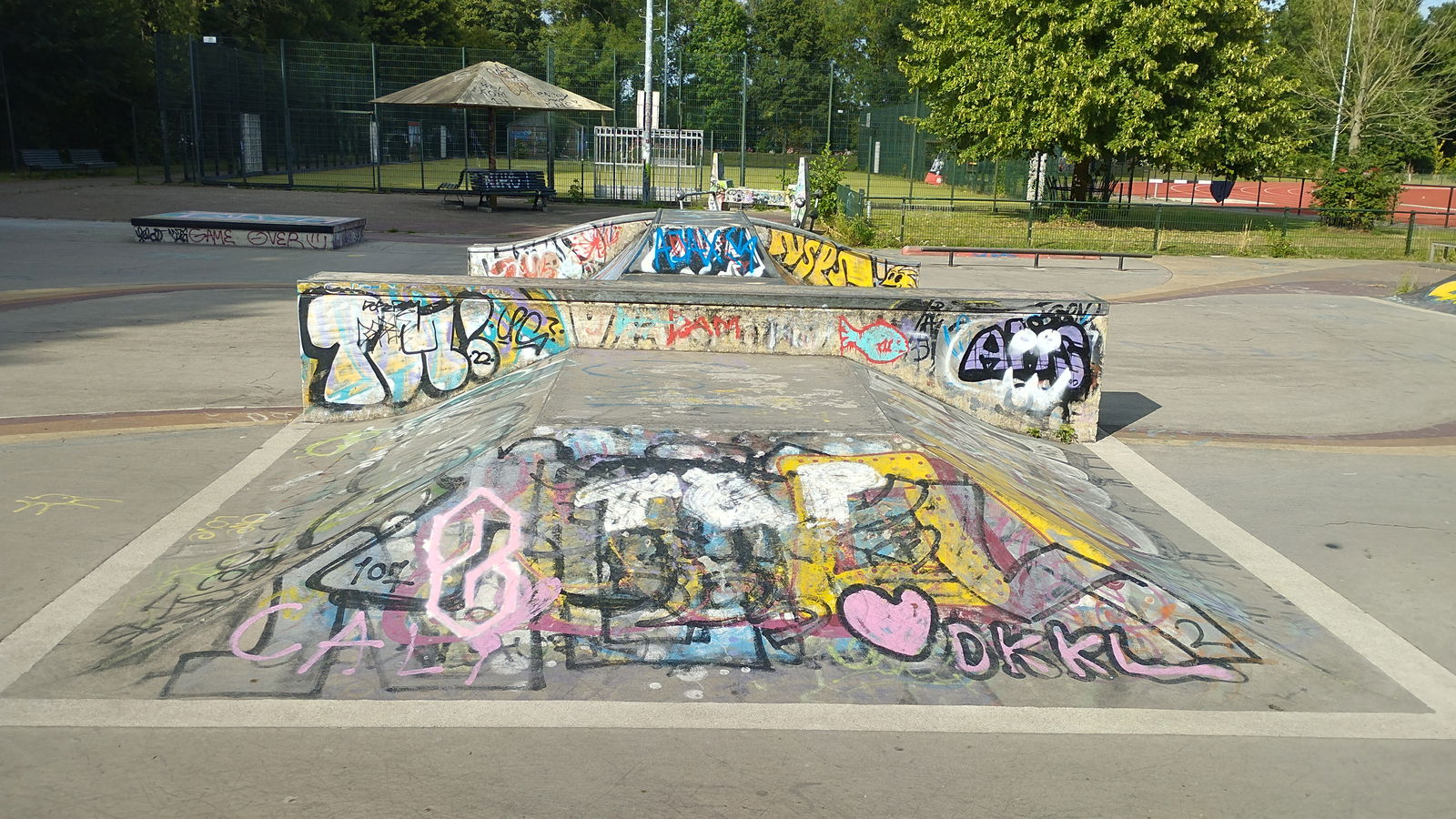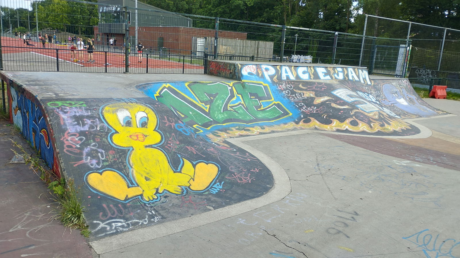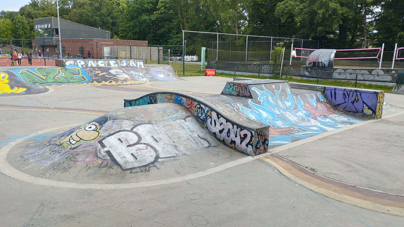 Middenmeerpad skatepark, also known as The Johan Cruyff skatepark, is a concrete skatepark in Amsterdam. The banks are choppy and irregular and the asphalt is a bit rough, but it‘s still got a manualpad and flatrail to train some basic tricks and enjoy the fun.