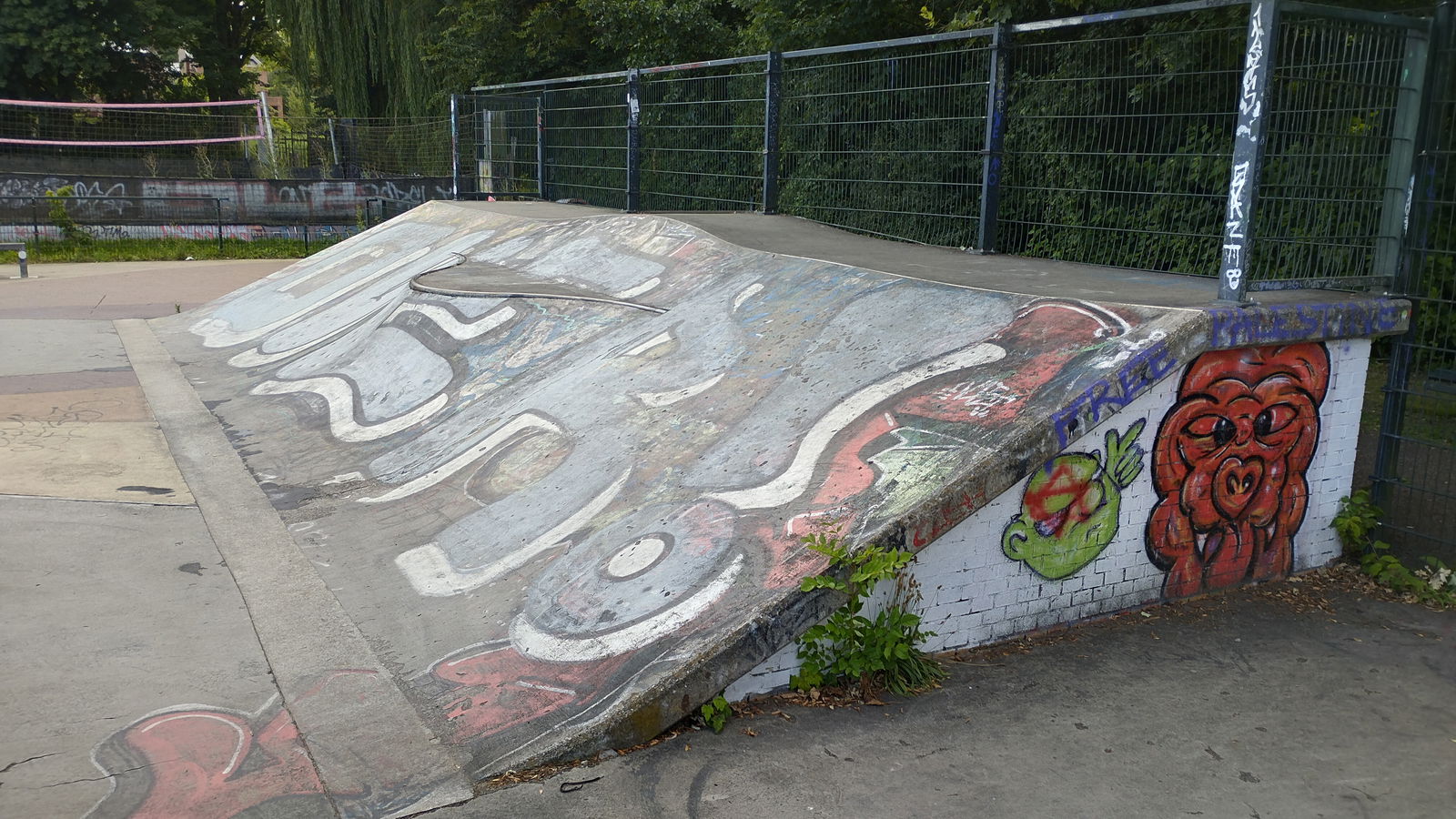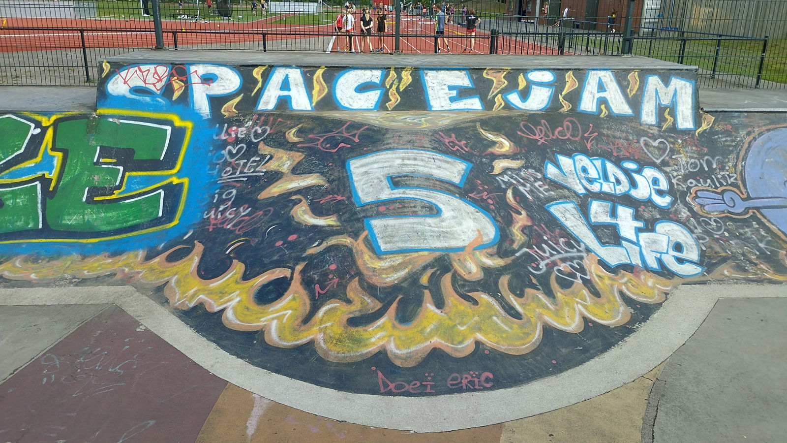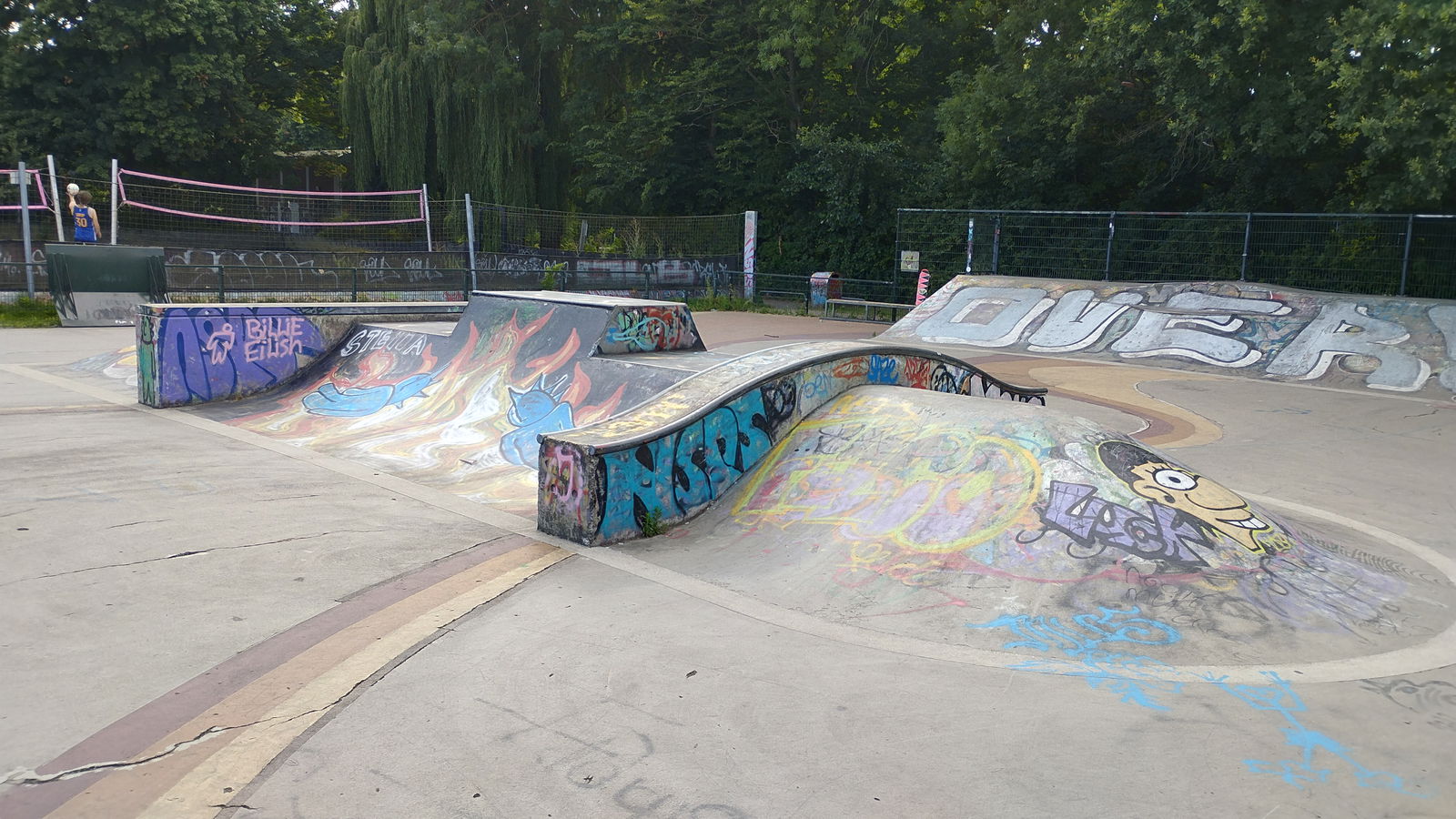 Middenmeerpad skatepark, also known as The Johan Cruyff skatepark, is a concrete skatepark in Amsterdam. The banks are choppy and irregular and the asphalt is a bit rough, but it‘s still got a manualpad and flatrail to train some basic tricks and enjoy the fun.
