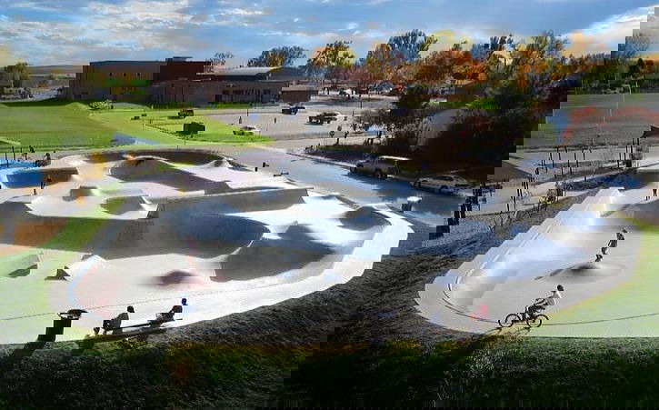 This park is known for its unique flow-oriented design, featuring a rocket-shaped bowl, roll-ins, quarter pipes, banks, and several street-style features like pyramids and volcanos. The layout is designed for smooth transitions, making it a popular spot for skaters of all skill levels.