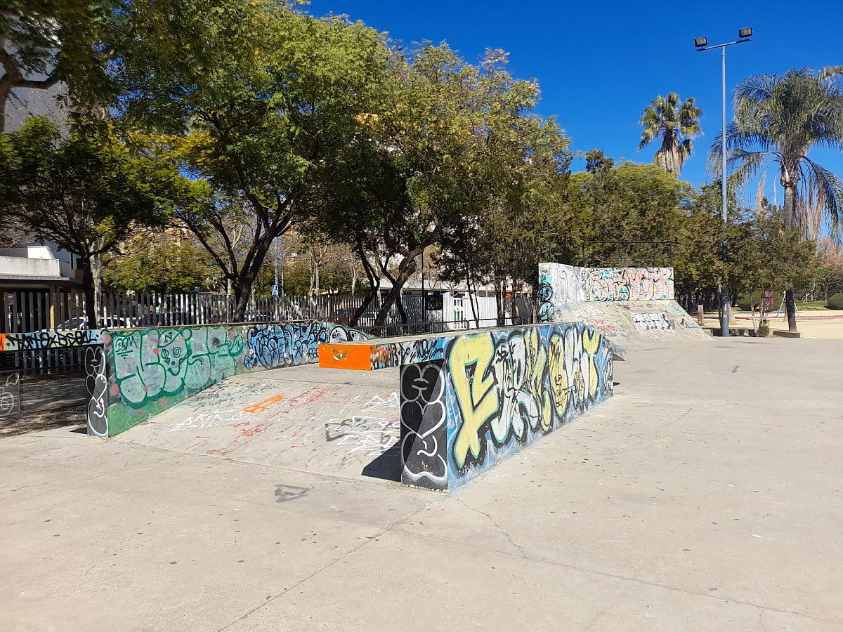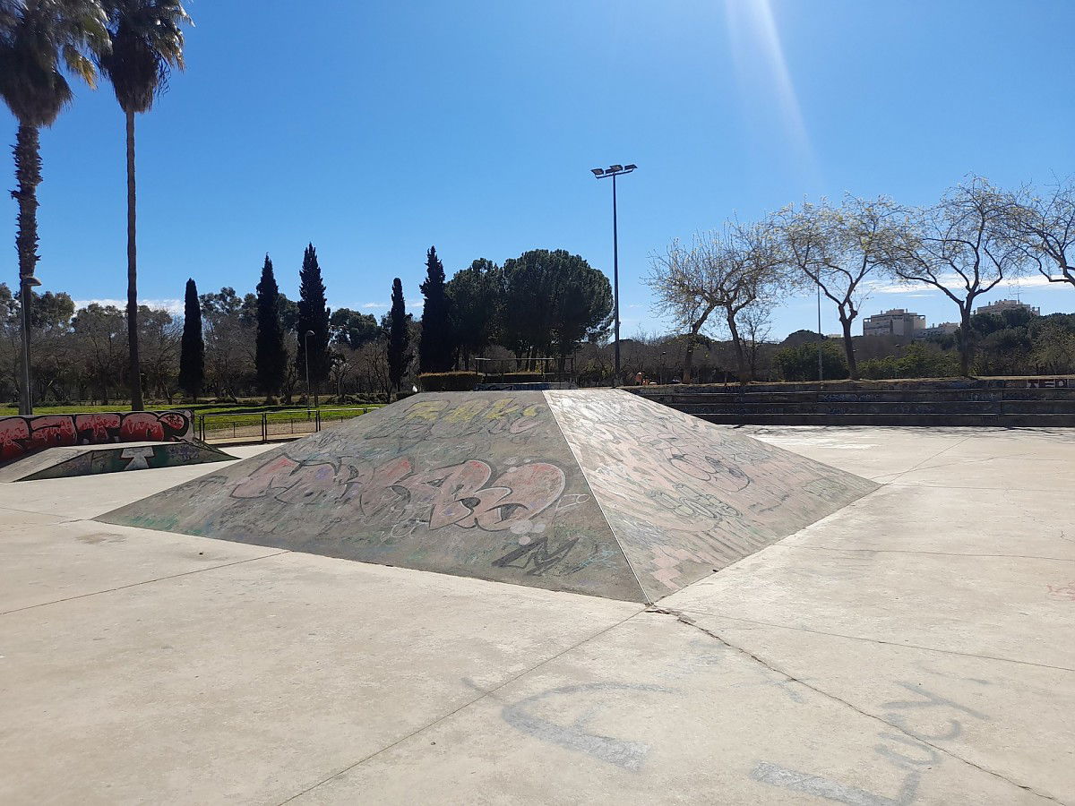 Miraflores skatepark is a concrete skatepark featuring several ramps, a funbox and a pyramid.