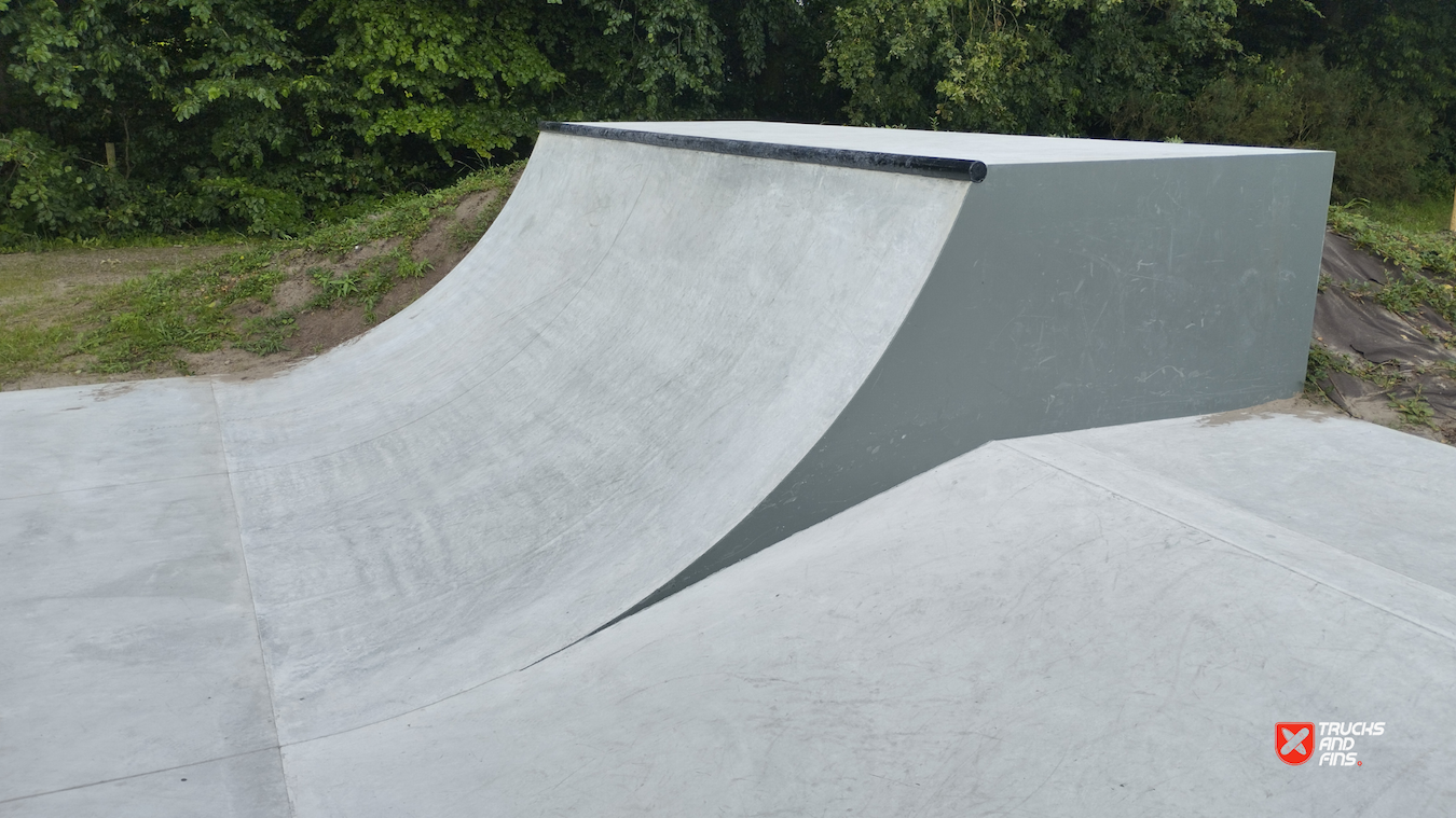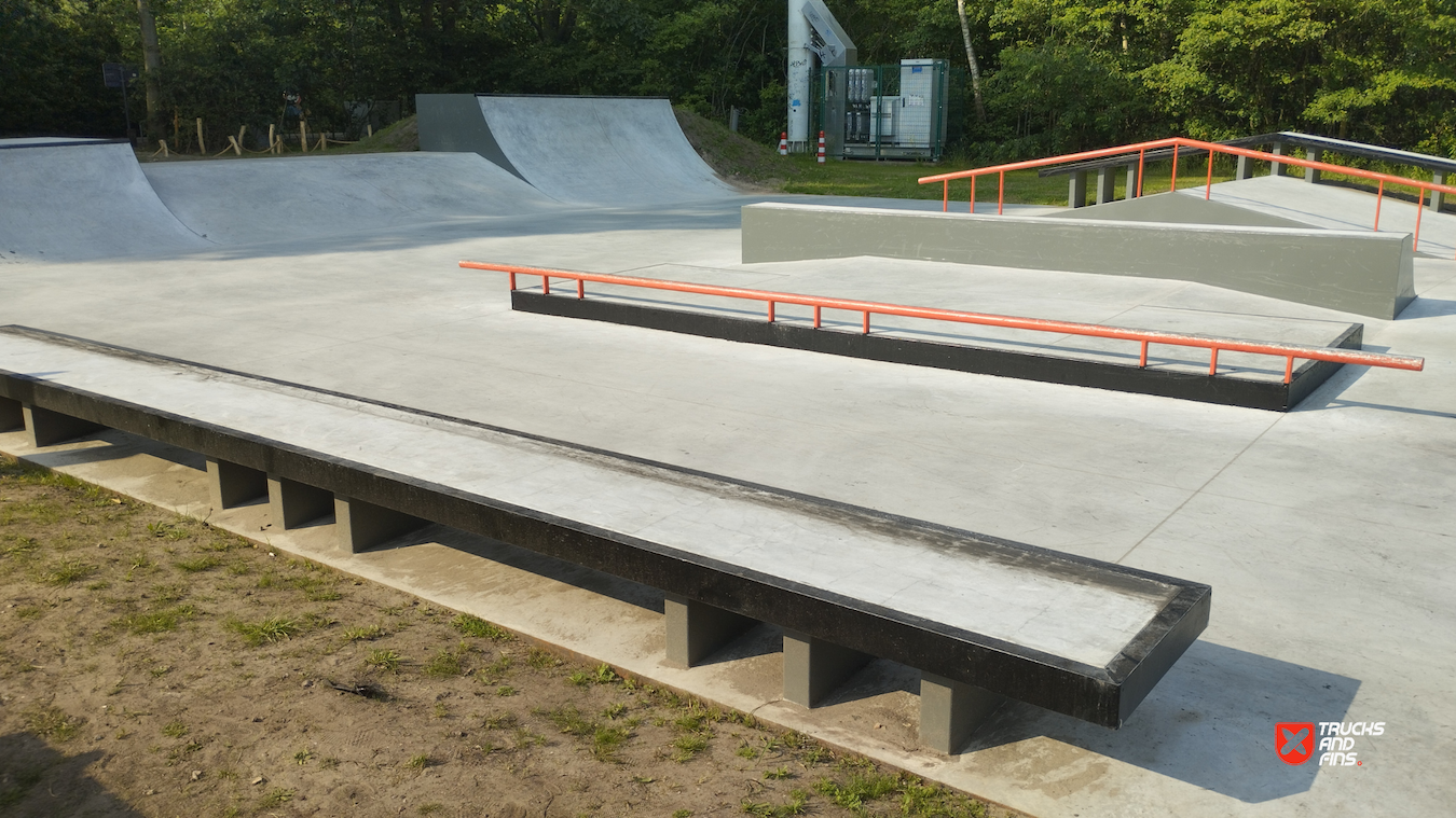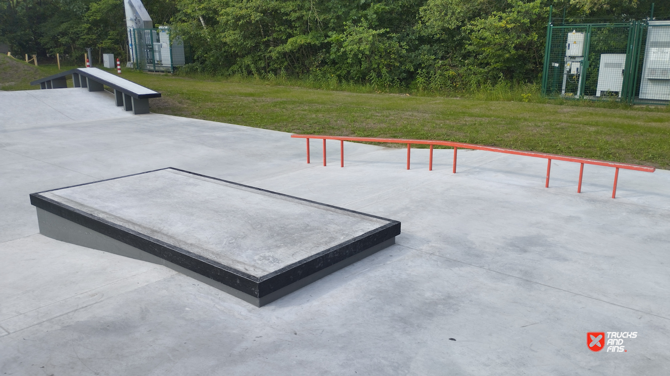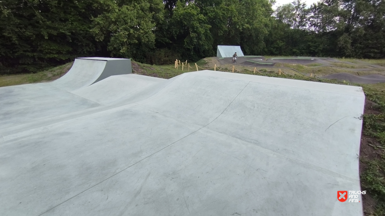 Mishagen Brasschaat skatepark is a concrete skatepark packed with ledges, manual pads and street obstacles. Before there was a wooden park on spot.