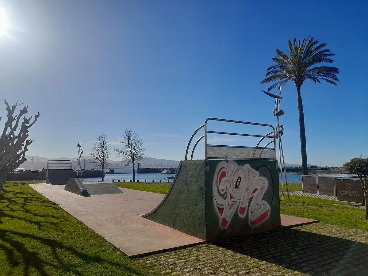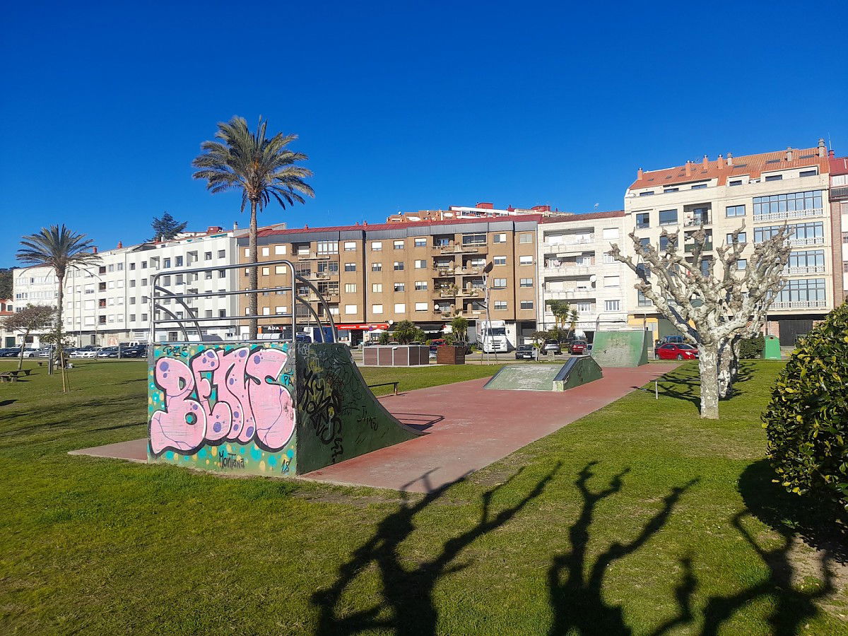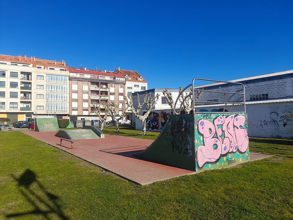 Moaña skatepark is a small park with several basic skateboarding obstacles in a back and forth setup.