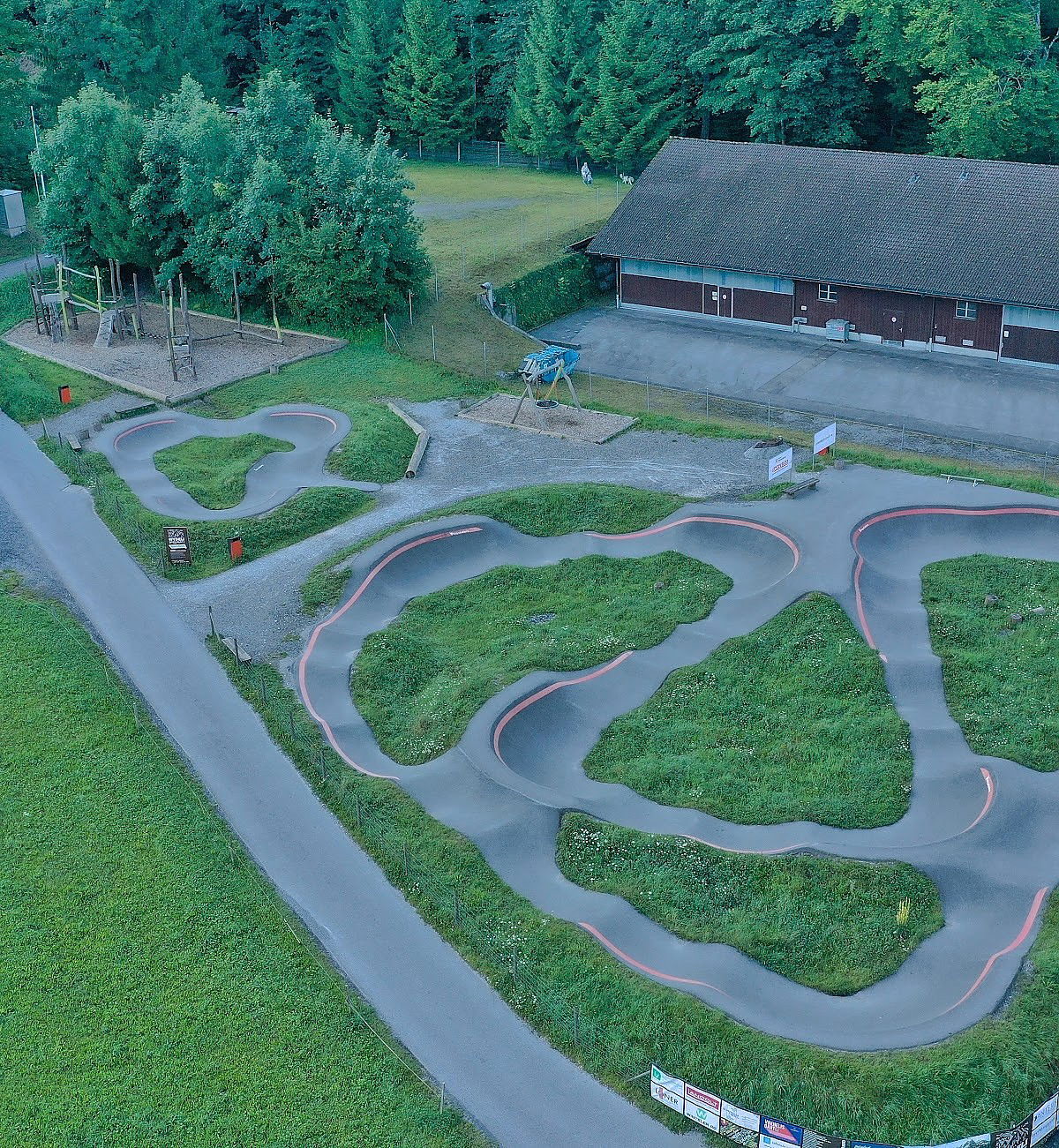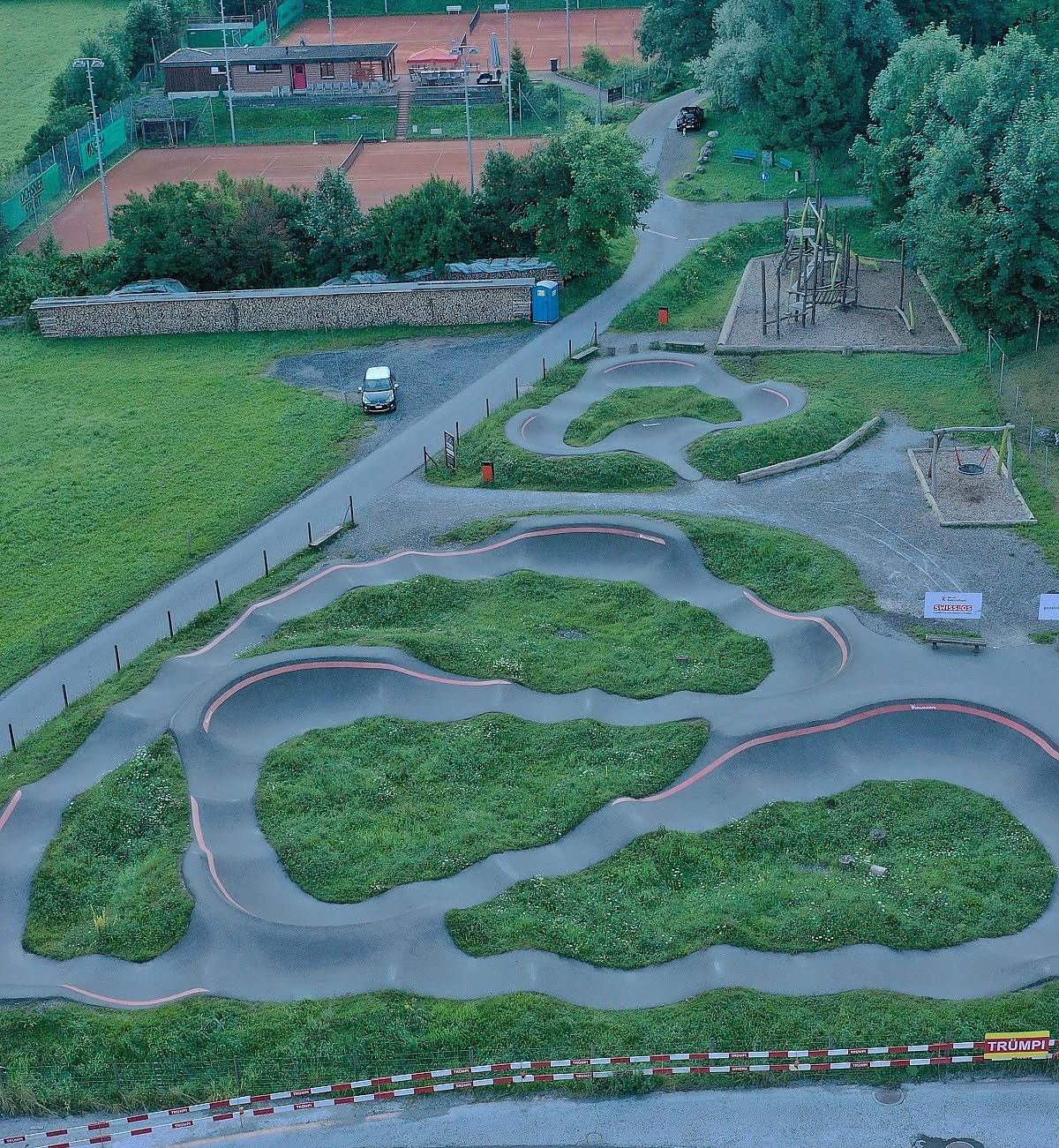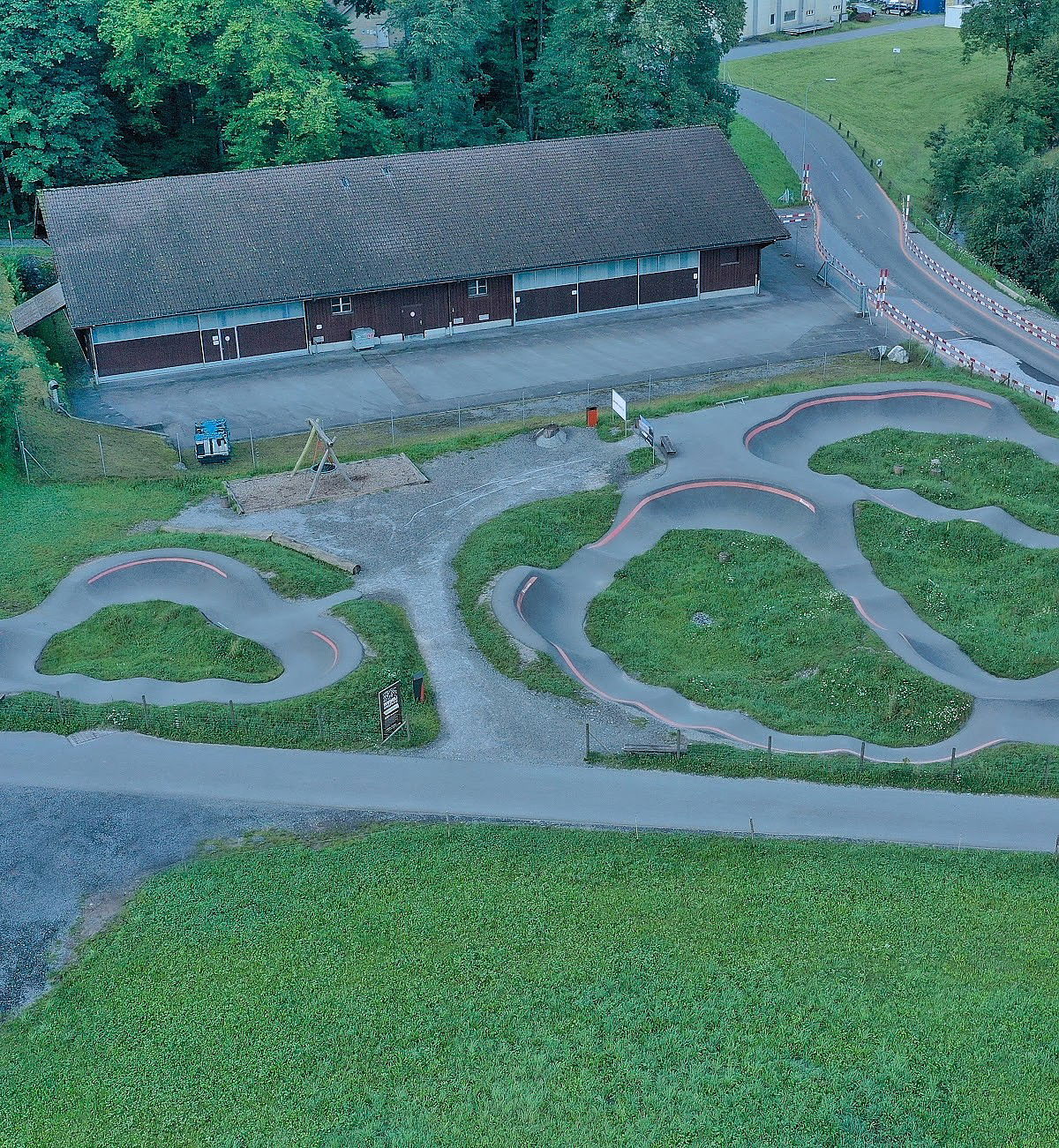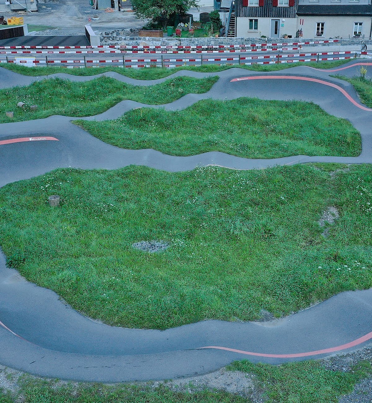 The 2000 square meter Mollis pumptrack is an aspahlt track built by Velosolutions.