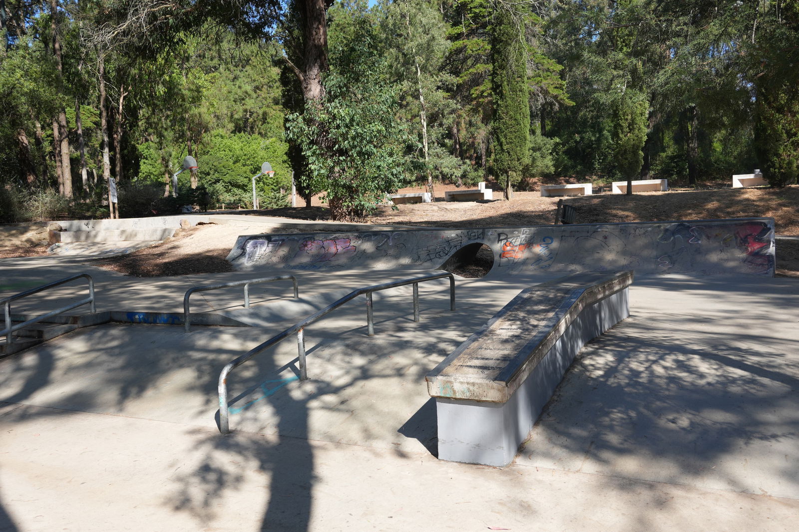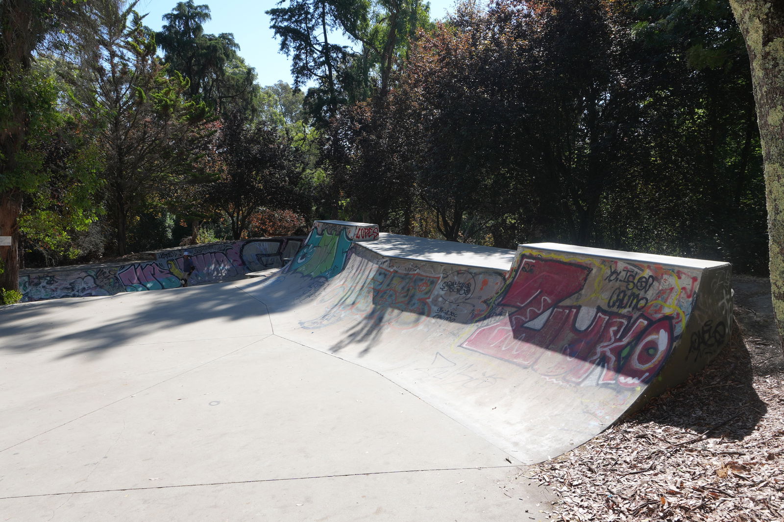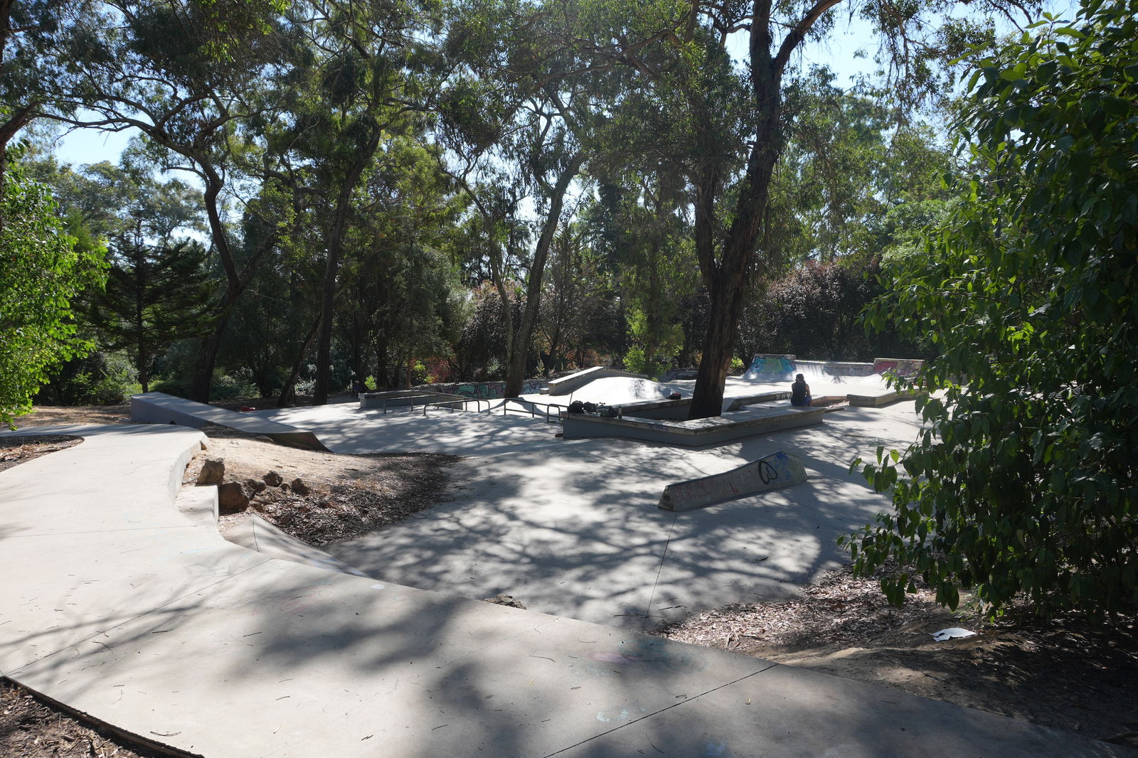 Great skate park in the middle of the forest, there is a lot of shade from the trees which is perfect.