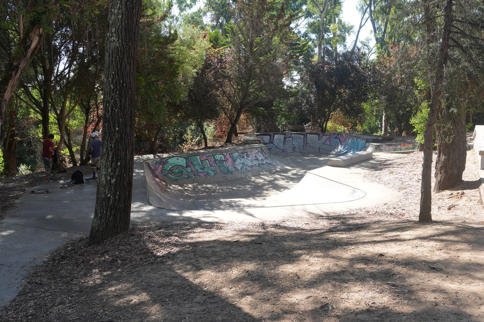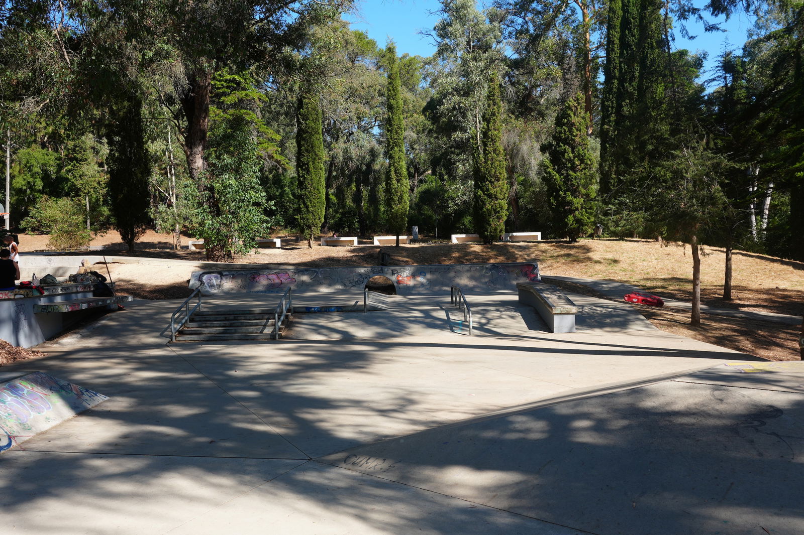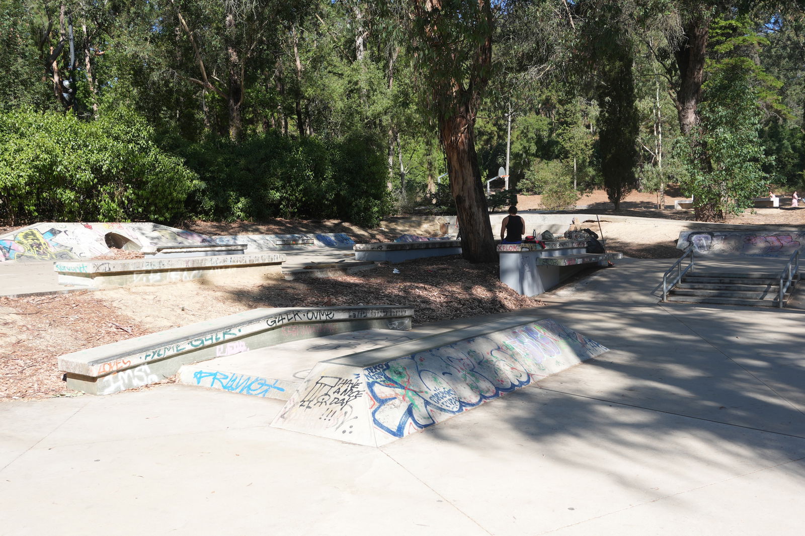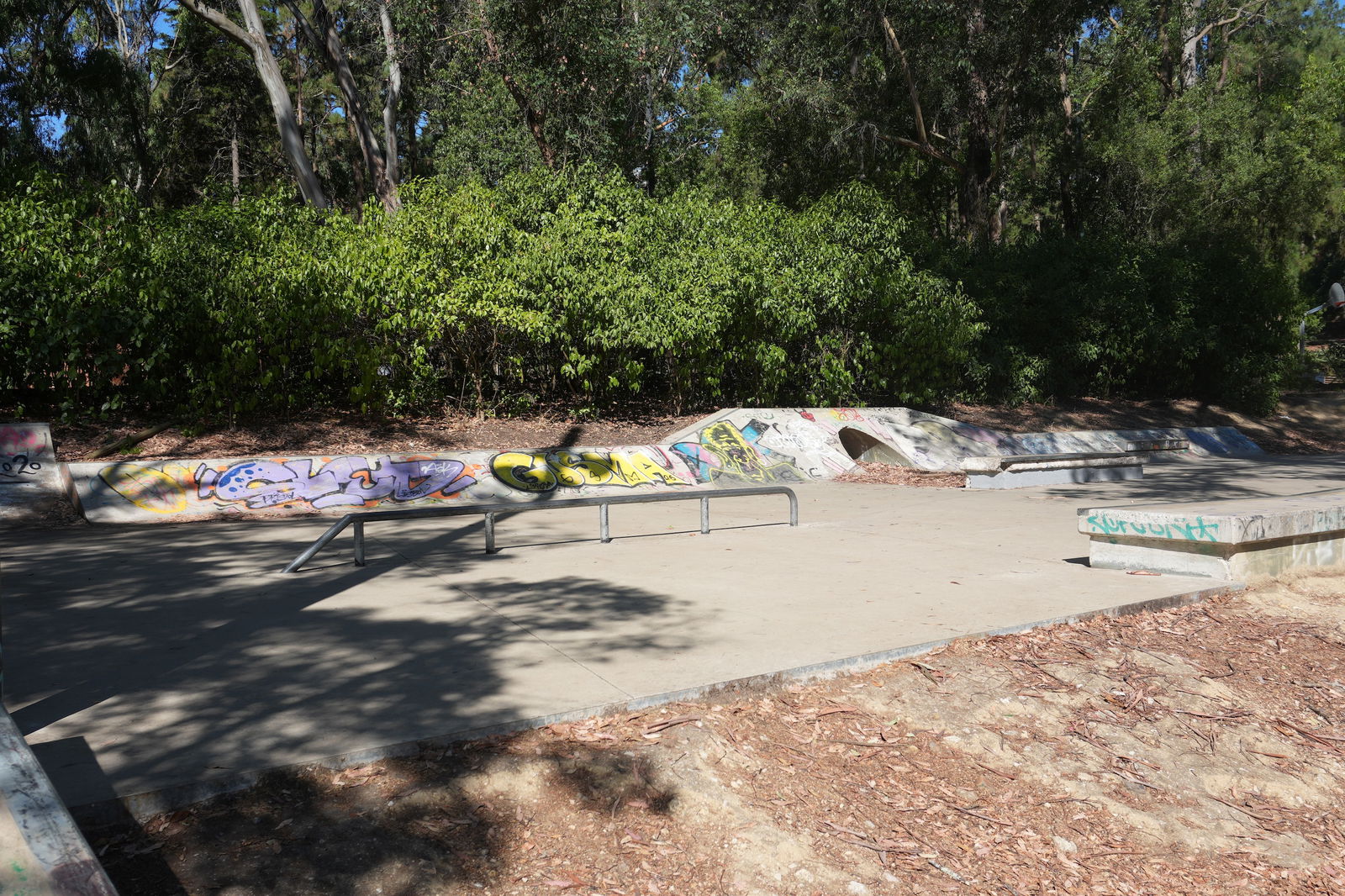 Great skate park in the middle of the forest, there is a lot of shade from the trees which is perfect.