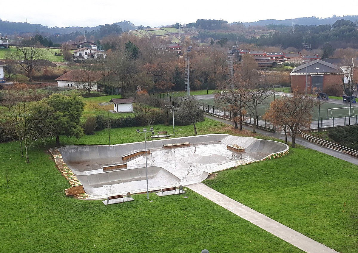 Mungia is a town and municipality in the Basque Country of northern Spain, located in the province of Biscay, with a population of 17701 (2021). Located next to the Kirol Gunea football field you will find the skatepark of Mungia. Mungia skatepark is a concrete park designed by Daniel Yabar. The skatepark features a bowl and a street area with a nice flow.