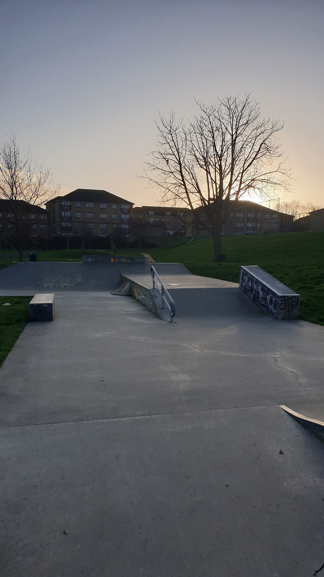 Good spot for a chill session or to practise, mostly quiet except weekends when it‘s full off younger skaters. No water tap and not the closest to any corner shop so bring your food and drink. Free concrete park, friendly skaters, mostly kids.