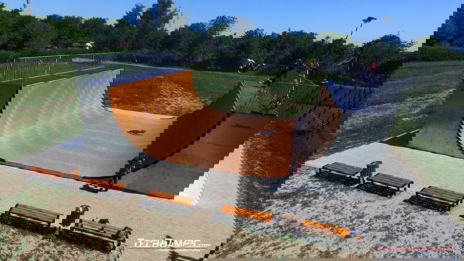 Myśliwska skatepark features a wooden halfpipe, built by Techramps. So to all the vert skaters out there, you know where to go.