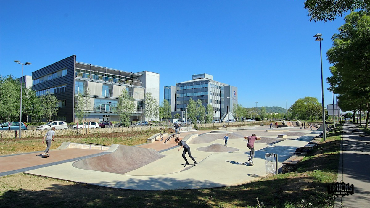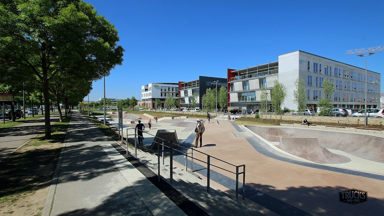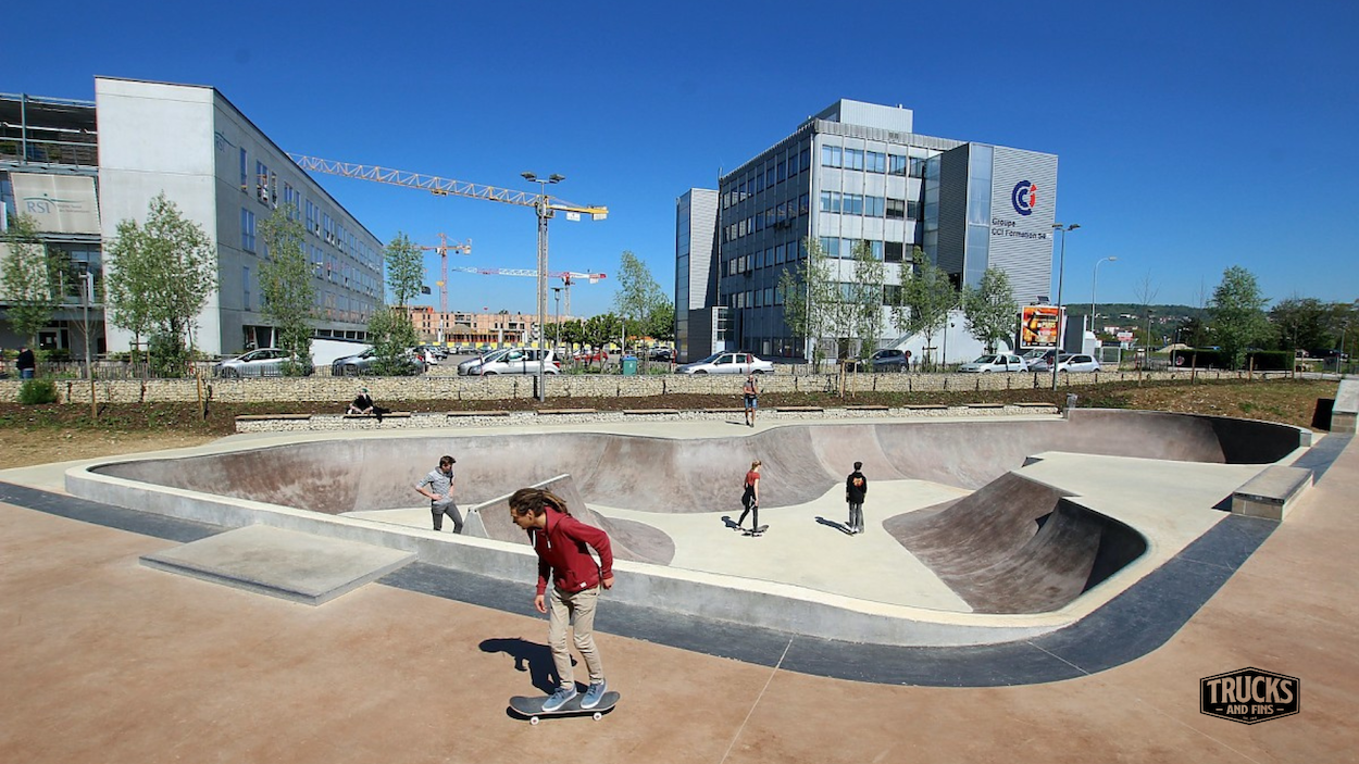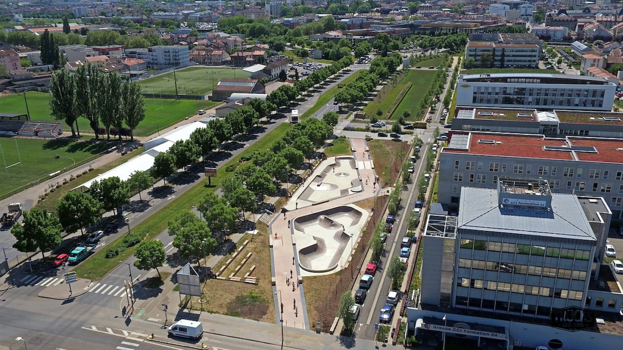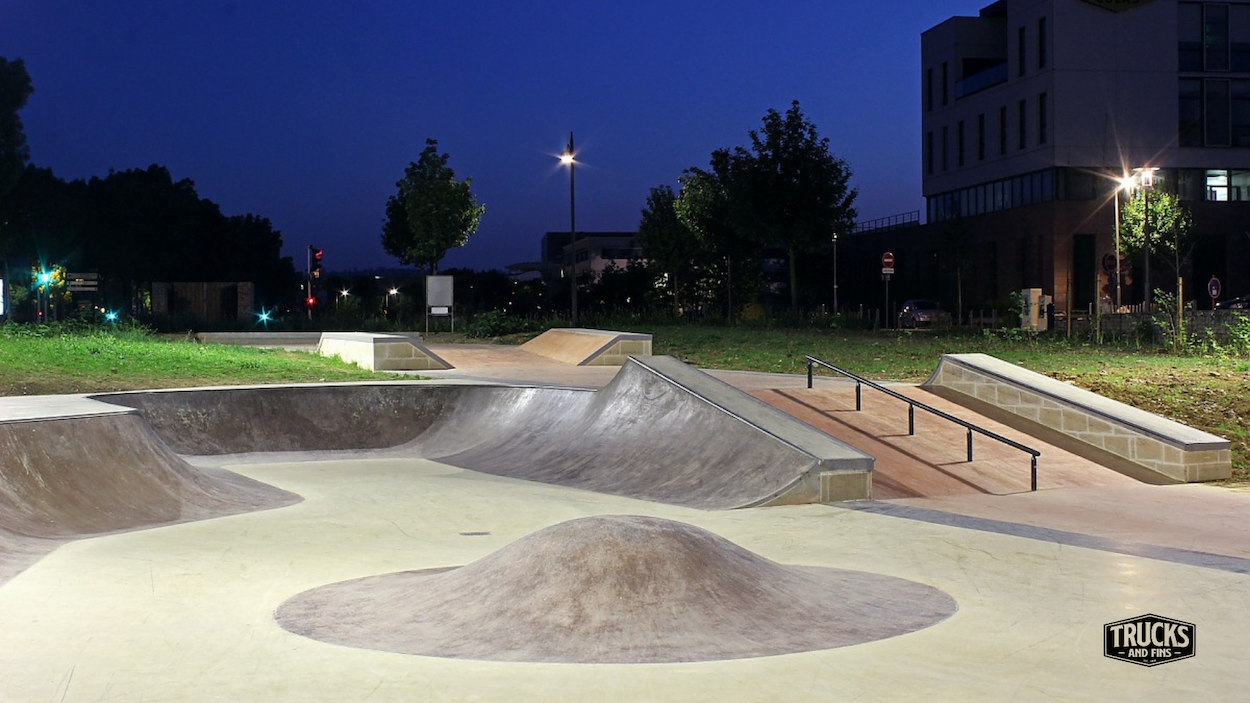 Nestled on Avenue Charles Étienne Collignon in Nancy (54), this outdoor concrete skatepark spans approximately 1,750 m² and welcomes skateboarders, rollerbladers and BMX riders from all levels. The facility features a large bowl with multiple hips, a spine and extension, flanked by a street-zone with ledges, rails, curbs and banks — all set in a green park environment. The skatepark is lit for evening sessions and offers free public access in a vibrant urban setting of Grand Est France. Whether you're filming runs, staging content or simply riding for fun, Nancy’s park delivers both flow and technical terrain in one place.