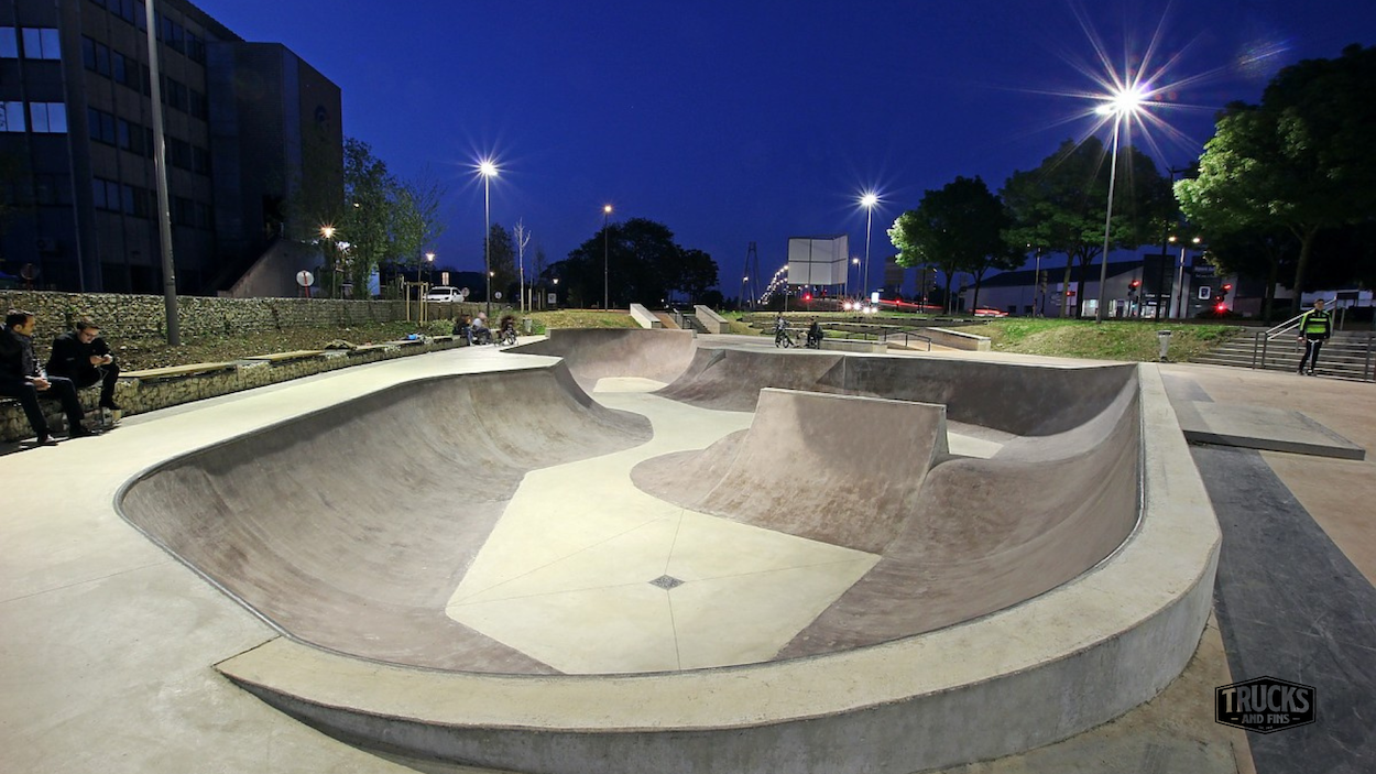 Trucks and Fins brings all of the world's skateparks to you all in one convenient place through their endless search for parks around the world. They have park locations, details, images, and more to help plan your next skate quest wherever that may take you. We appreciate their dedication and passion for skateboarding and the amazing gifts that skateparks and skate spots are.