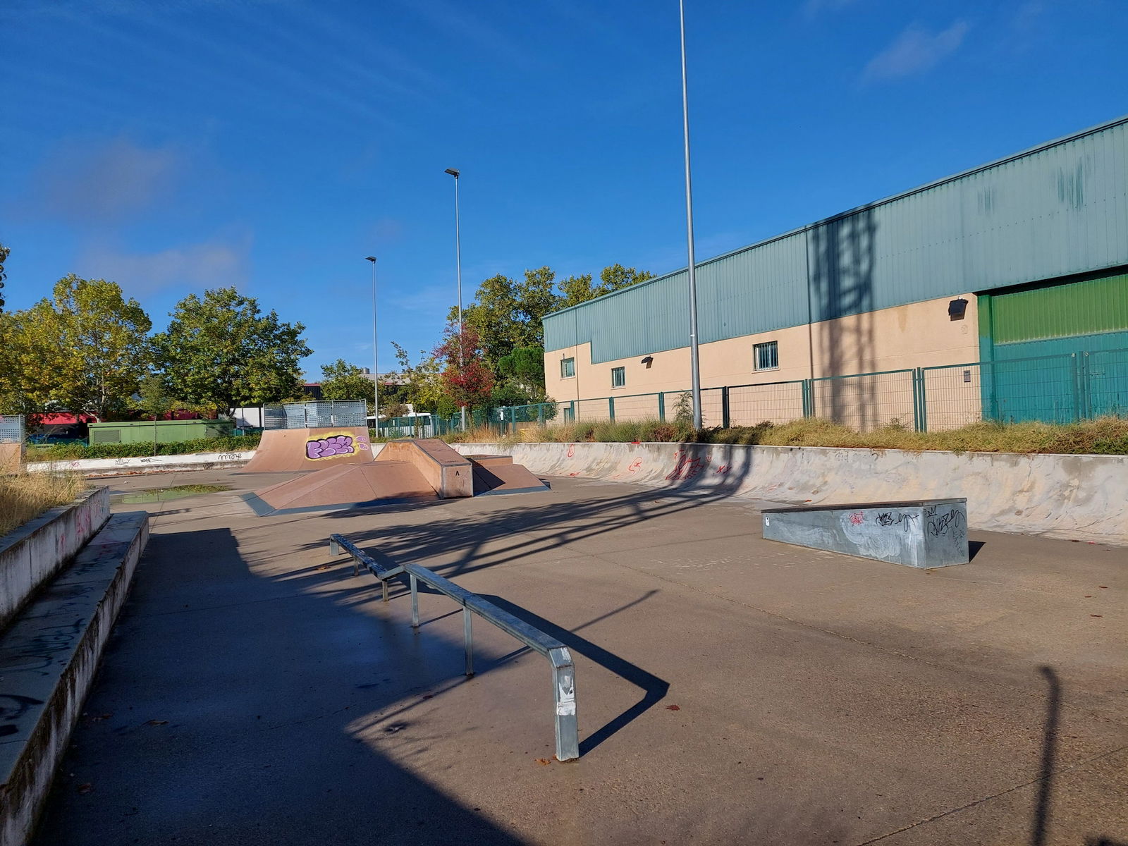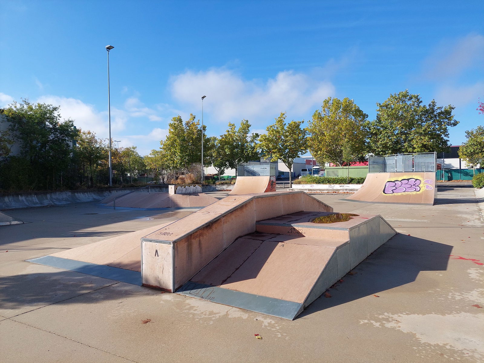 Navalcarnero skatepark is a wooden skatepark featuring several funboxes, a miniramp, rails and ramps.