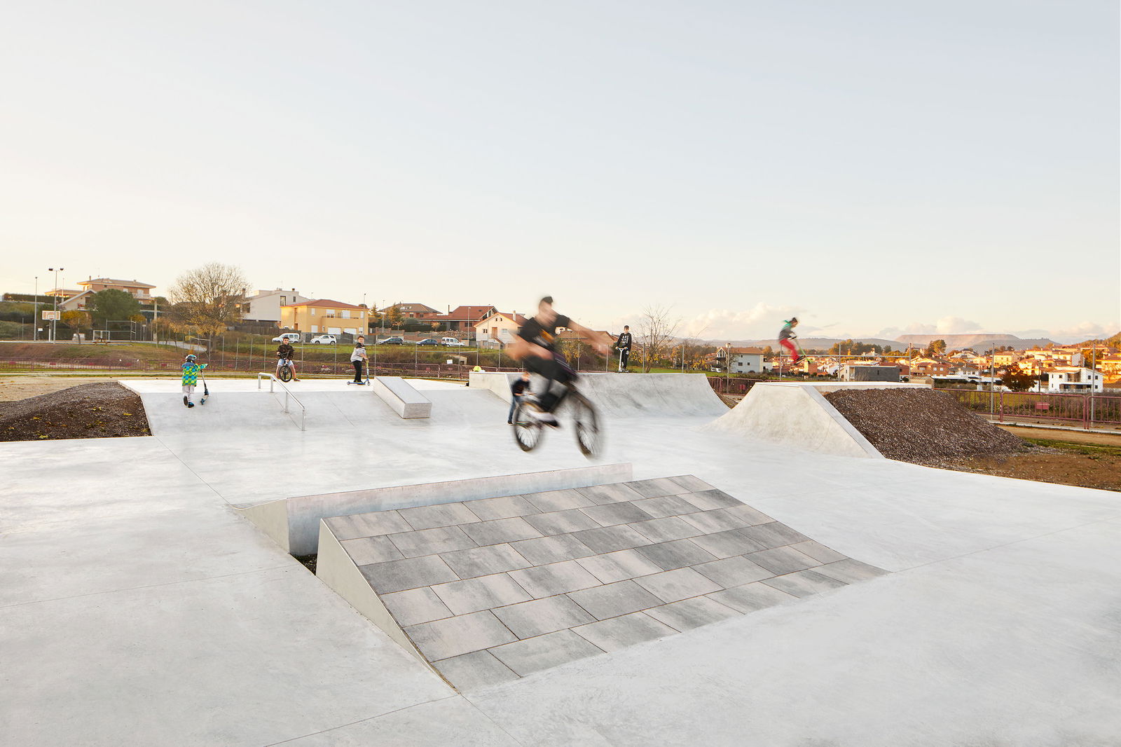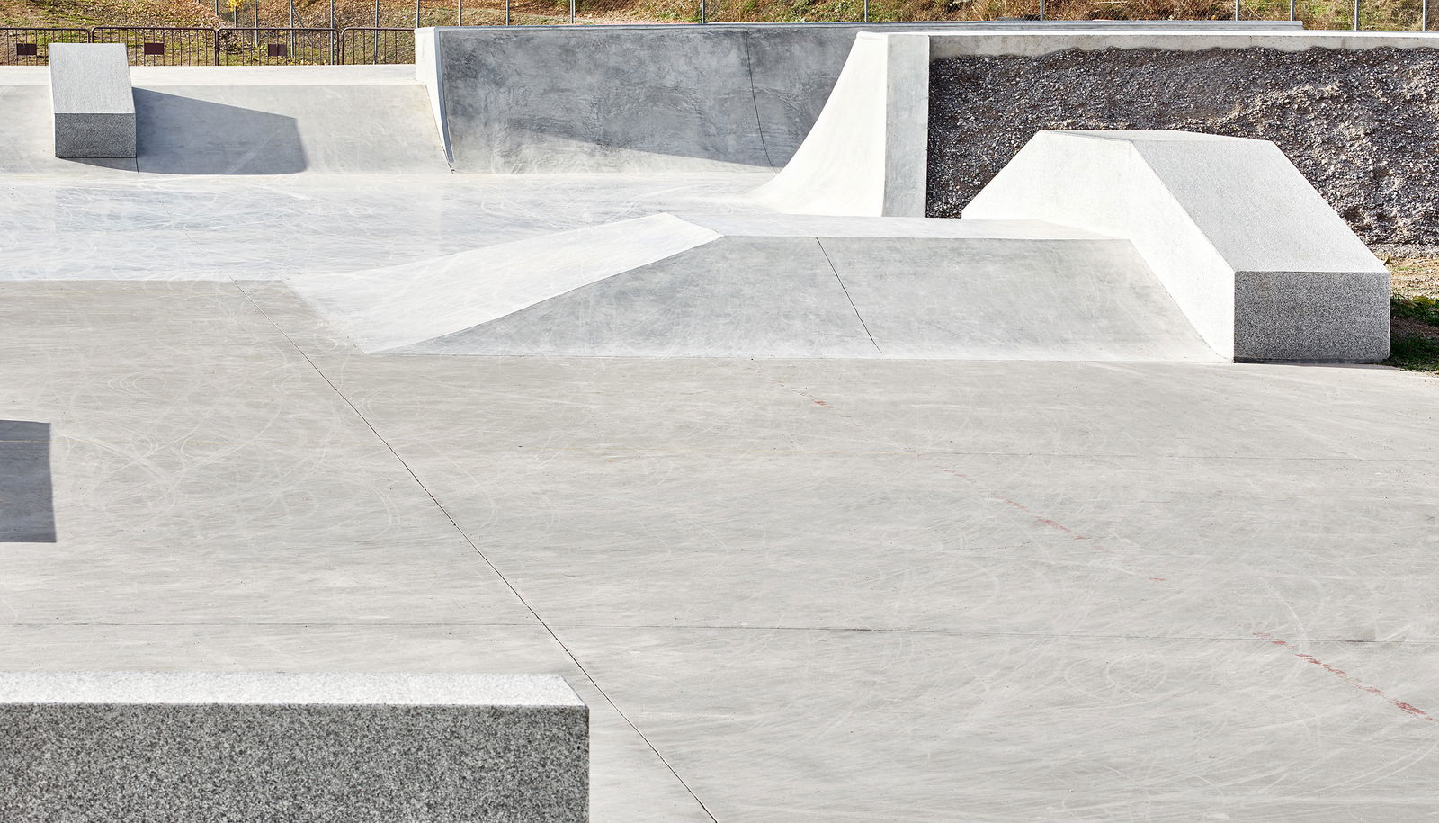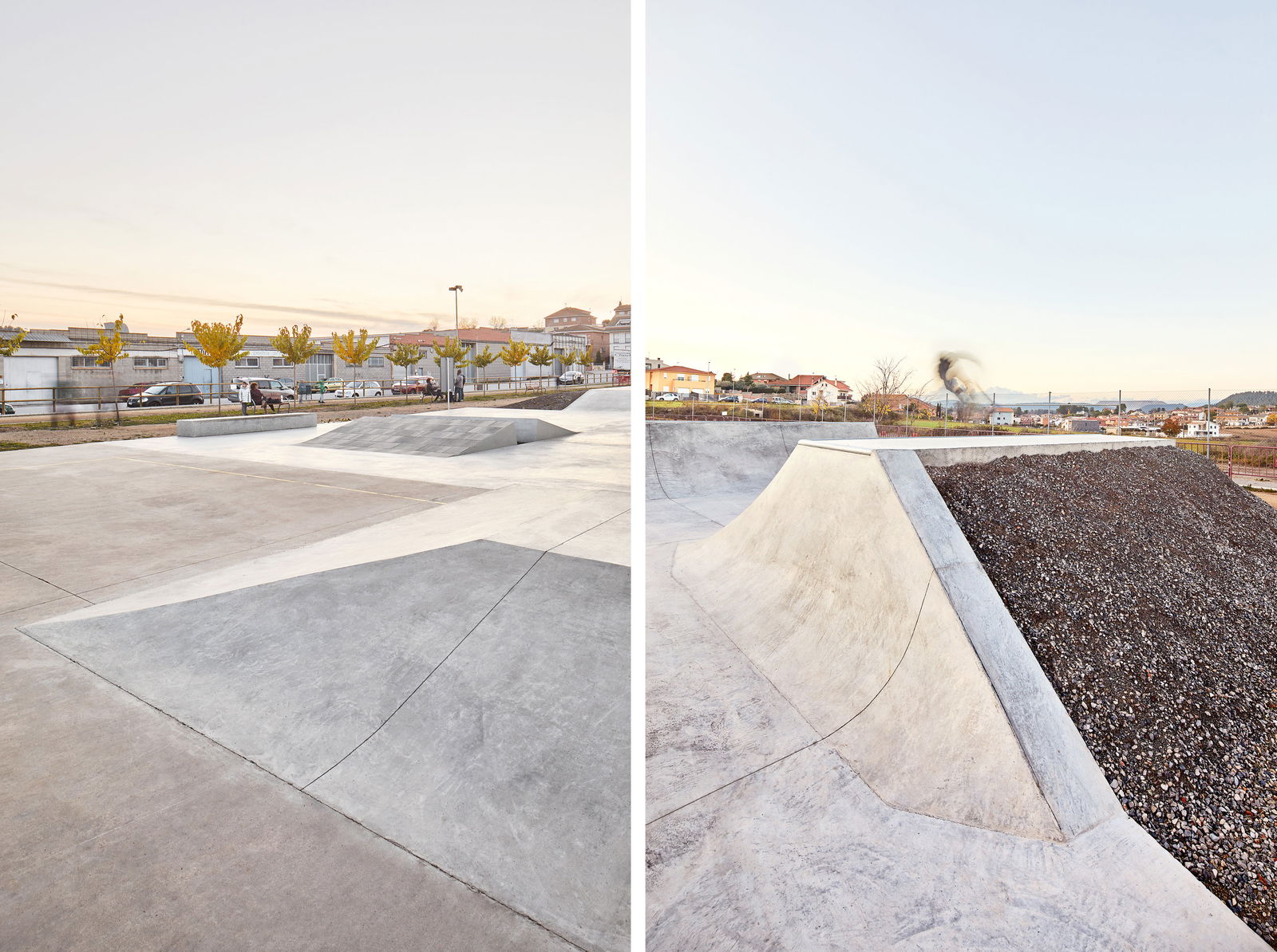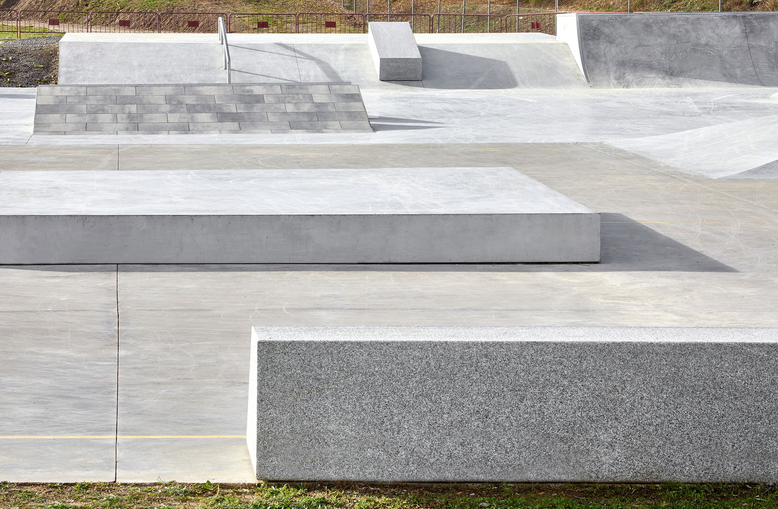 The facility serves dual purposes, functioning as both a skatepark and a community gathering space, with a higher level used for occasional events and concerts, including the annual "Rock’n’Board" skate festival. It was constructed using standard public space materials, like granite ledges, and includes greenery and trees to blend into its industrial surroundings.