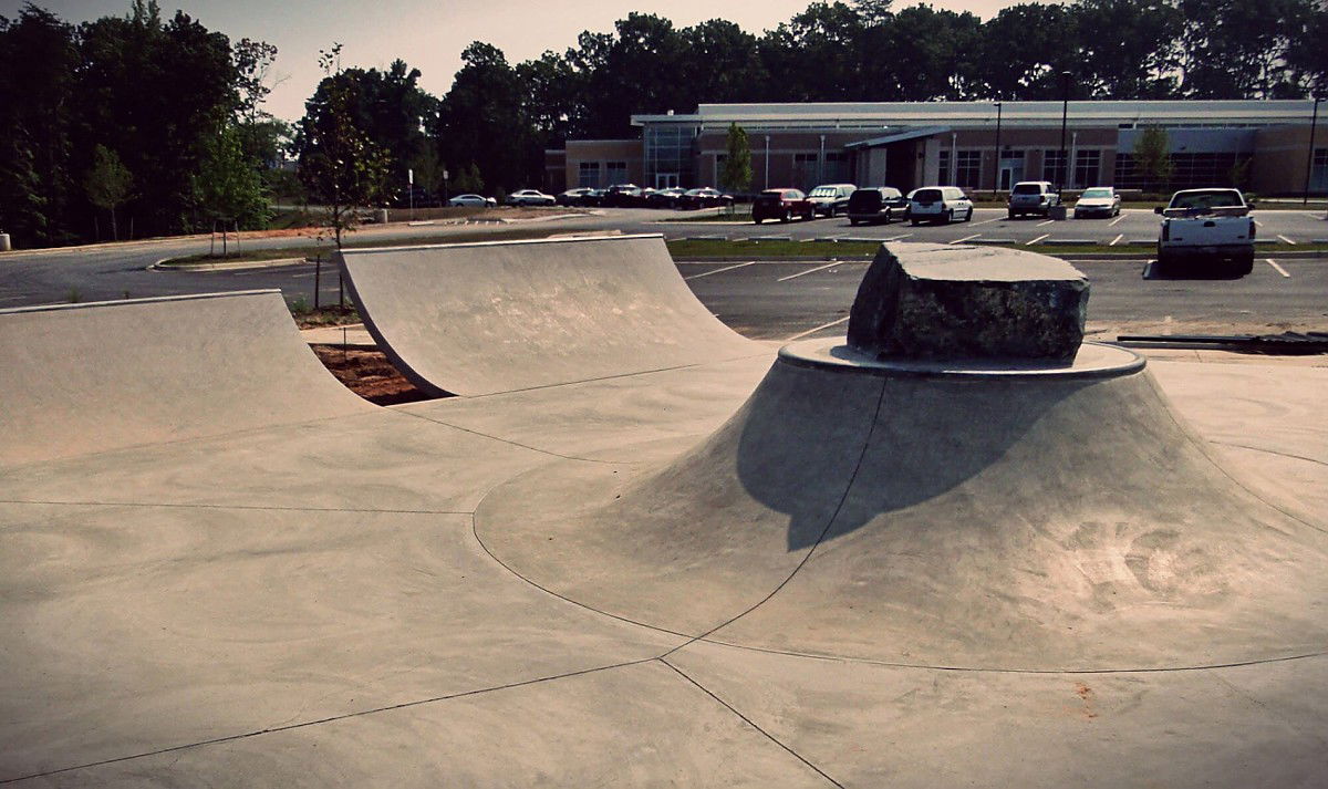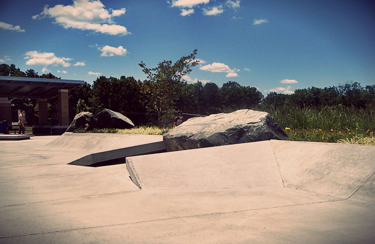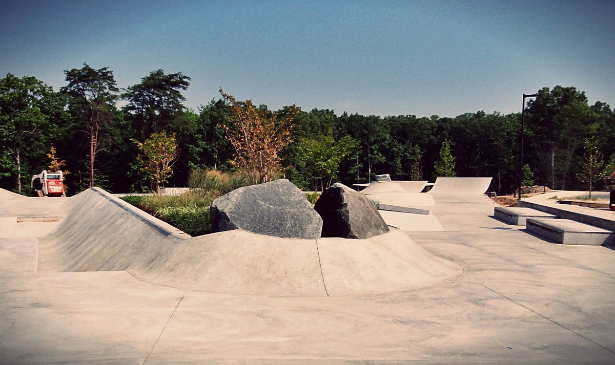 This skatepark was constructed to accommodate skaters of all levels, featuring a 4-6 foot bowl, various ledge combinations, and three large skateable boulders. These features make it versatile for both street and transition skaters. The park's aesthetic also reflects its broader role as a neighborhood centerpiece, offering a sculptural quality that appeals to non-skaters as well.