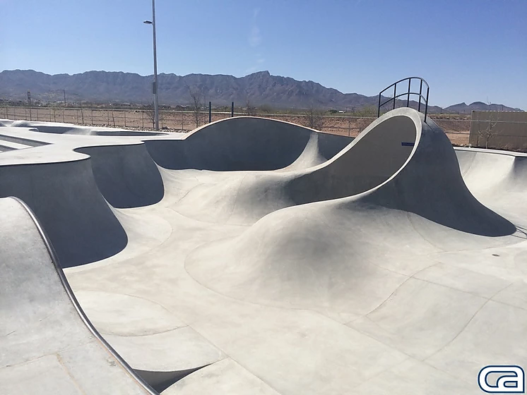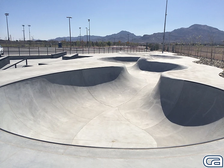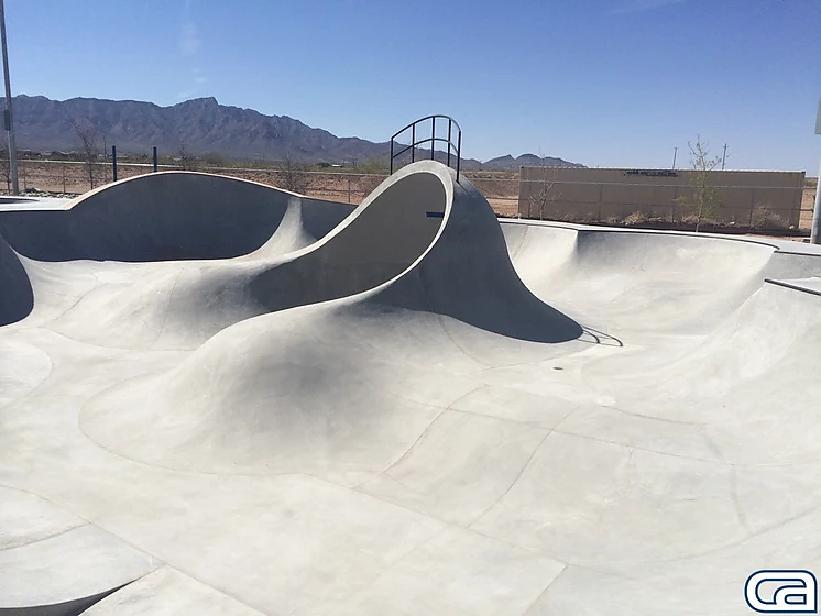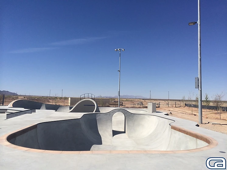 The Northeast Regional Skatepark in El Paso, Texas, is the city's largest skatepark, covering 25,000 square feet. Opened in 2014, the park was designed by SITE Design Group and built by California Skateparks. The park features a wide range of obstacles catering to both street and transition skaters, including two large bowls, a snake run, a flow course with a cradle, and an extensive street plaza. The plaza offers elements such as handrails, ledges, stairs, hip ramps, grind rails, and manual pads, providing ample space for skaters of all levels to practice and perform tricks.