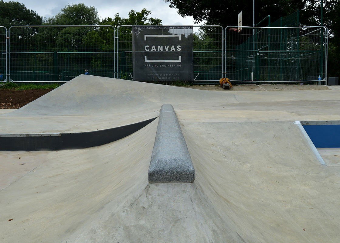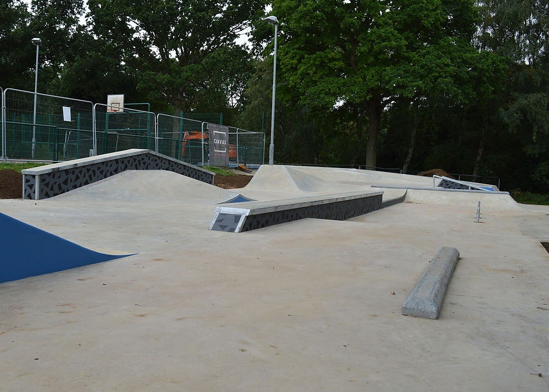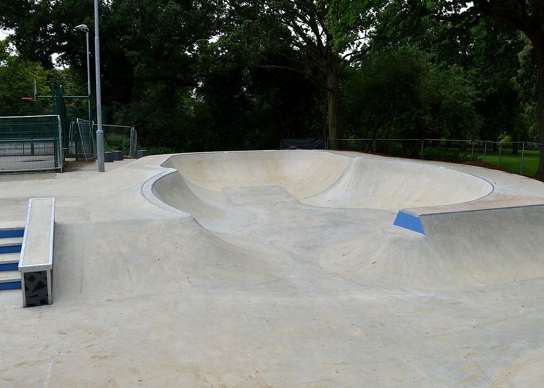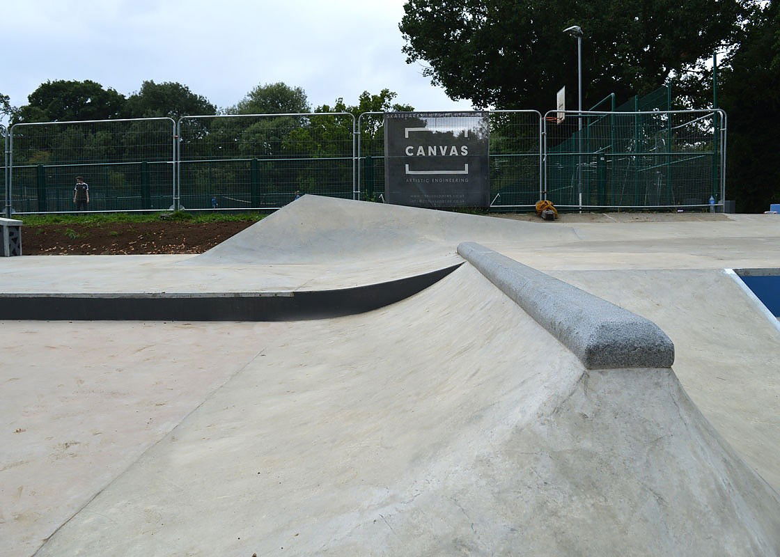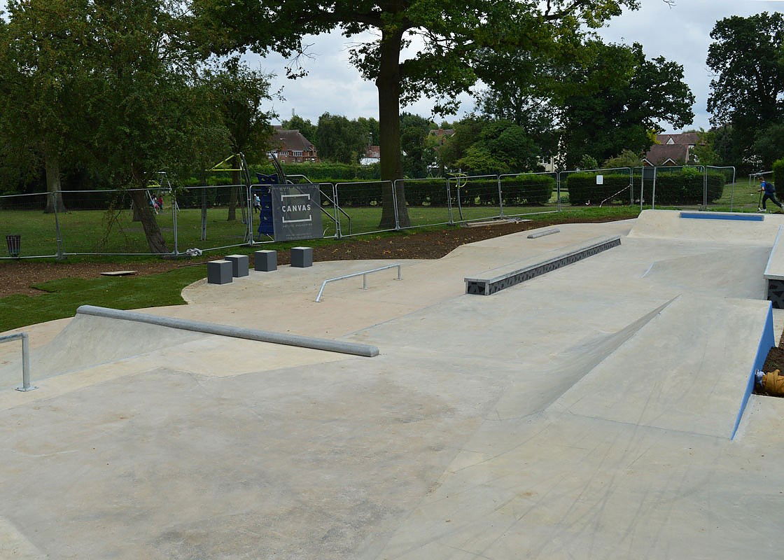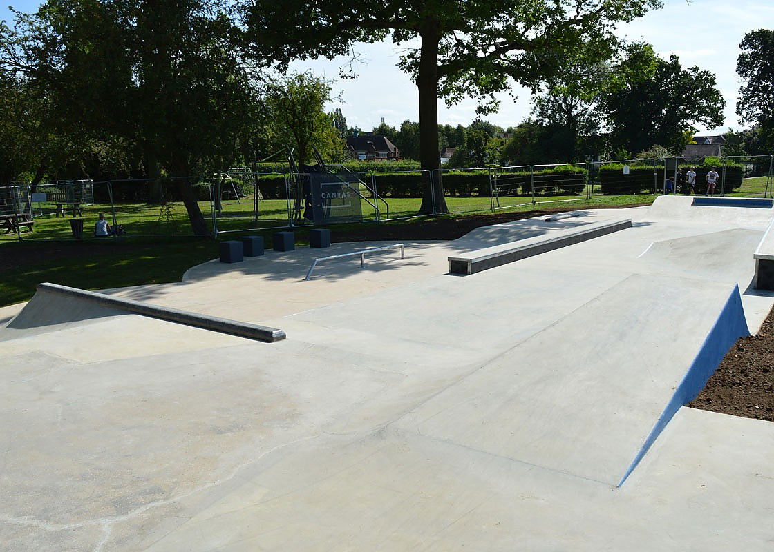 Norton Common Skatepark in Letchworth was built by Canvas Spaces and opened in August 2017. It features a wide range of concrete elements, including a clover-shaped bowl, roll-in ramps, half-pipe, grind rails, stairs, and a hip, offering a versatile experience for both beginners and experienced skaters. The skatepark was designed to be accessible to all abilities, with Barcelona-inspired features like banks and ledges.