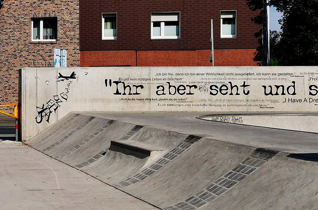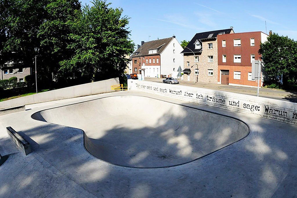 Oberhausen Skatepark consists of a concrete bowl surrounded by a couple of street obstacles. Built in 2013 by Yamato Living Ramps.