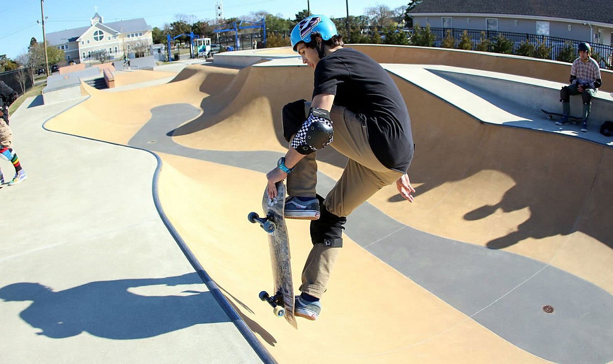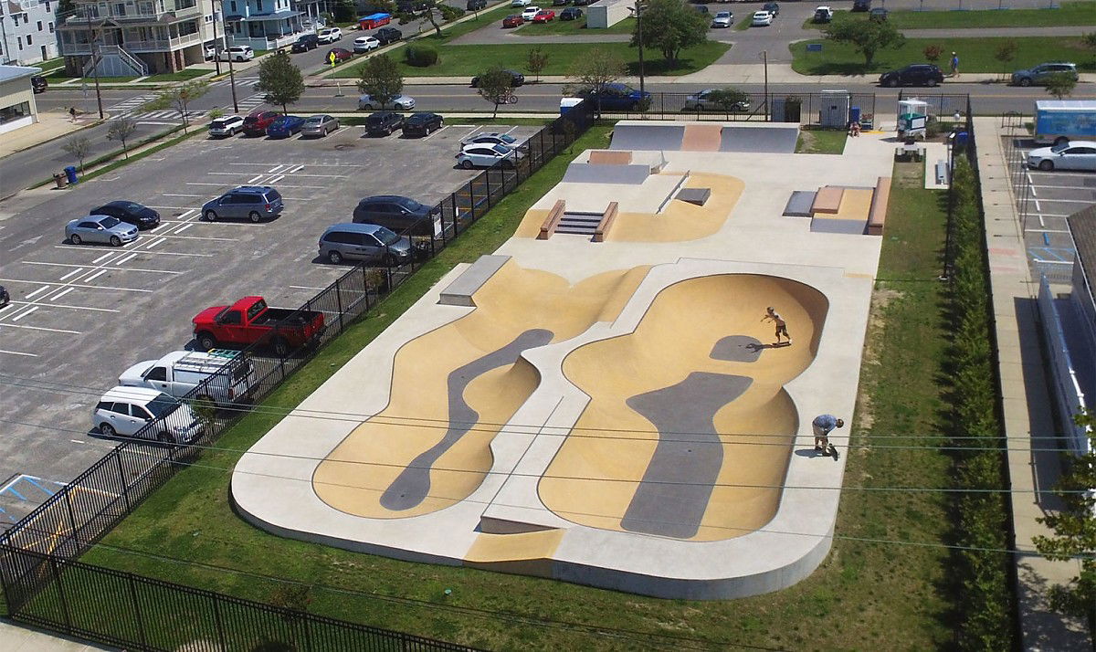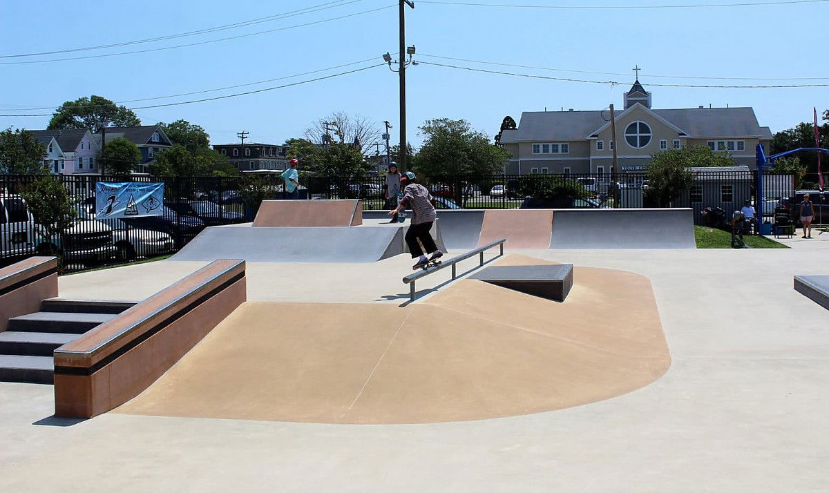 The 1114 m² Ocean City skatepark was designed and built by Spohn Ranch in 2015.