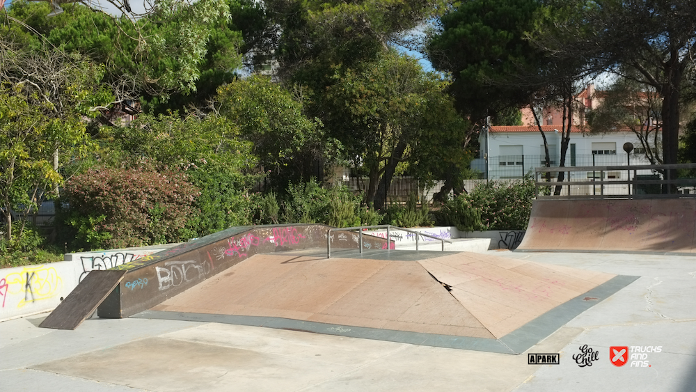 Located next to the Centro Social Paroquial de Nova Oeiras you will find Oeiras skatepark, aka CJ skatepark, a wooden park, built in 2013. The park was last renovated in 2020. The skatepark is made up of a fun miniramp and street section where it's easy to get speed. Definitely worth a visit. Oeiras skatepark is located in the Jardim de Santo António de Nova Oeiras (Alameda Conde Oeiras).