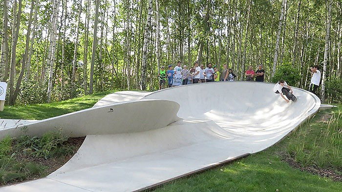 Oelsnitz Skatepark is a concrete snakerun with bumps, waves and banks, a ledge and a manual pad. Built by X-move in 2015.