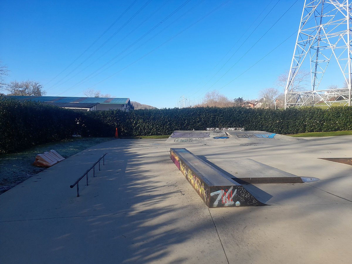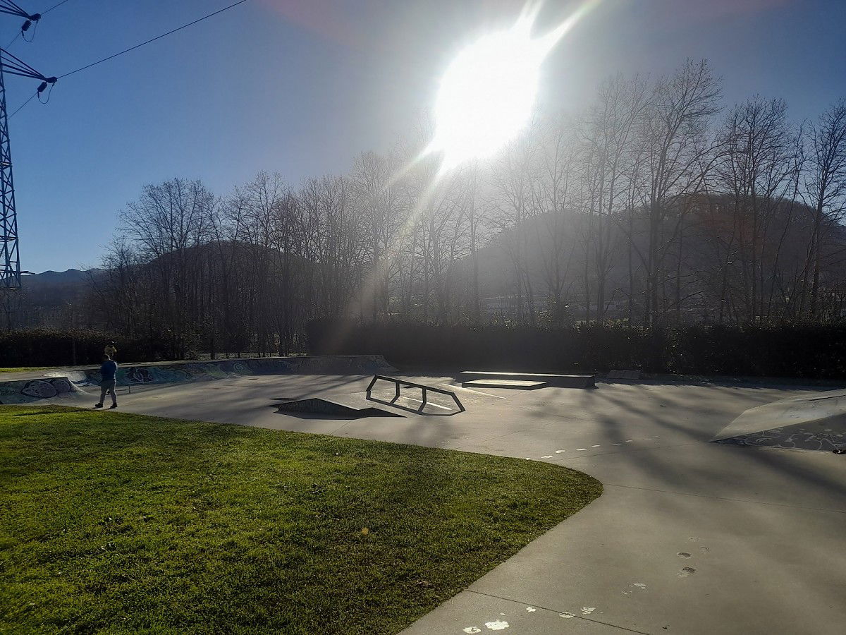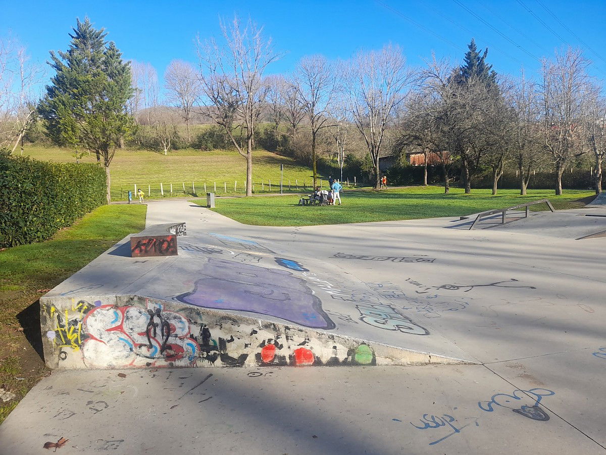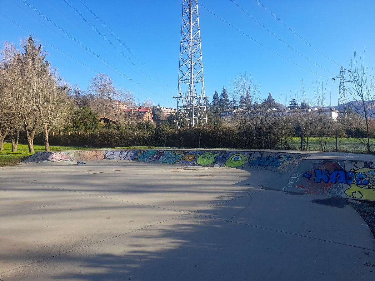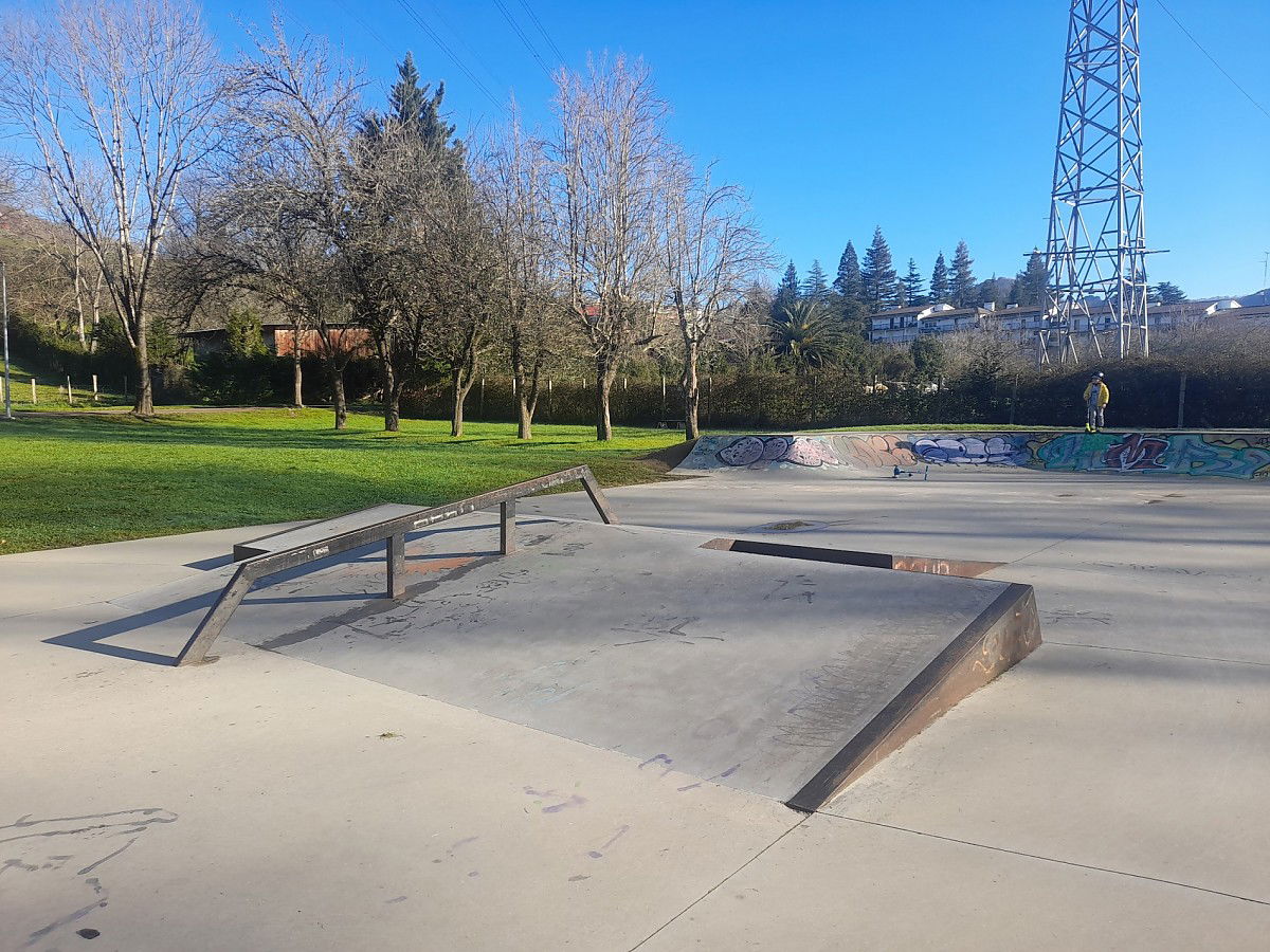 Oiartzun skatepark is made up of a concrete back and forth run with a quarter pipe and bank on the sides of a funbox and several other obstacles.