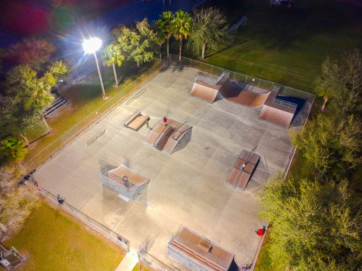 Okeechobee skatepark is made up of several back and forth runs with quarter pipes and banks on the sides of a funbox. The skatepark also features a miniramp.