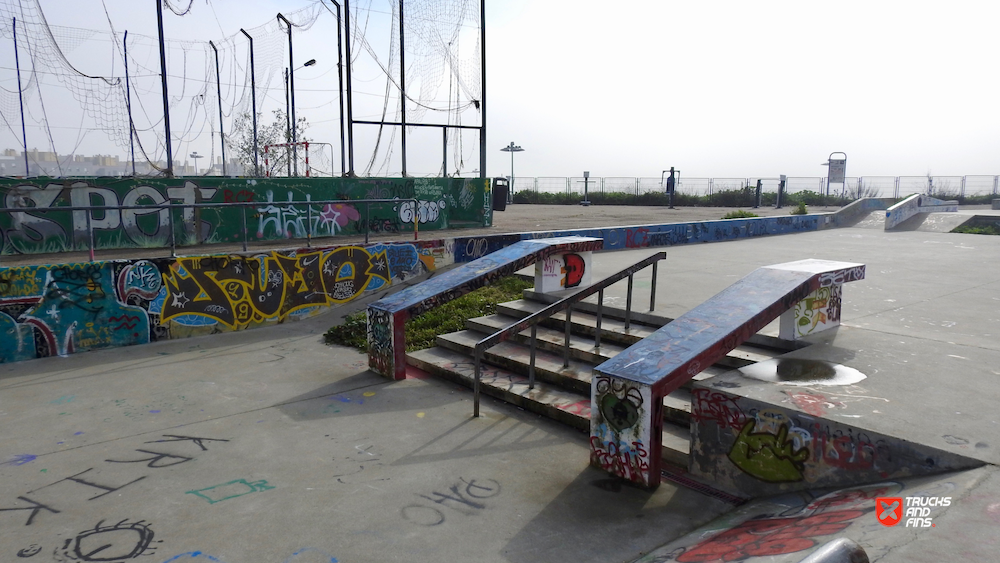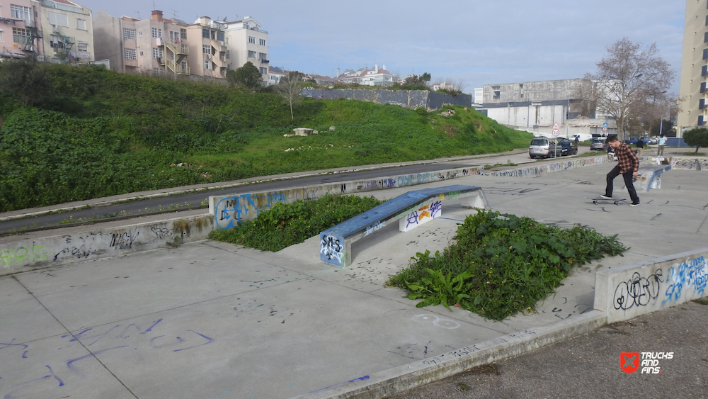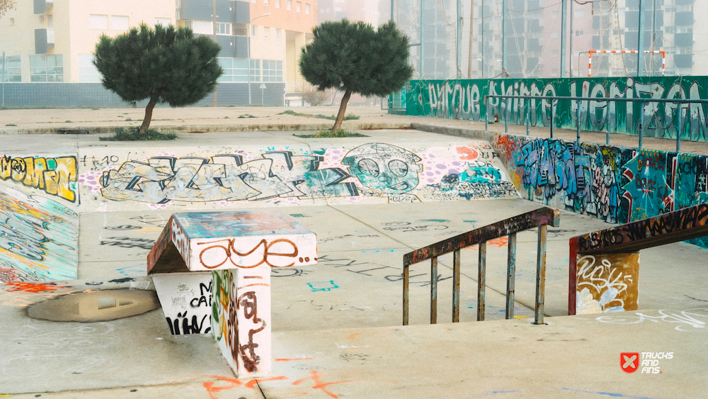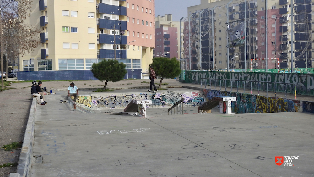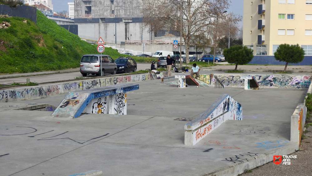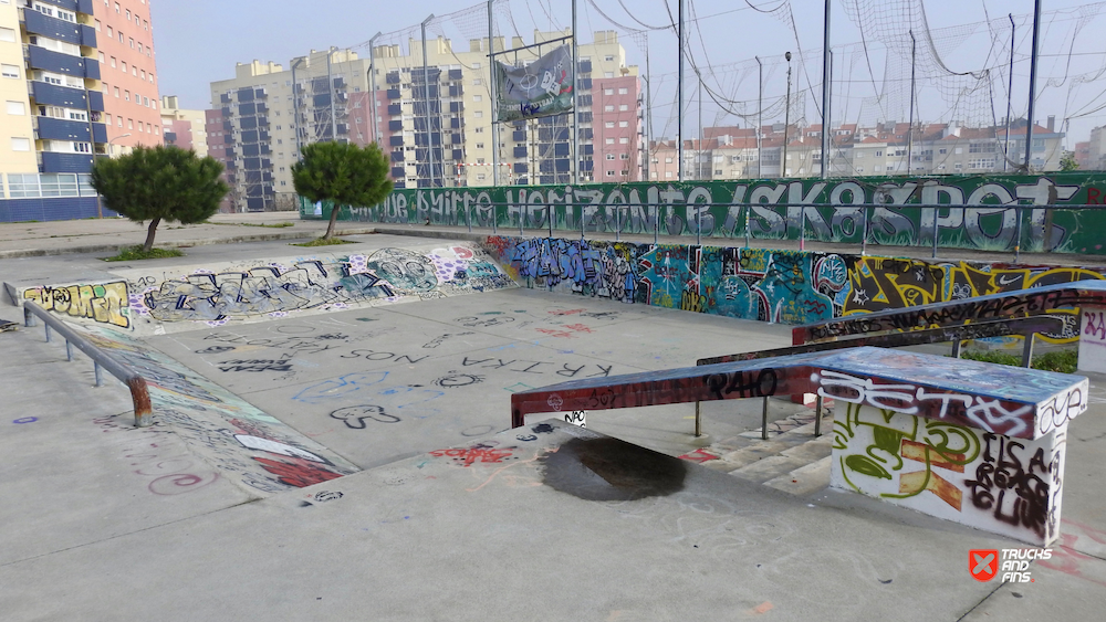 Olaias skatepark, aka Skate Spot Bairro do Horizonte, is a concrete street focused park made up of several basic obstacles in a back and forth setup. The park has some challenging ledges. Olaias skatepark is located near Qta. Lavrado bus stop (37B).