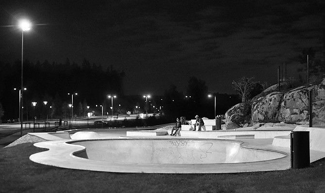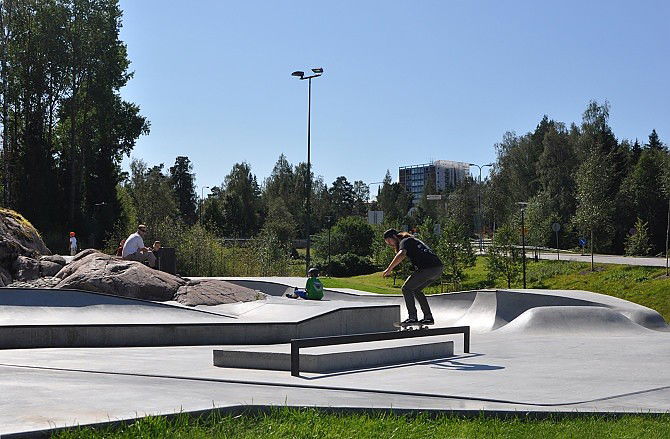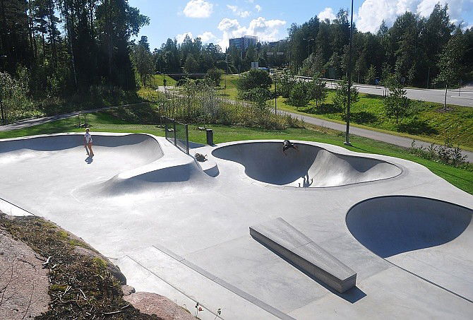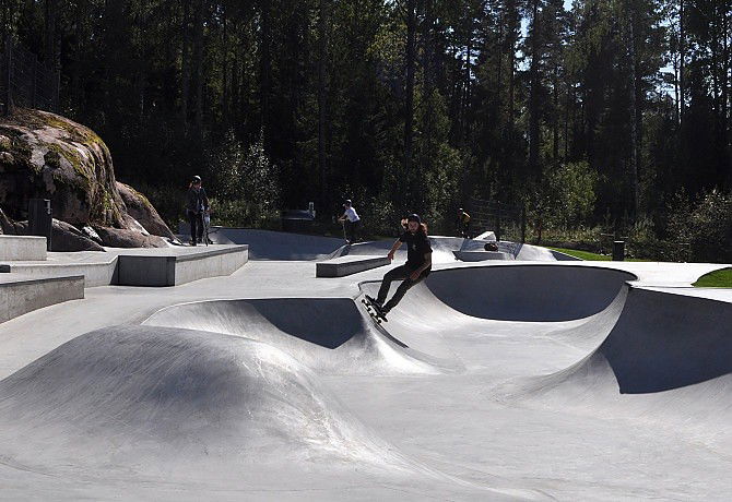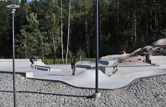 The 1600 square Olarin skatepark is a concrete park designed by Janne Saario Landscape Architecture and built by Concrete Proof and Beaver Concrete in 2014.