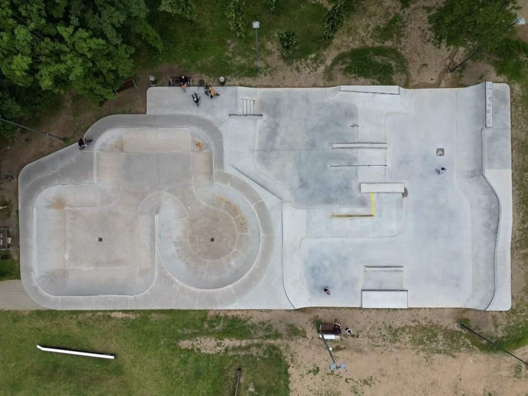Olsztyn skatepark features a concrete bowl with spine and a street section.