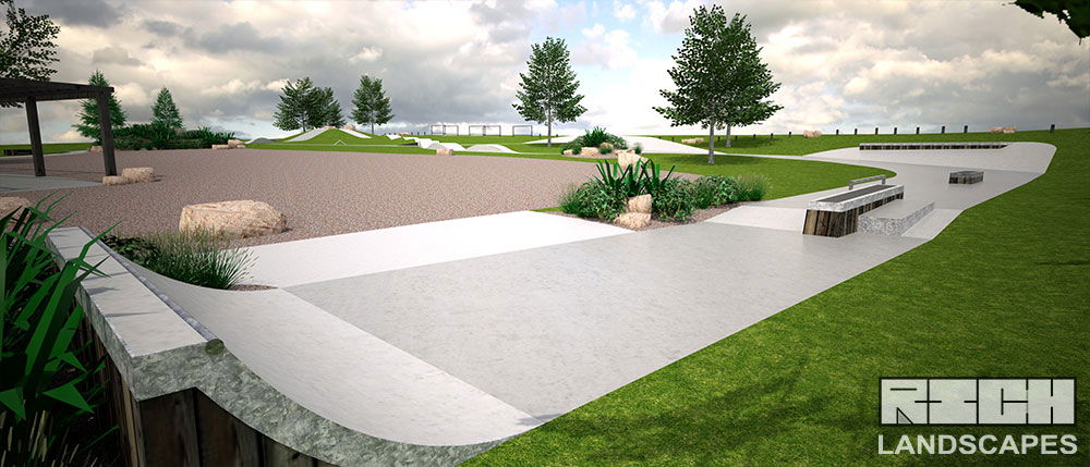 Omokoroa skatepark features a concrete pumptrack and several street obstacles.