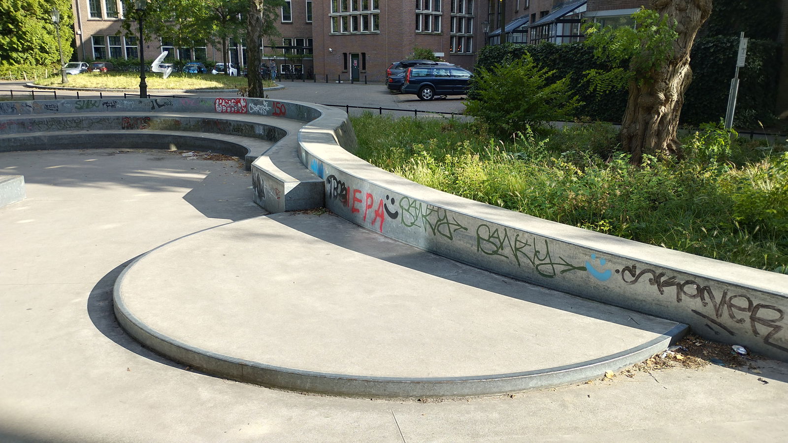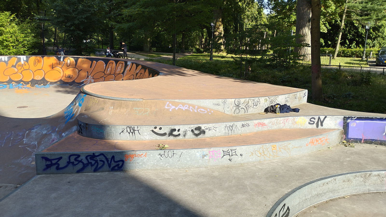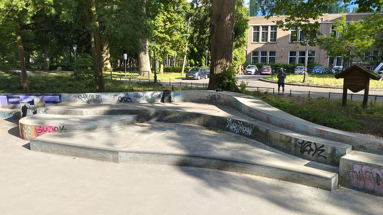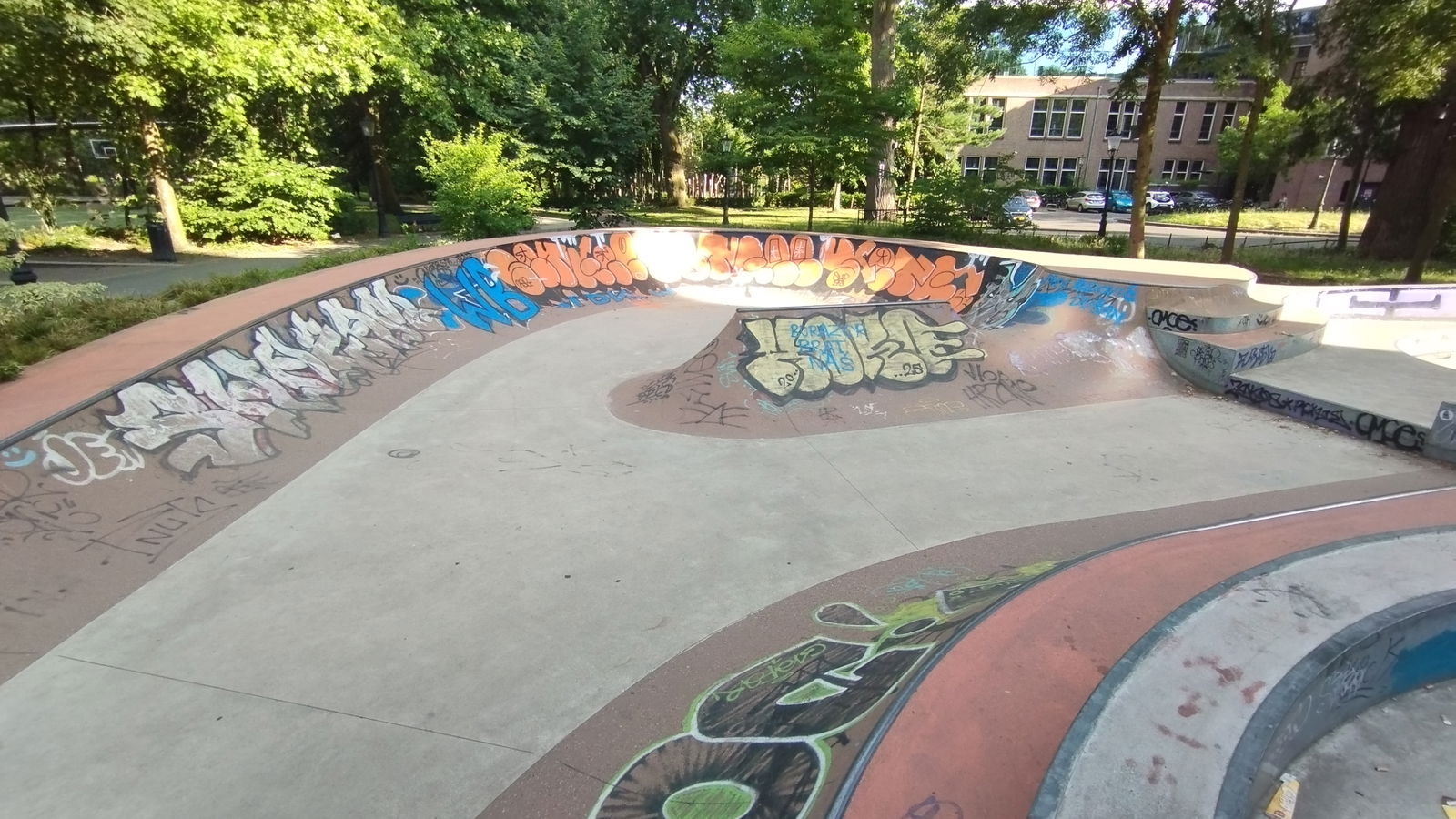 The Oosterpark Skatepark, located in the heart of Oosterpark in Amsterdam, is a well-known spot for skaters of various skill levels. This park features unique obstacles, including a mini bowl with a spine, stairs, and several street-style features, offering a diverse skating experience. The skatepark is situated within the larger green area of Oosterpark, allowing skaters to enjoy the natural surroundings as part of their skateboarding sessions.