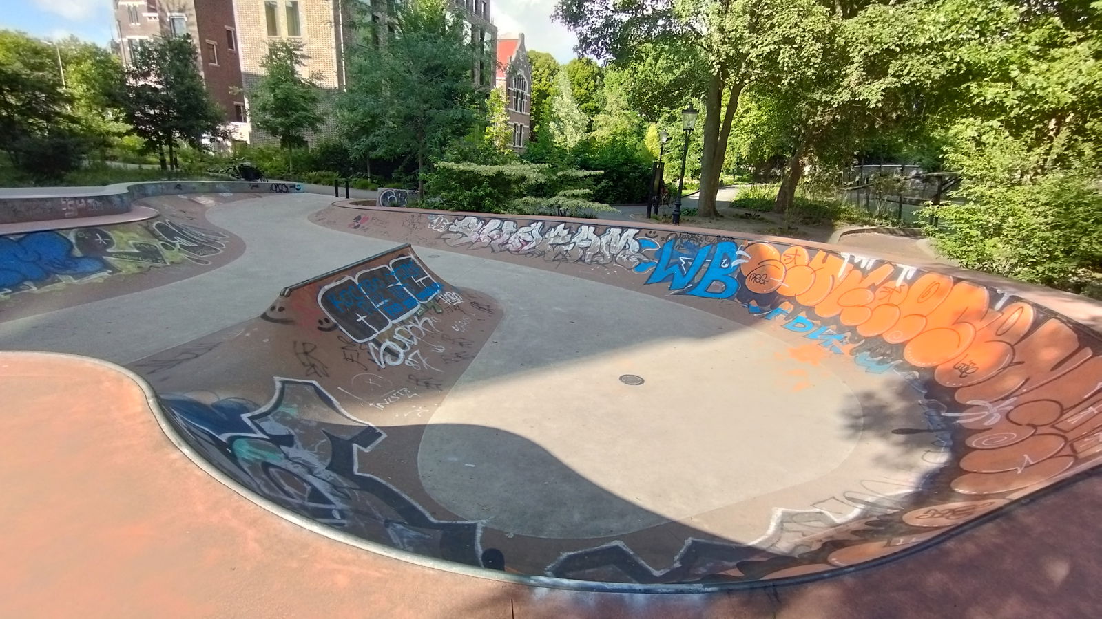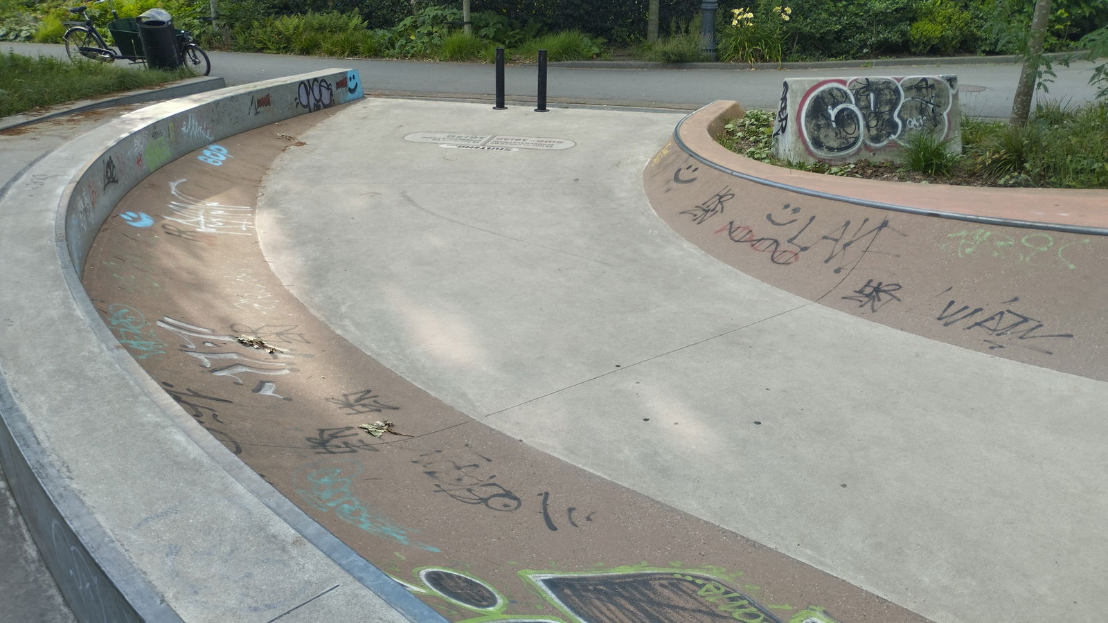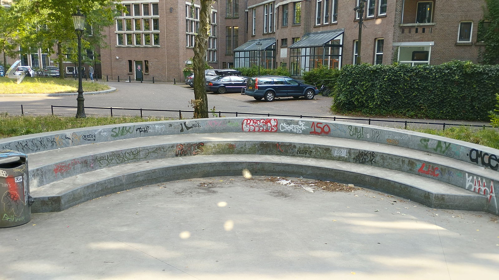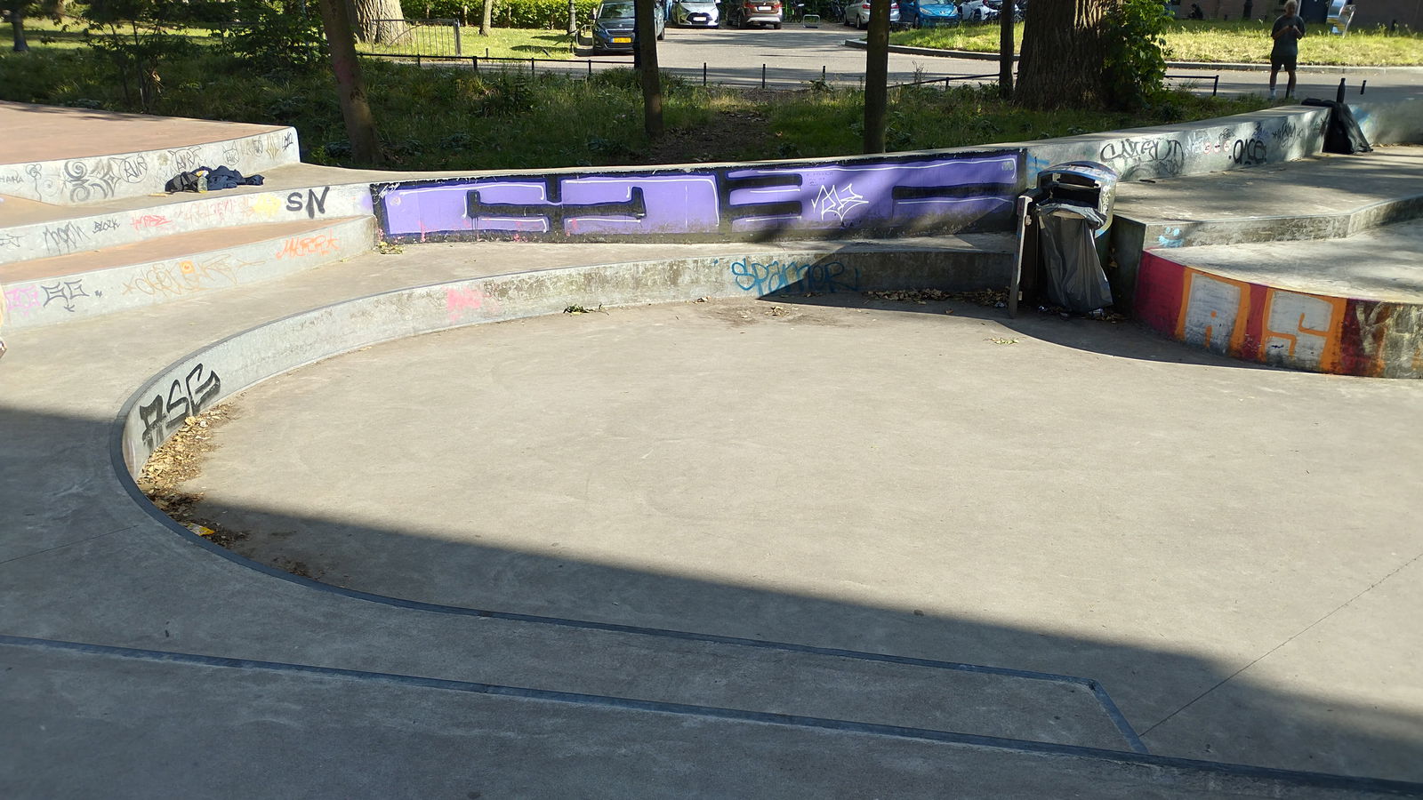 The Oosterpark Skatepark, located in the heart of Oosterpark in Amsterdam, is a well-known spot for skaters of various skill levels. This park features unique obstacles, including a mini bowl with a spine, stairs, and several street-style features, offering a diverse skating experience. The skatepark is situated within the larger green area of Oosterpark, allowing skaters to enjoy the natural surroundings as part of their skateboarding sessions.