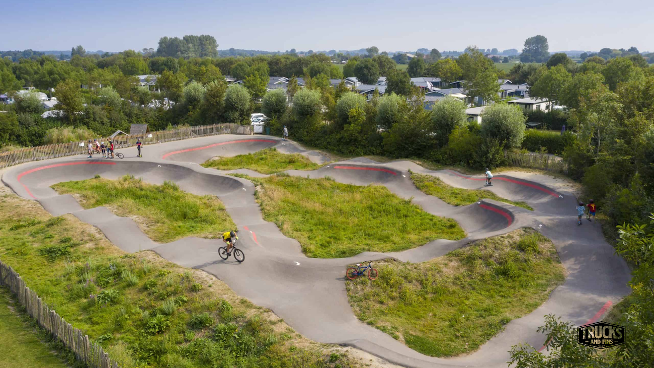 Oostkapelle skatepark consits of a 1400 m² asphalt pumptrack built by Velosolutions Netherlands. The pumptrack is located on a camp site.