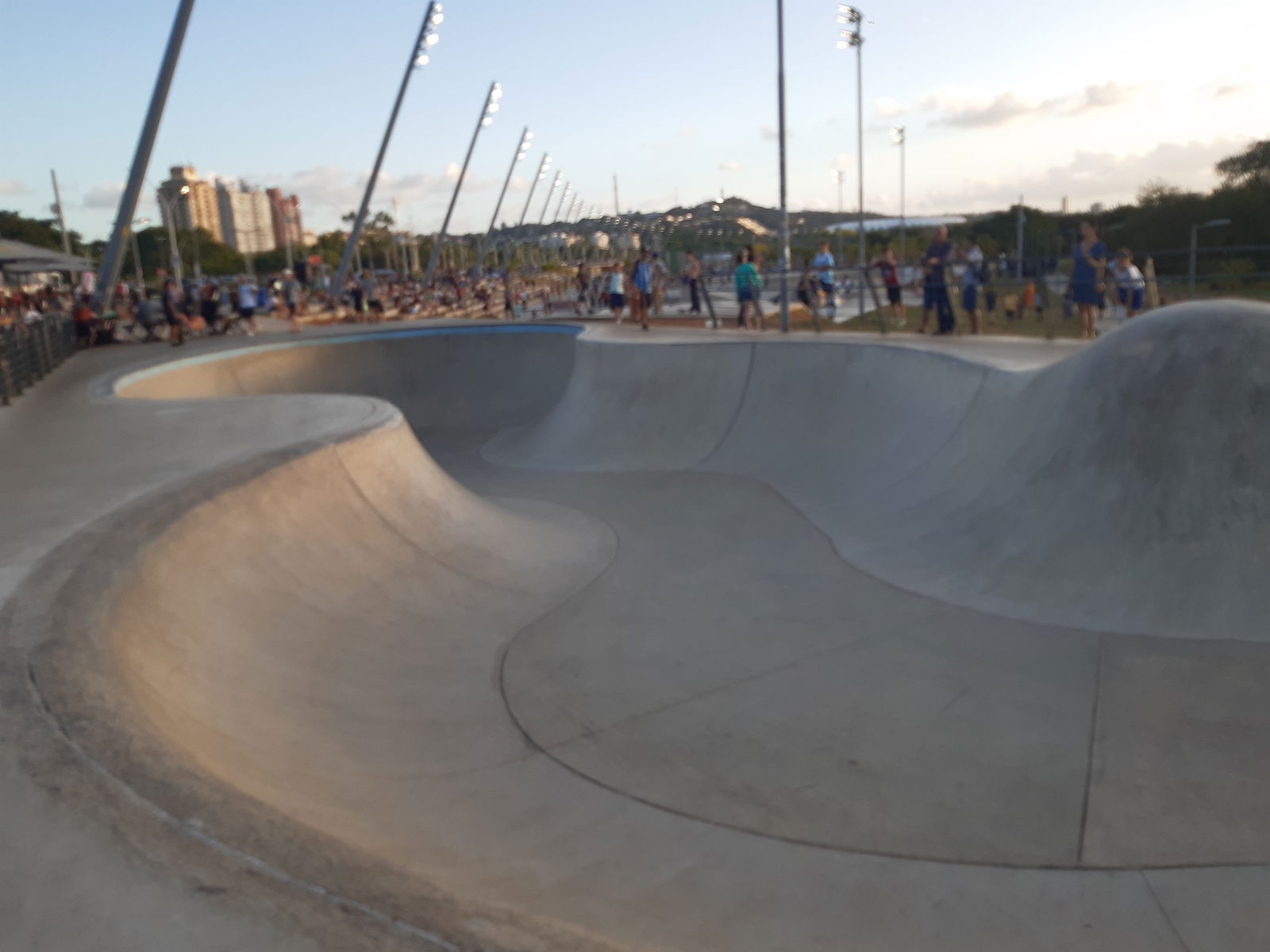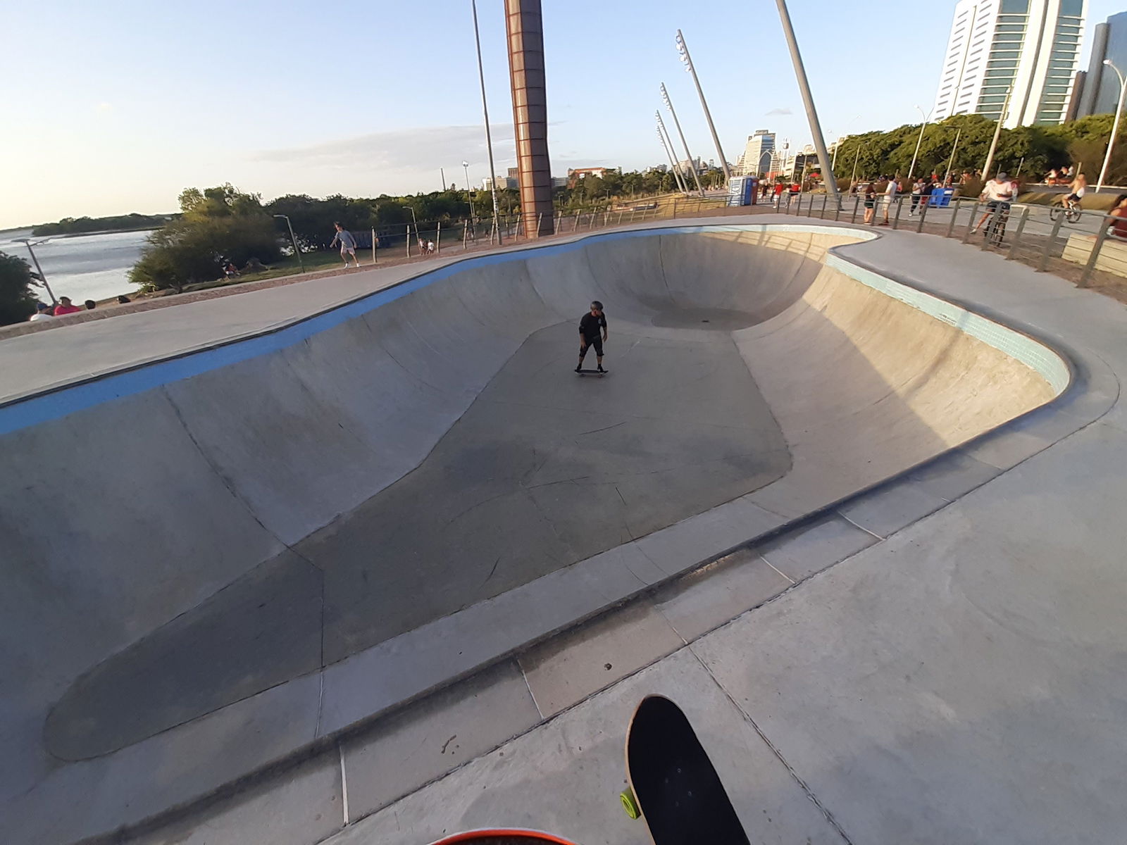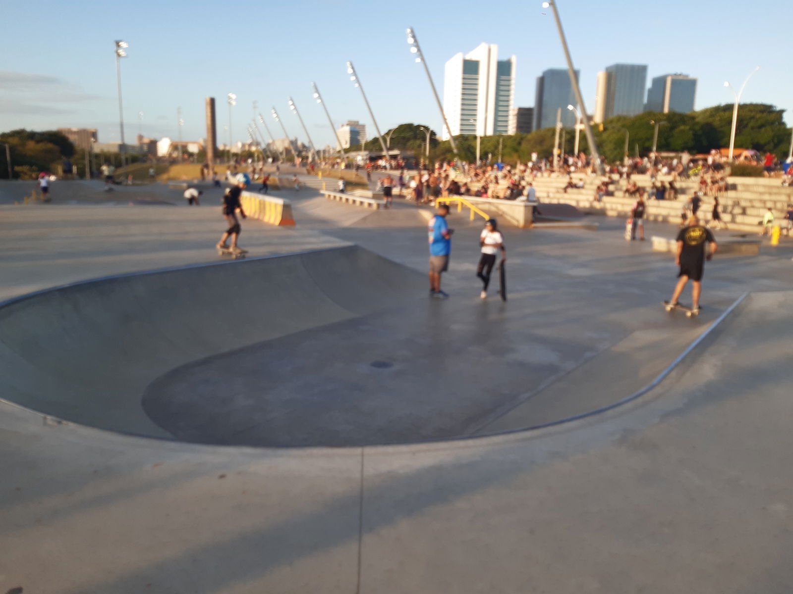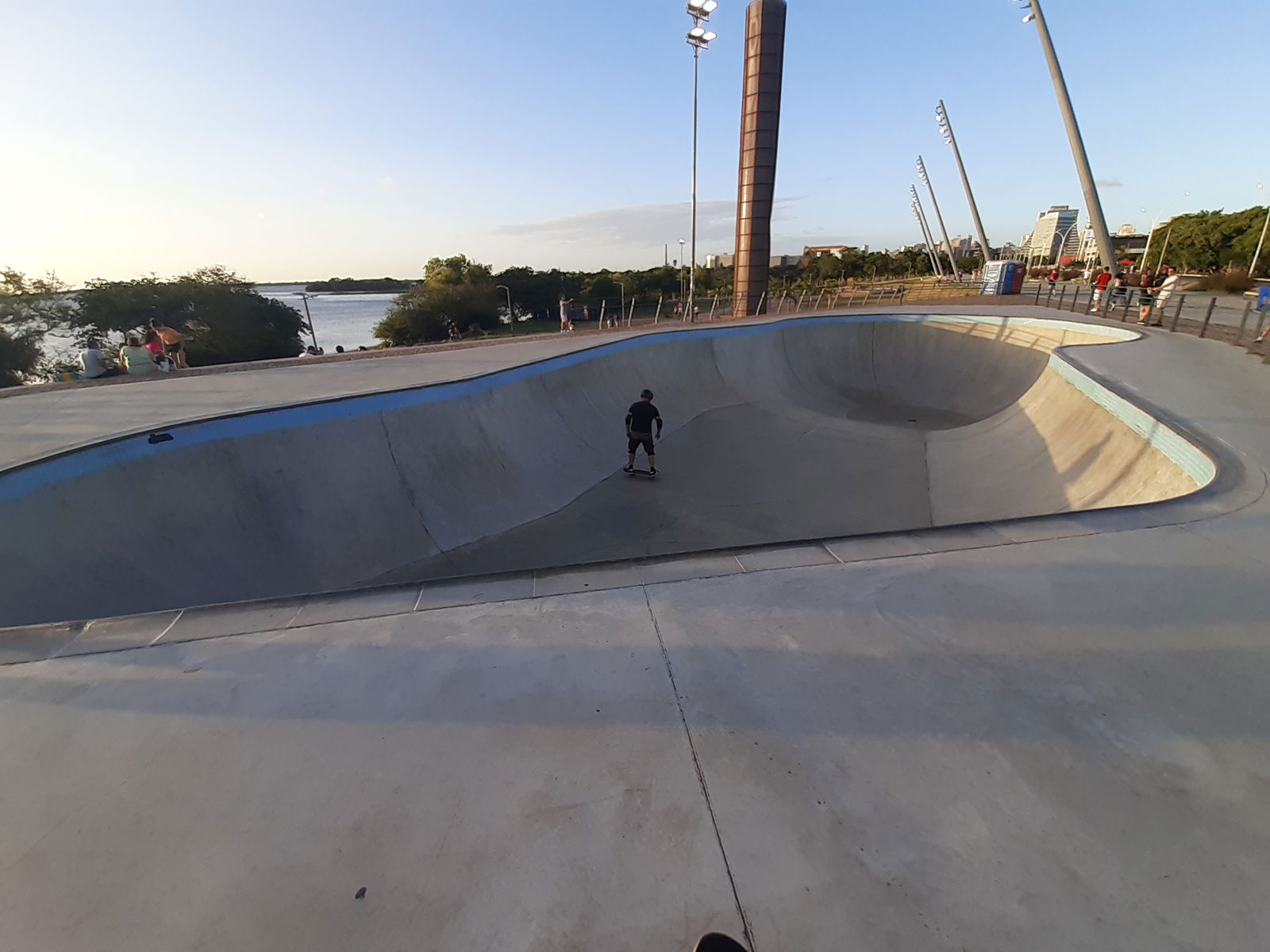 Orla do Guaíba skatepark is large concrete park featuring several bowls, a transition and a street section. The skatepark has lights.