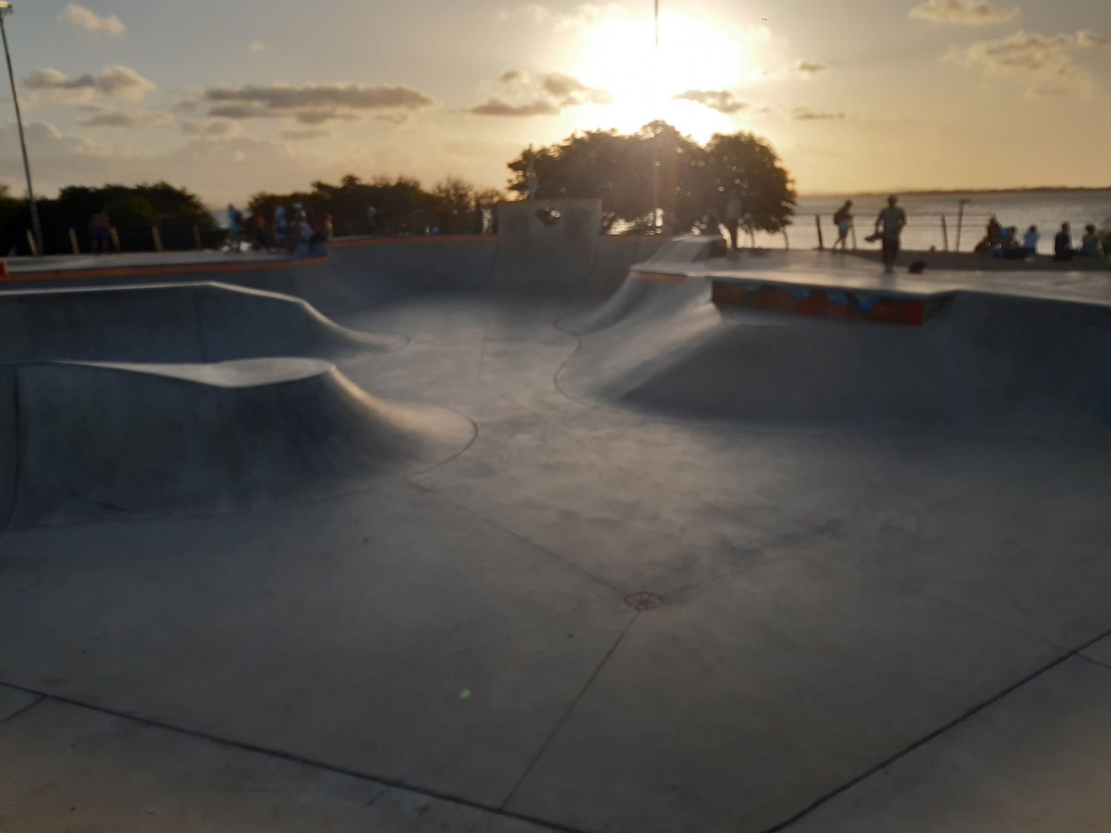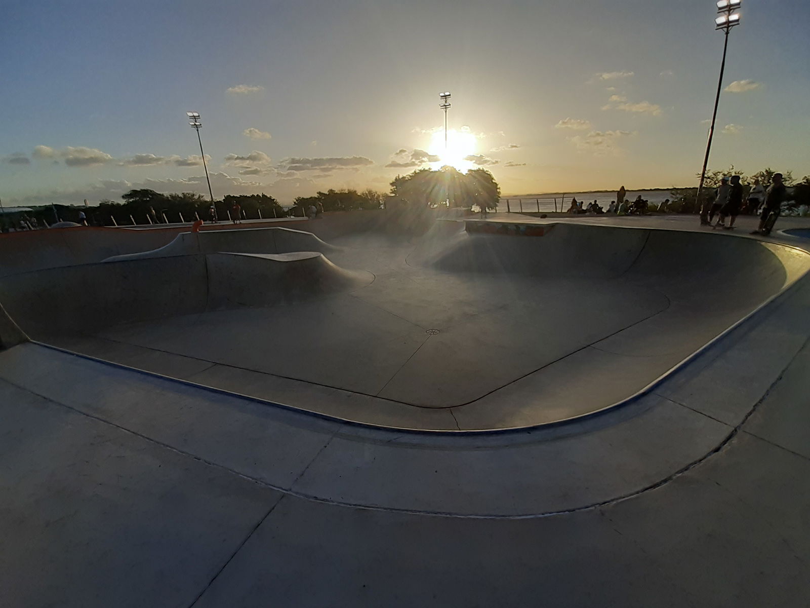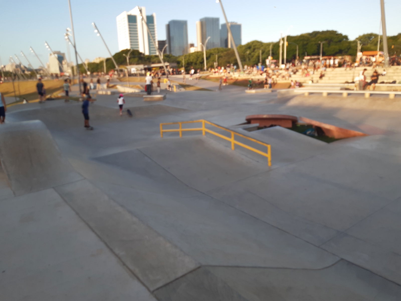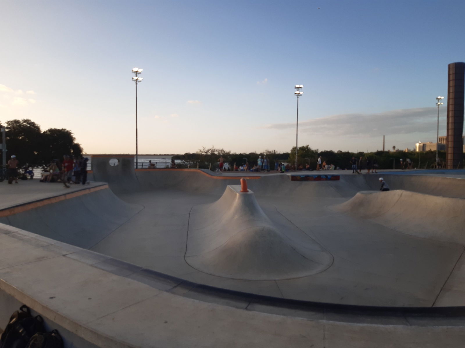 Orla do Guaíba skatepark is large concrete park featuring several bowls, a transition and a street section. The skatepark has lights.