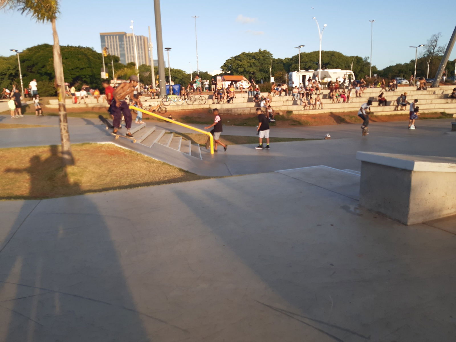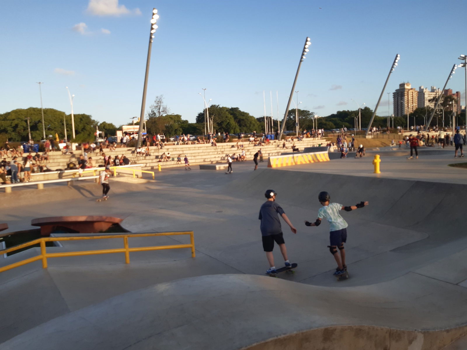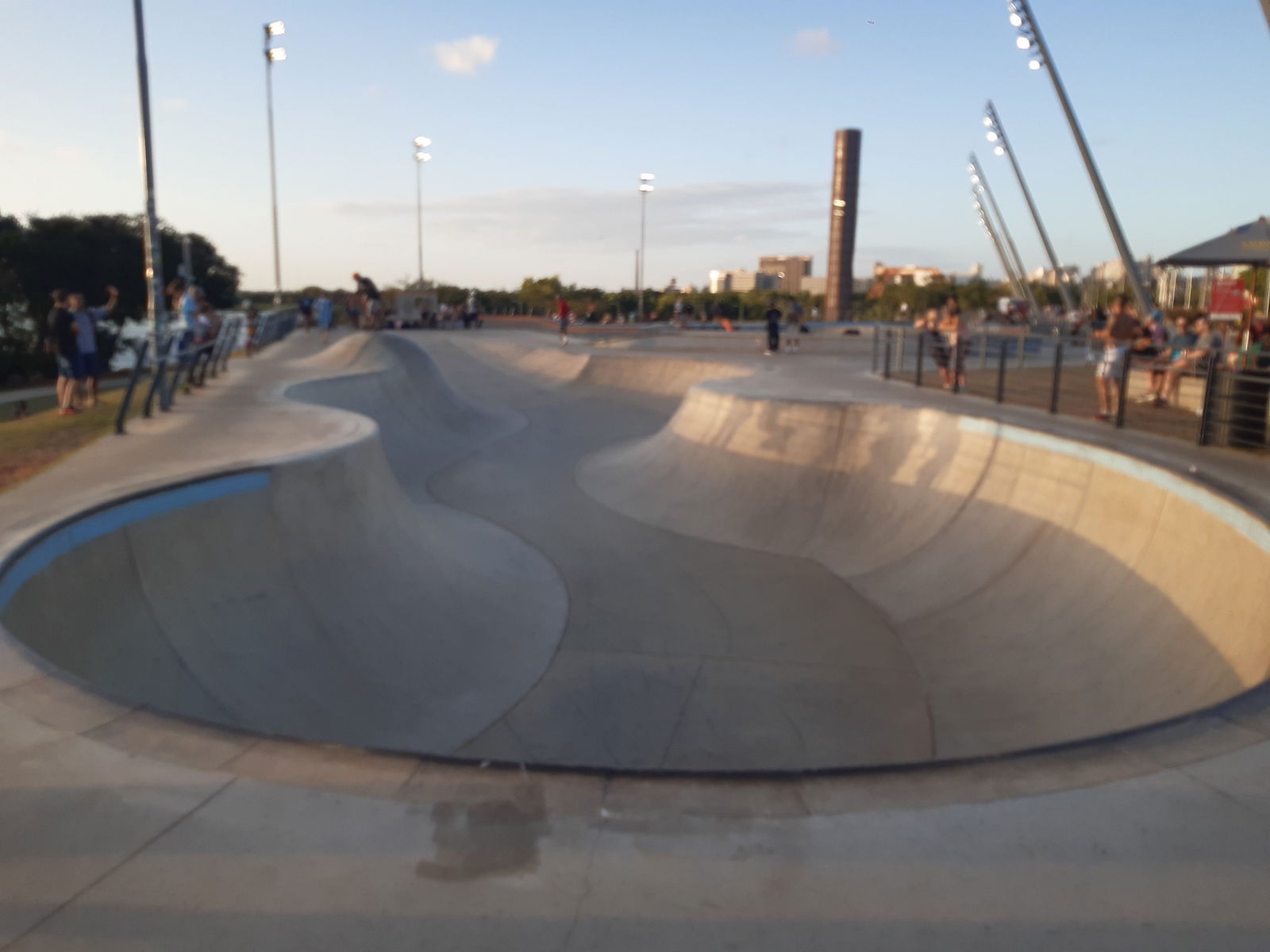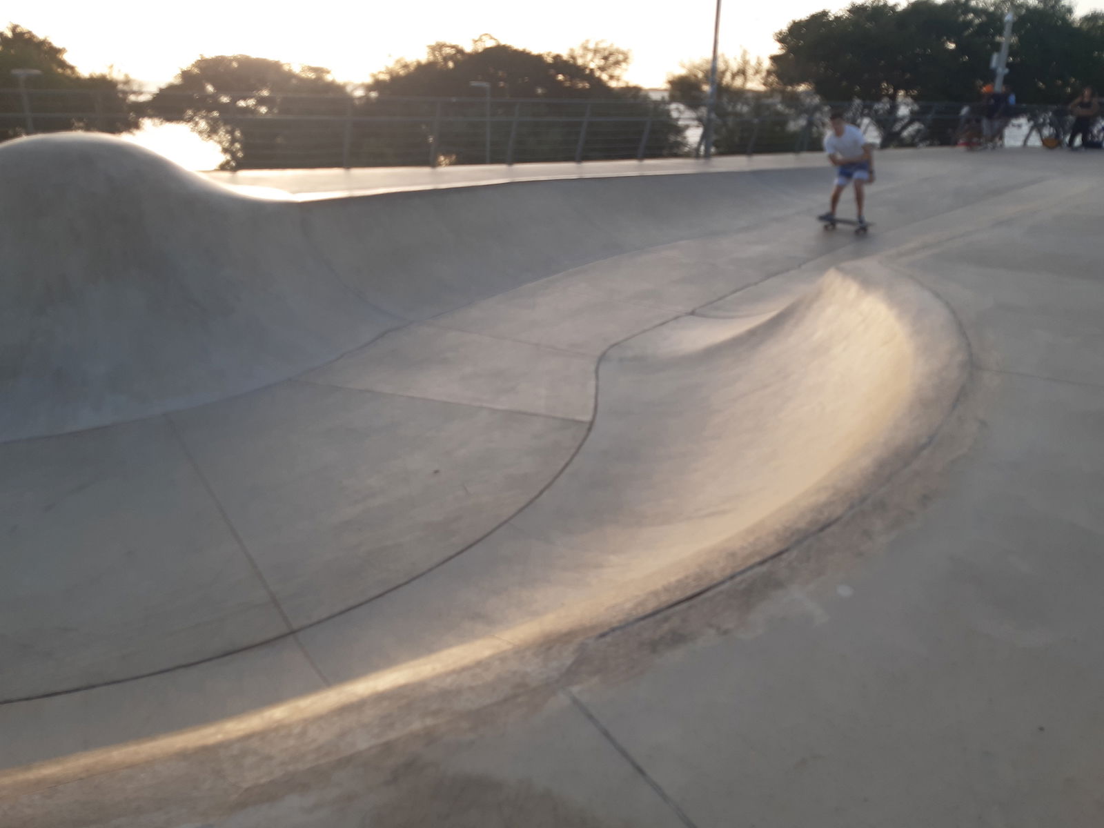 Orla do Guaíba skatepark is large concrete park featuring several bowls, a transition and a street section. The skatepark has lights.