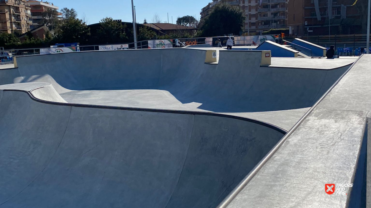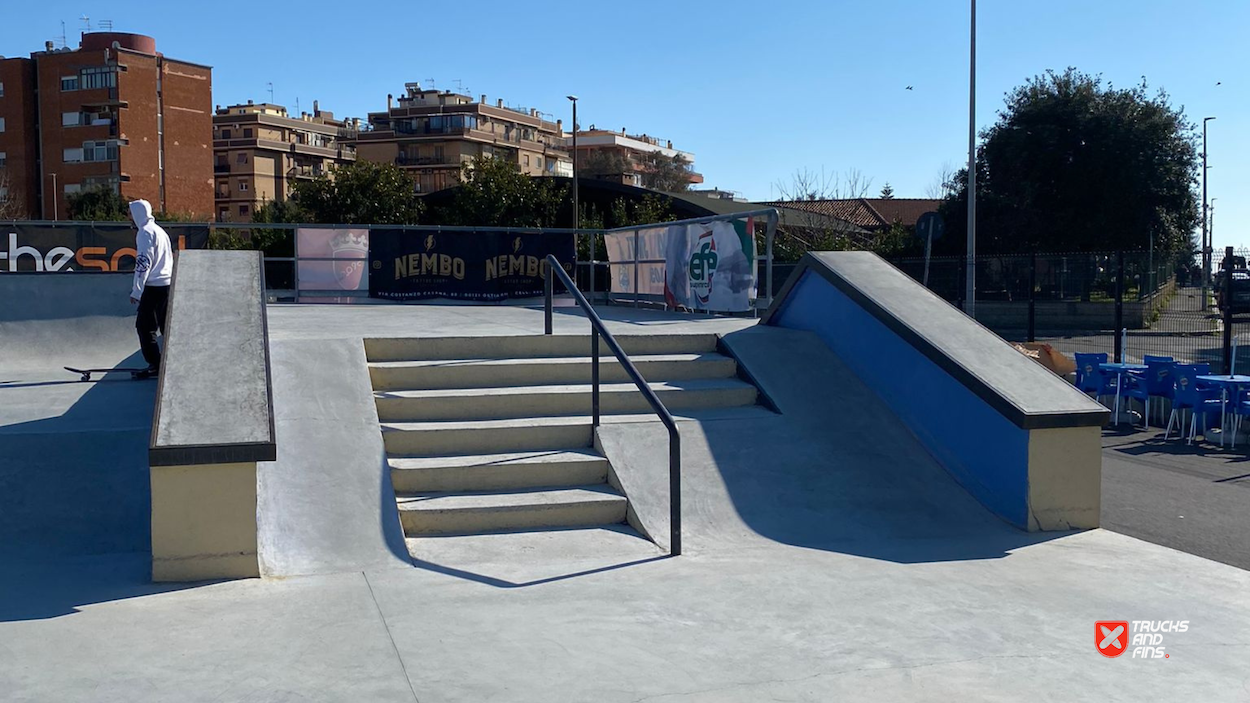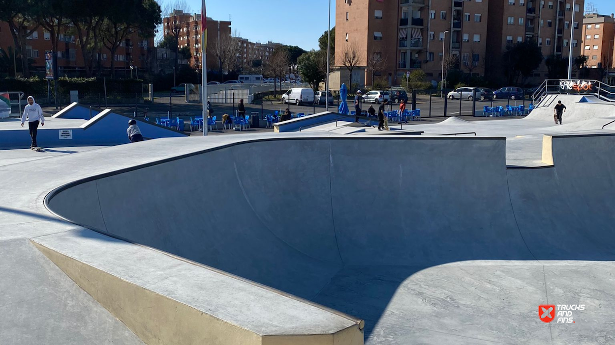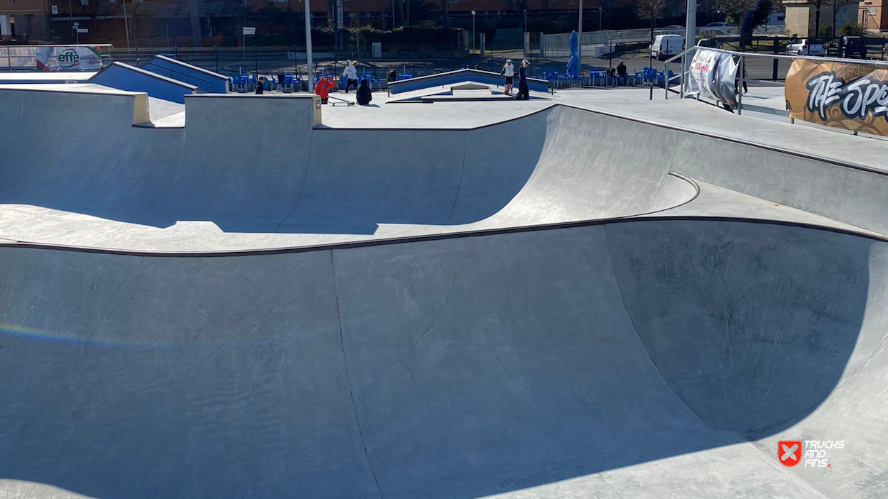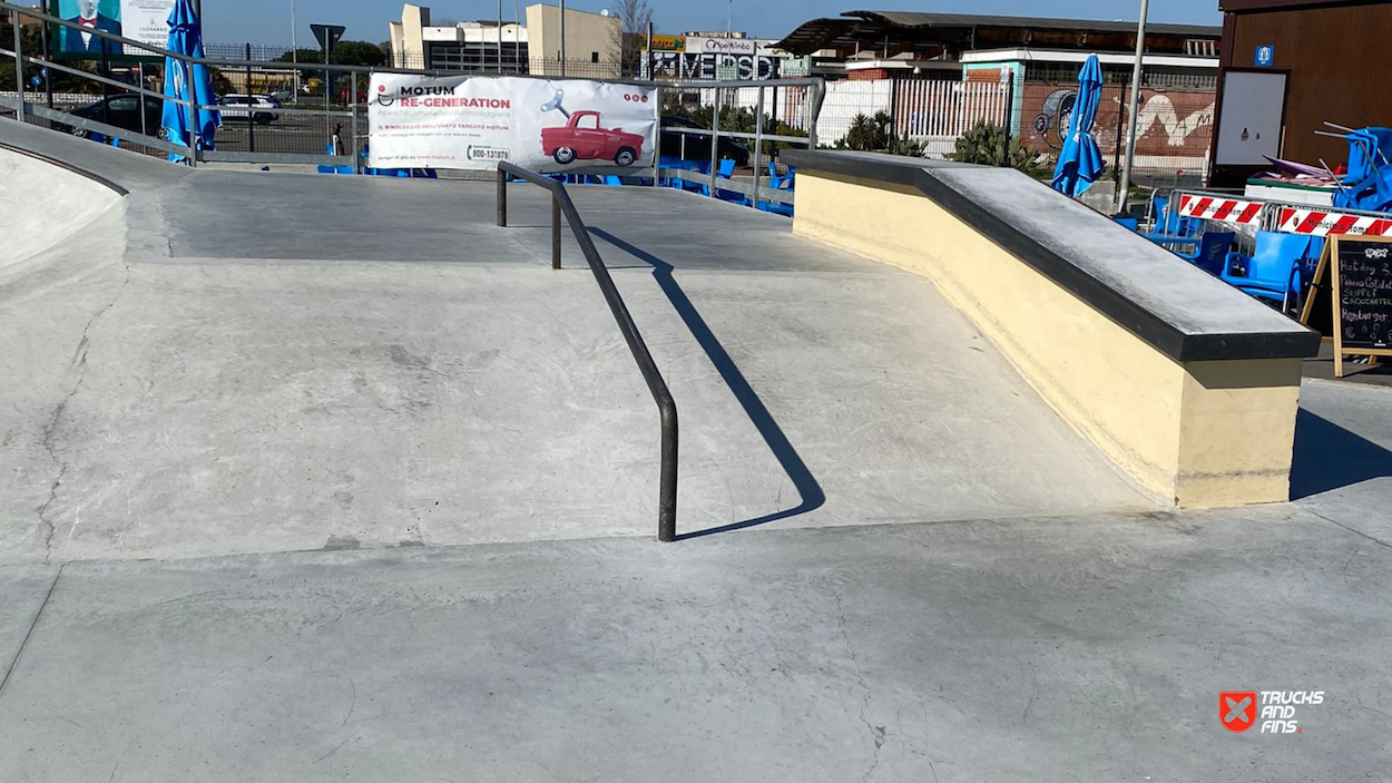 Ostia skatepark is a large concrete park with a spacious transition area side by side with a very complete street section.