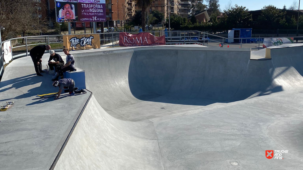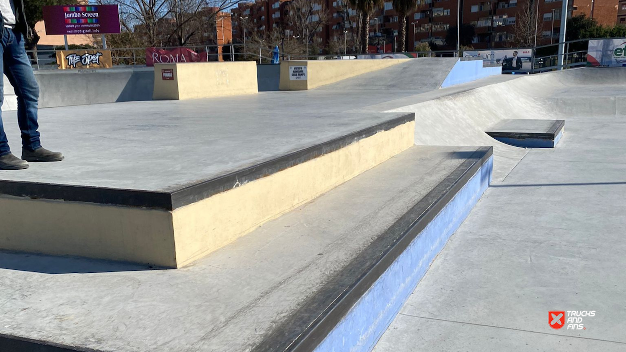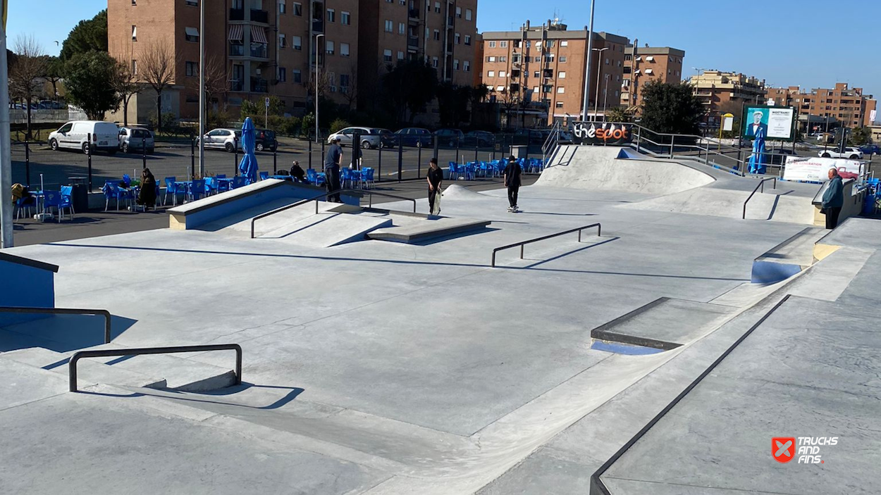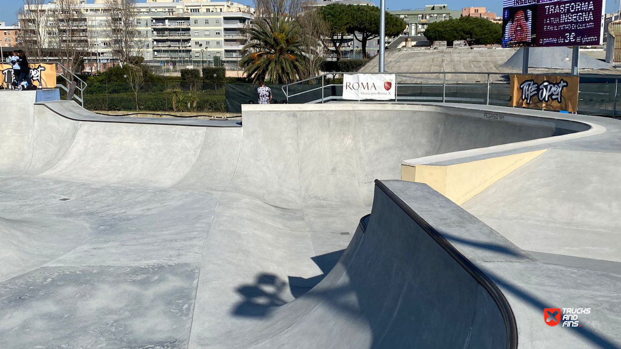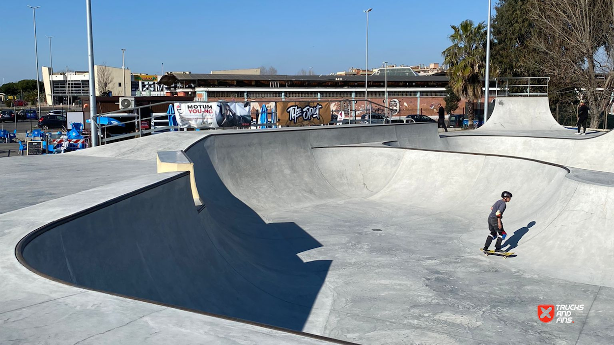 Ostia skatepark is a large concrete park with a spacious transition area side by side with a very complete street section.